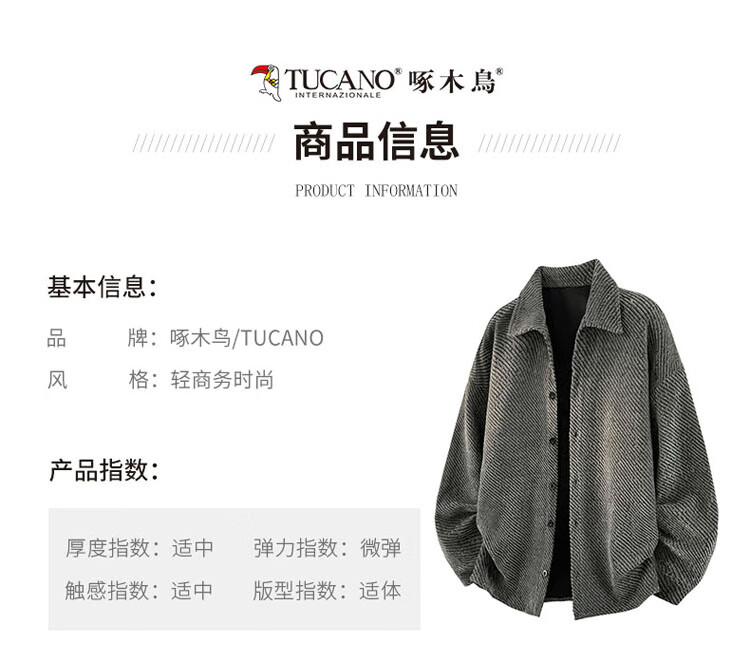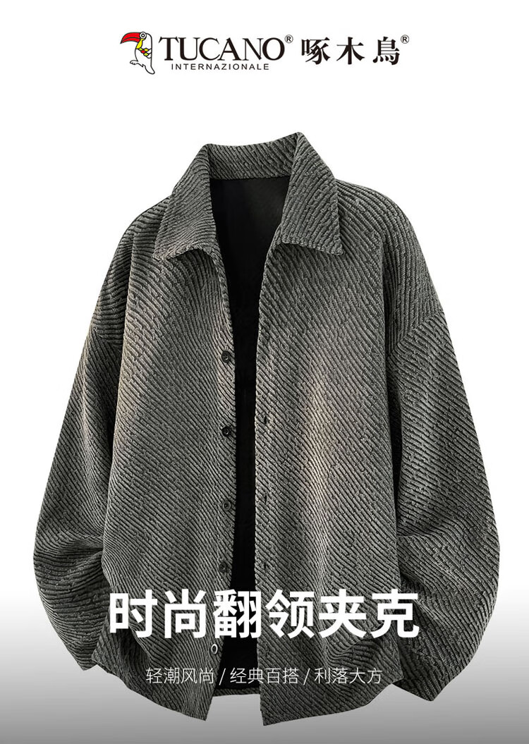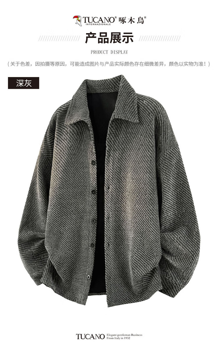 Woodpecker (TUCANO) coat men's autumn and winter jacket loose casual lapel texture small fragrance cardigan men's dark gray XL
