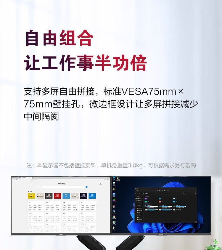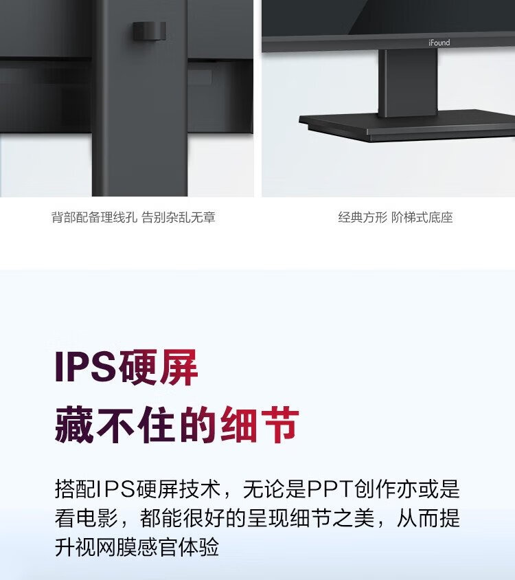 80% new ifound 23.8-inch monitor IPS hard screen 75Hz micro frame low blue light HDMI interface energy-saving certification computer office display screen produced by Founder Technology 24NF9R1P