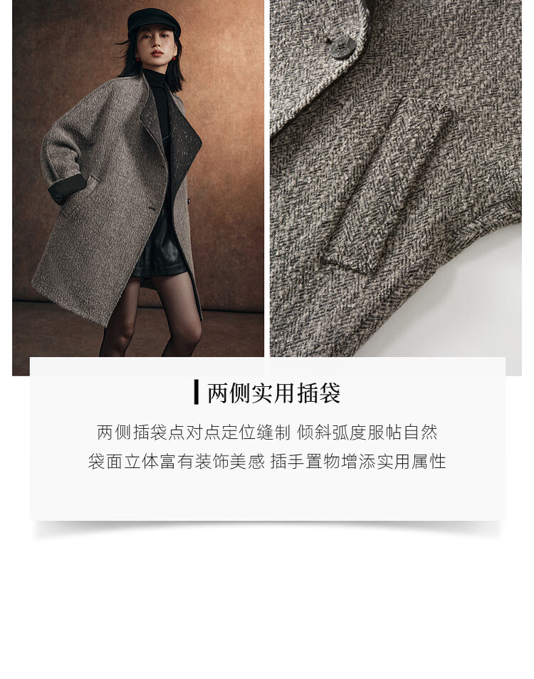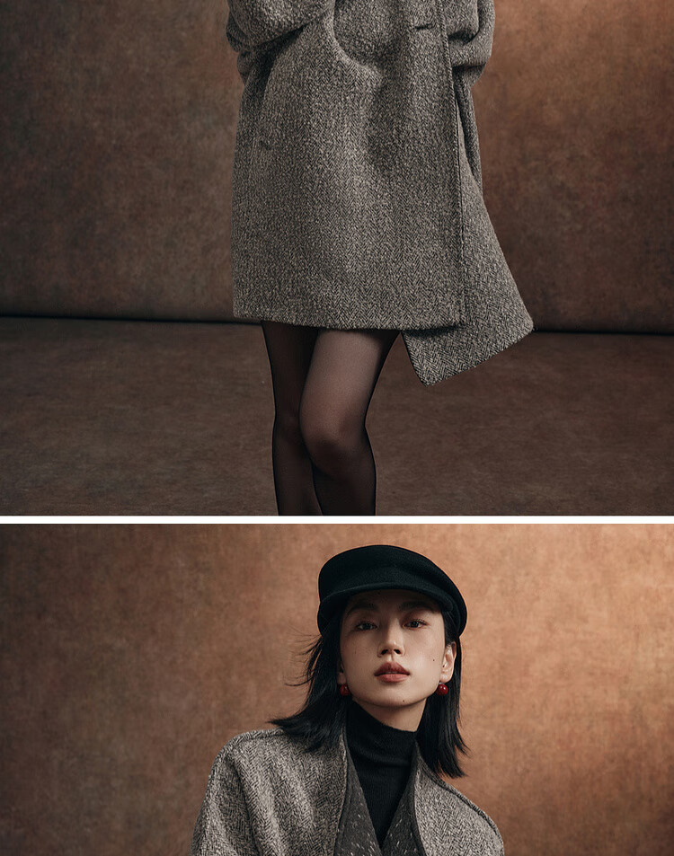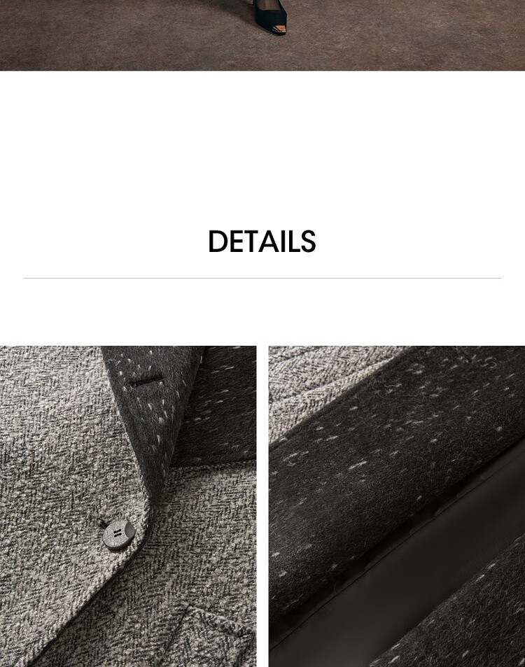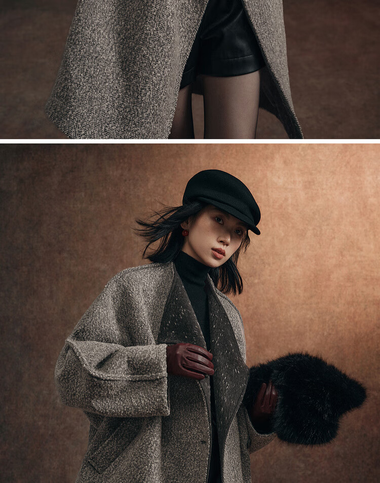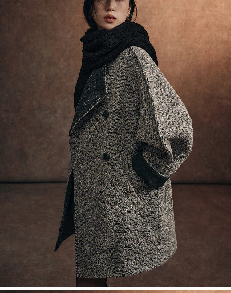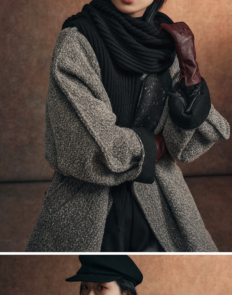 SUSHE retro VTG herringbone wool jumpsuit silhouette mid-length woolen jacket