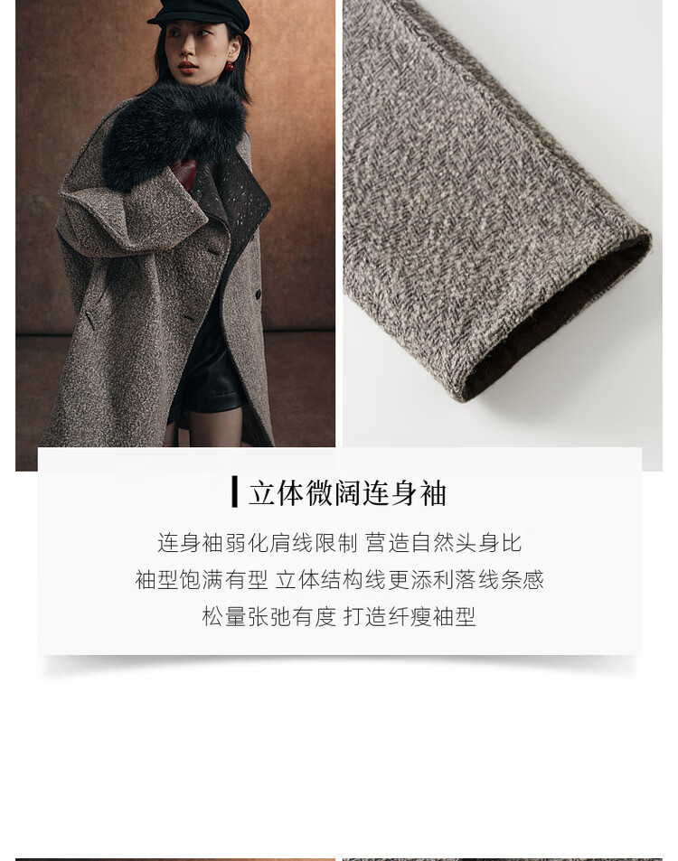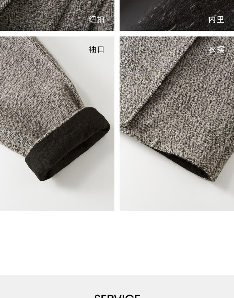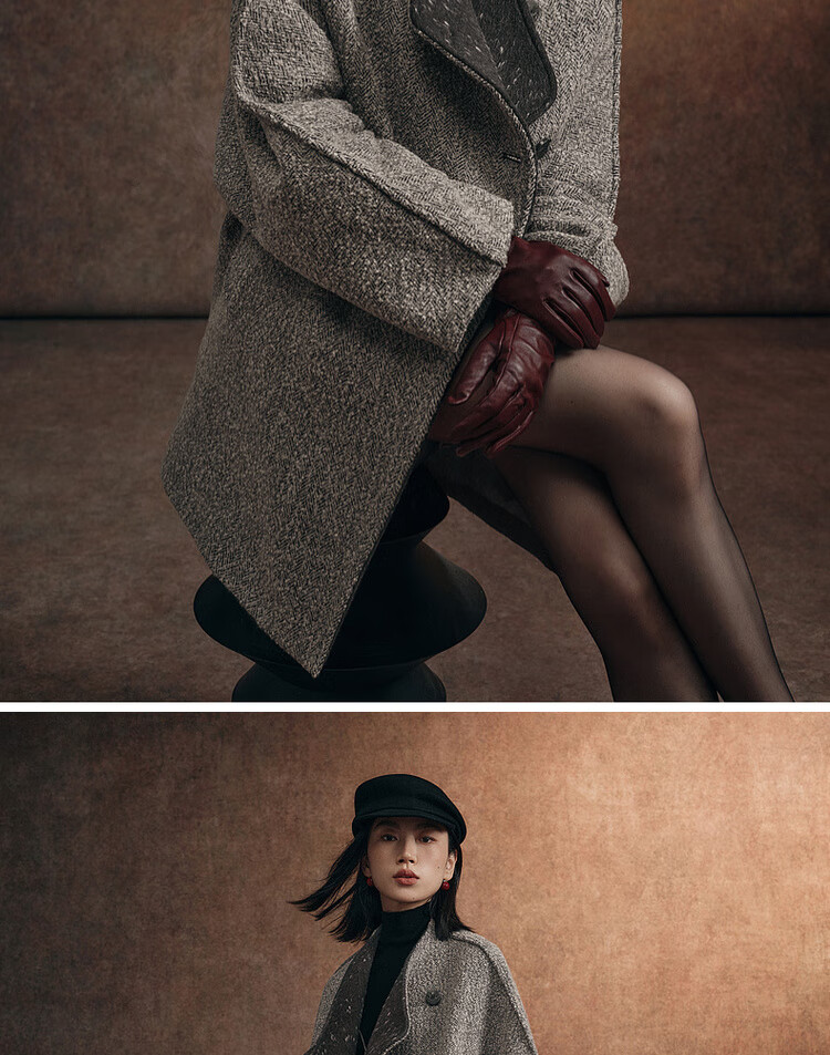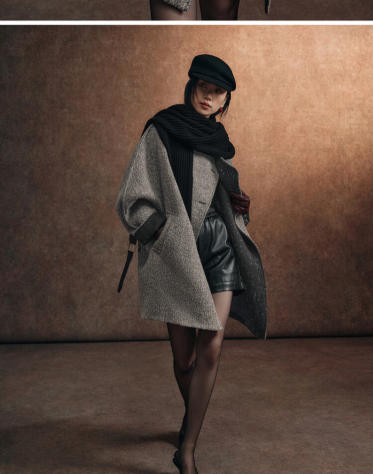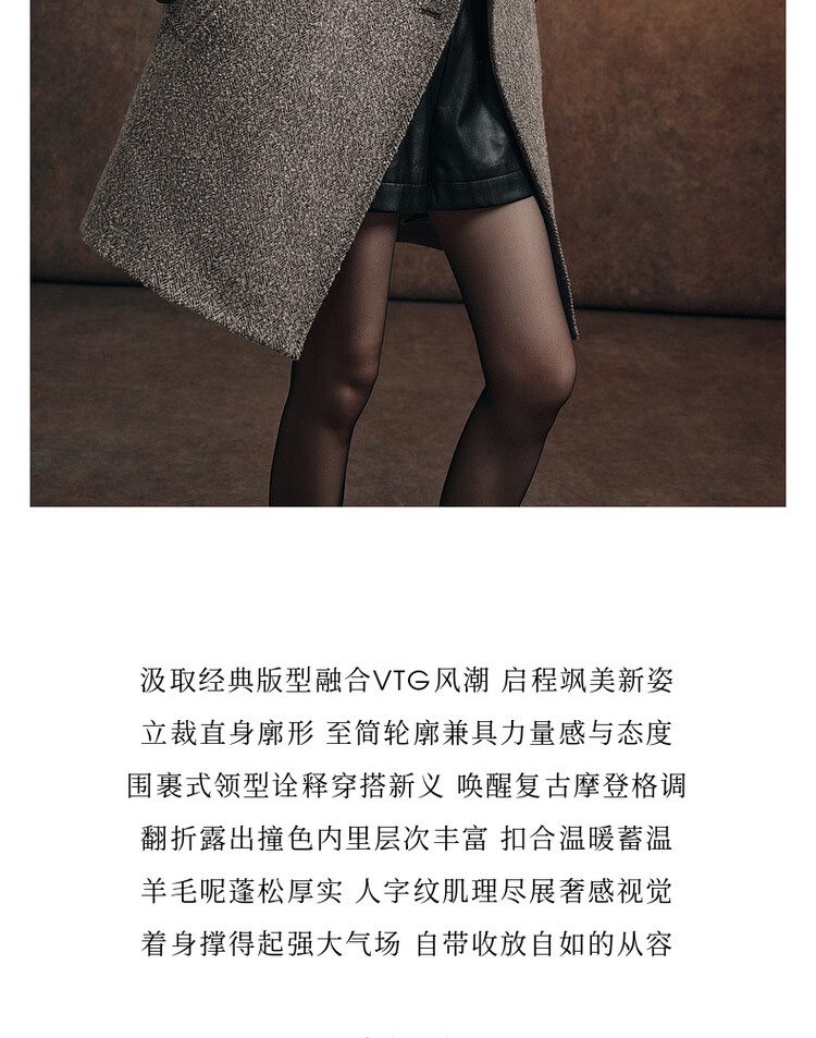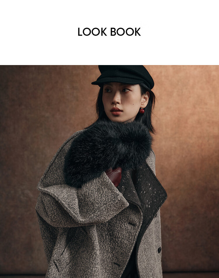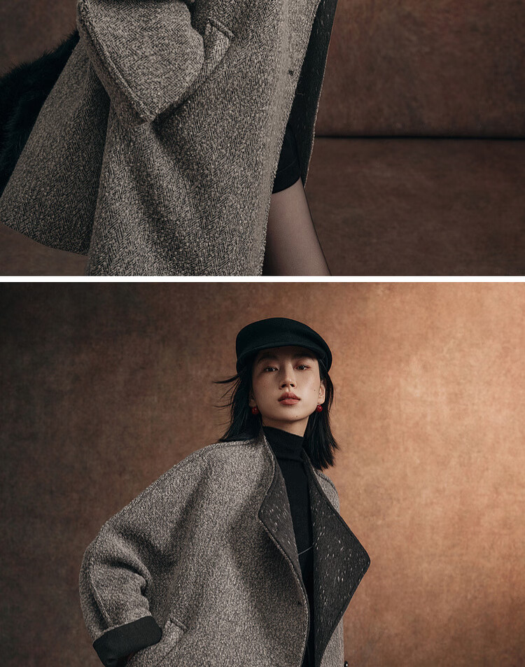 SUSHE retro VTG herringbone wool jumpsuit silhouette mid-length woolen jacket