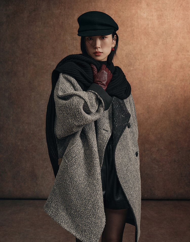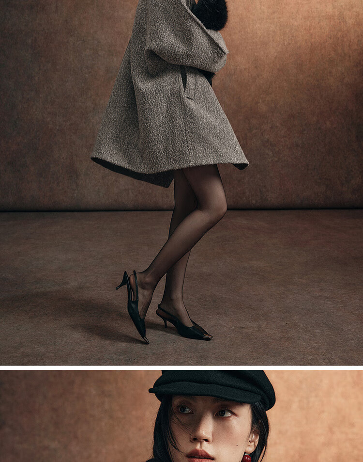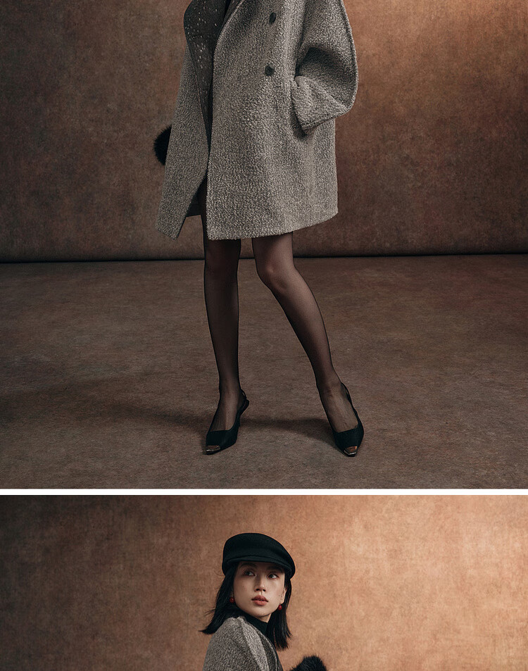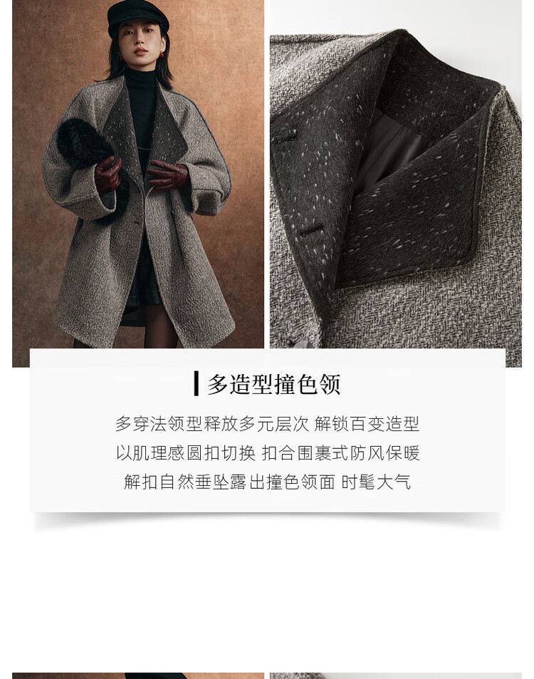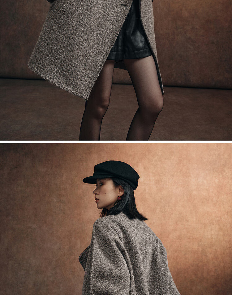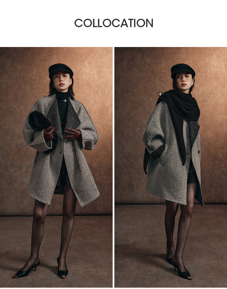 SUSHE retro VTG herringbone wool jumpsuit silhouette mid-length woolen jacket