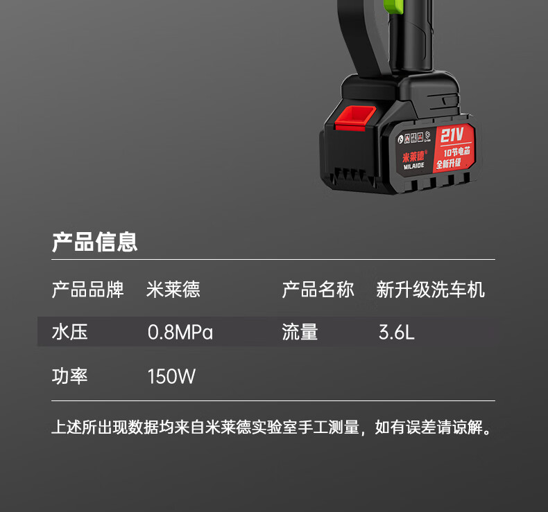 Milad German wireless car wash machine high-pressure household car wash water gun high-power lithium battery cleaning artifact super booster gun