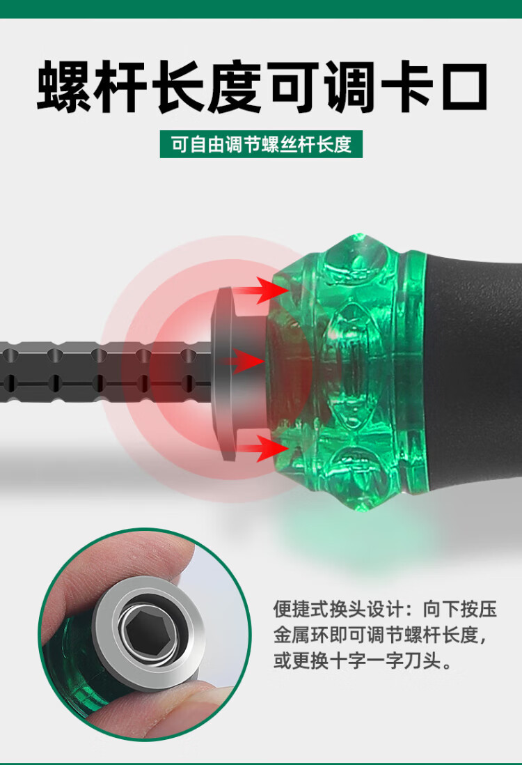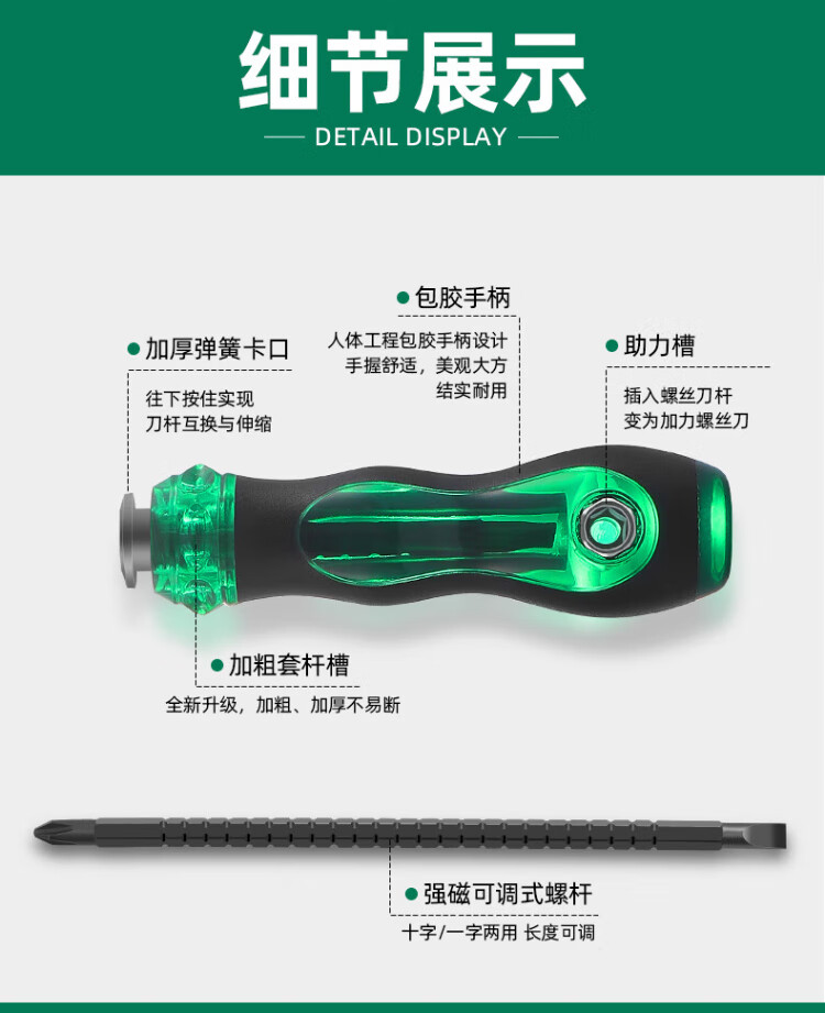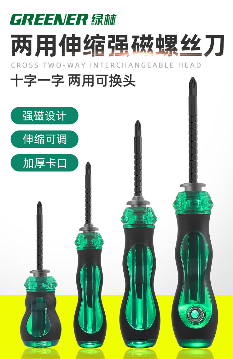 GREENER multifunctional telescopic flat-head Phillips screwdriver, dual-purpose screwdriver set, strong magnetic screwdriver positioning