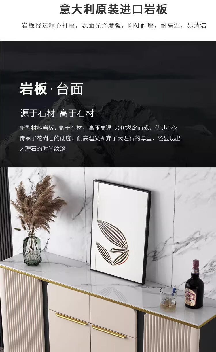 Memory Travel Light luxury slate countertop sideboard wine cabinet multi-functional living room storage tea home kitchen wall cupboard