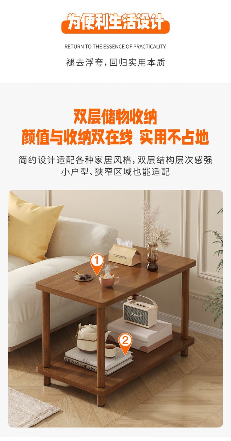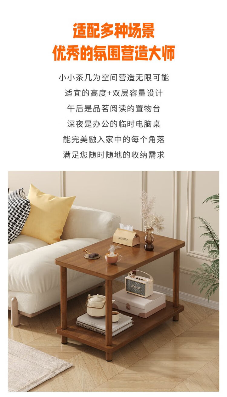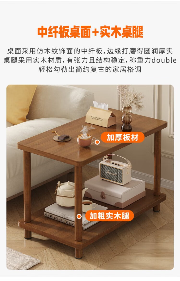 Shanshan Wood Art Sofa Side Table Simple Side Cabinet Coffee Table Small Table Simple Modern Living Room Home Side Table Balcony Small Square Table