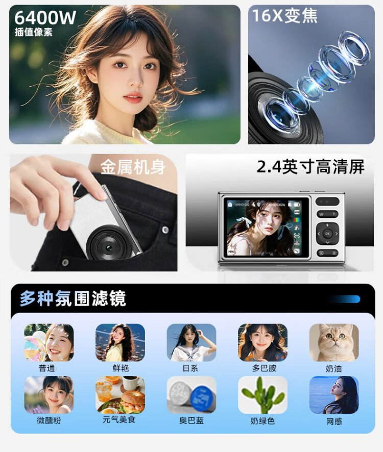 Aigo patriot D1 student digital camera birthday gift for girls entry-level high-definition travel campus small card machine retro CCD replacement front and rear dual camera black 32G
