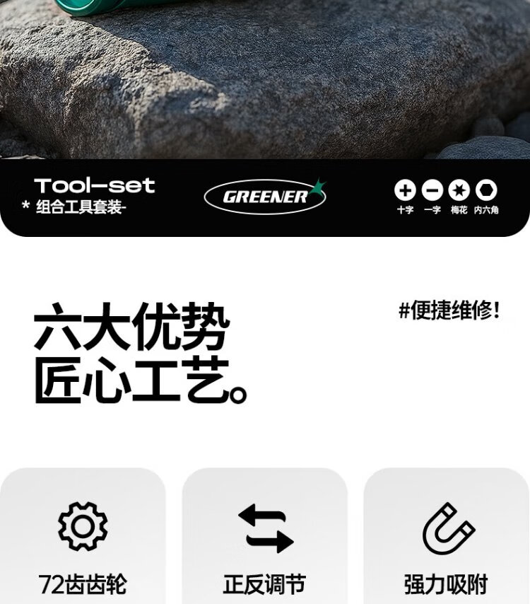 GREENER ratchet screwdriver cross-shaped forward and reverse turning corner small screwdriver riding multi-functional ratchet wrench set