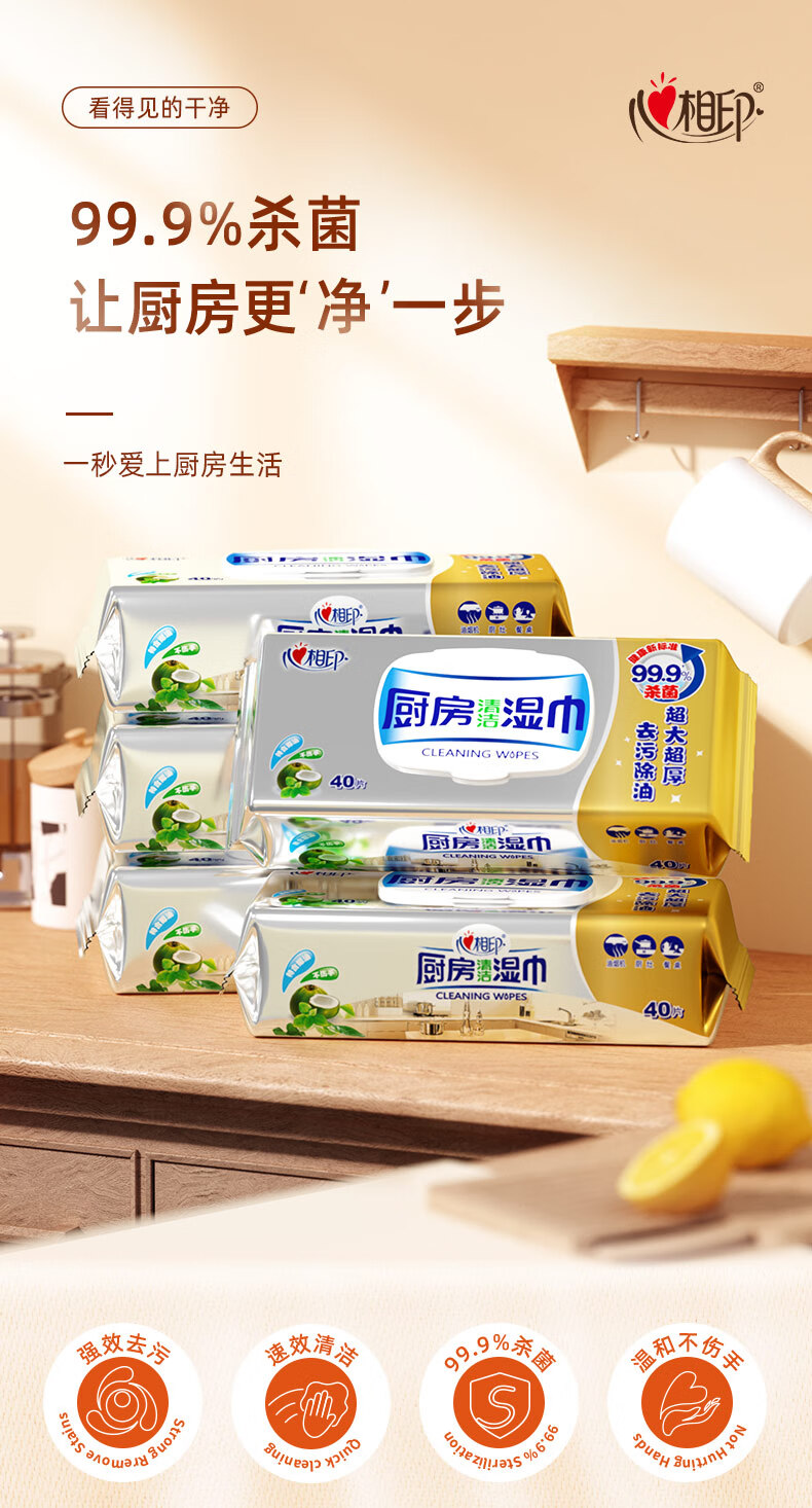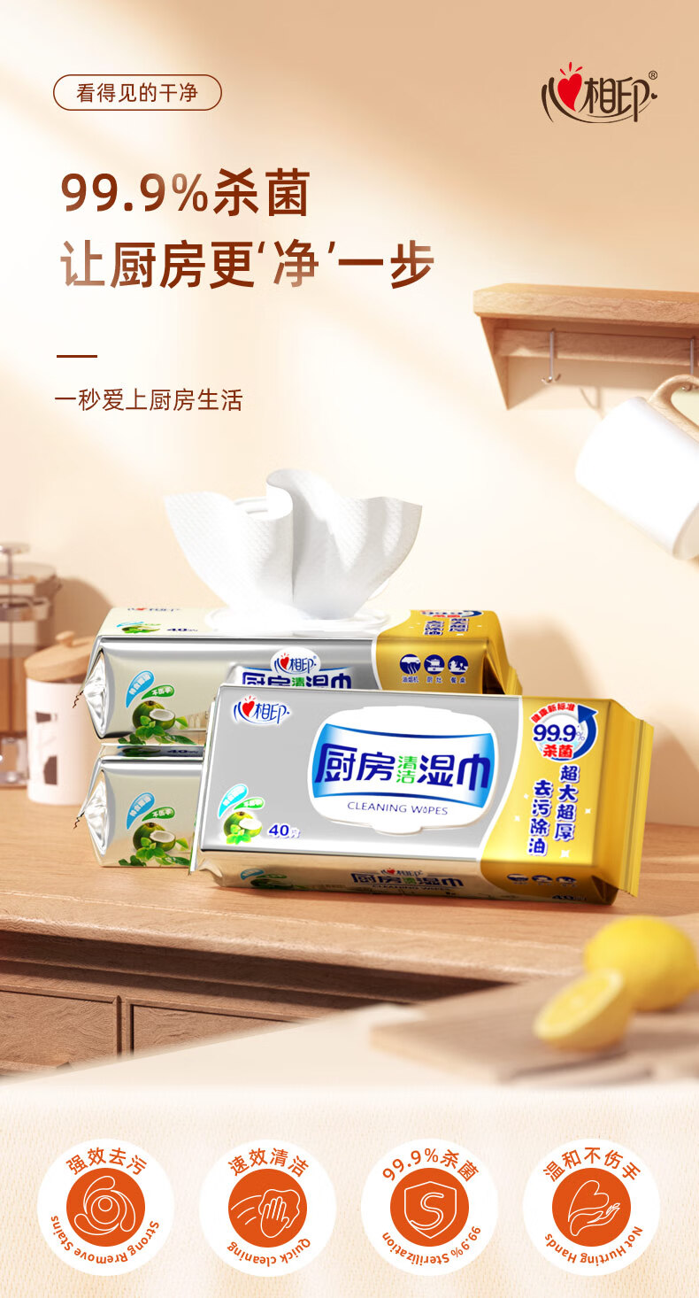 Xinxiangyin kitchen wipes special cleaning, oil removal and decontamination range hood Xinxiangyin powerful degreasing household wet wipes 1 layer 40 pieces * 3 pack
