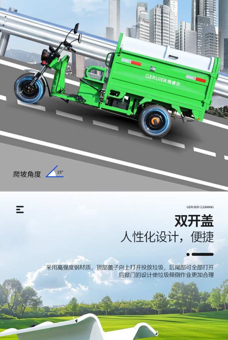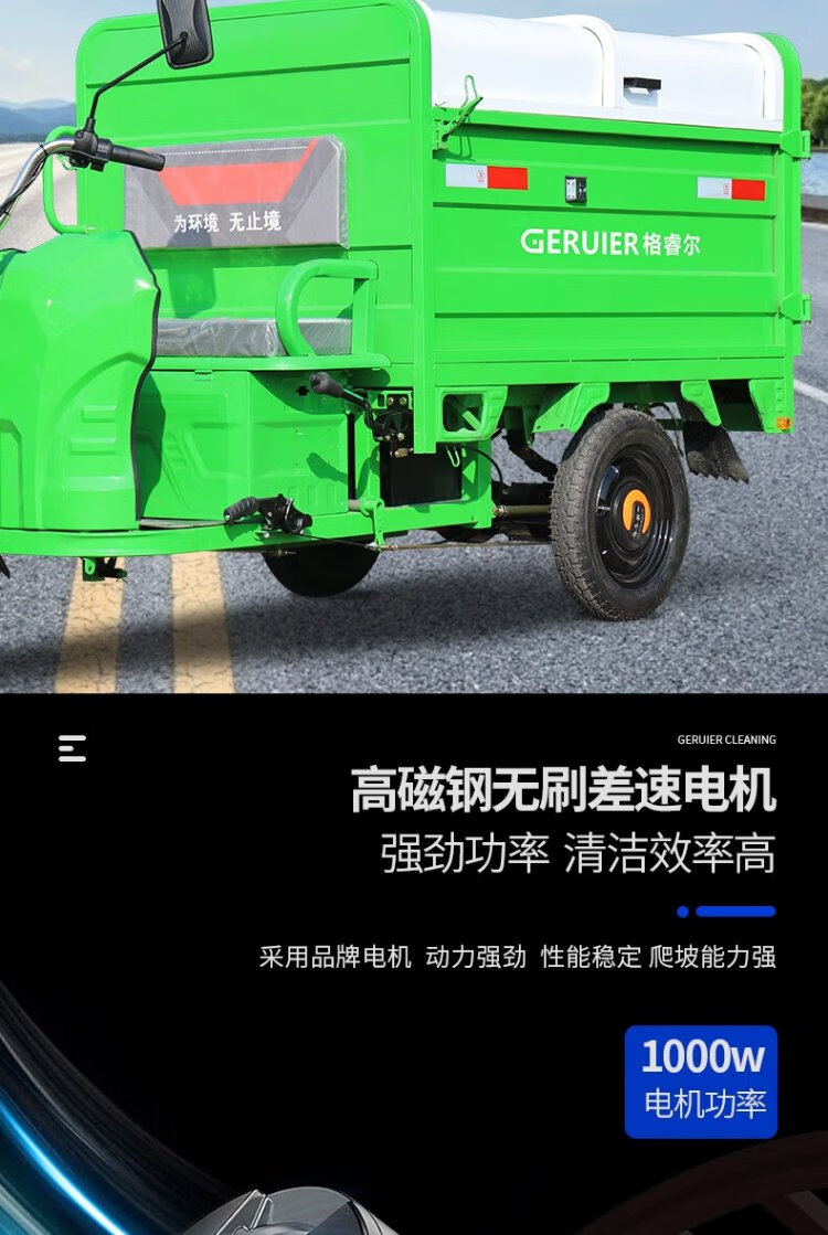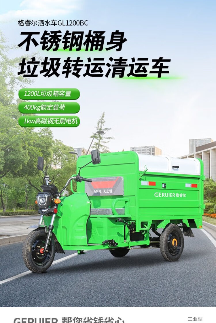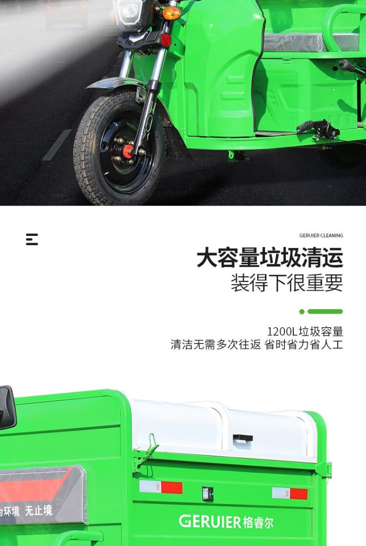 GERUIER electric garbage truck collection truck sanitation truck cleaning tricycle property road worker cleaning transfer 1200L sanitation truck GL1200BC