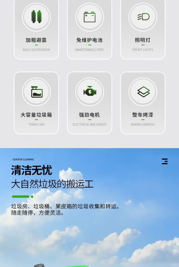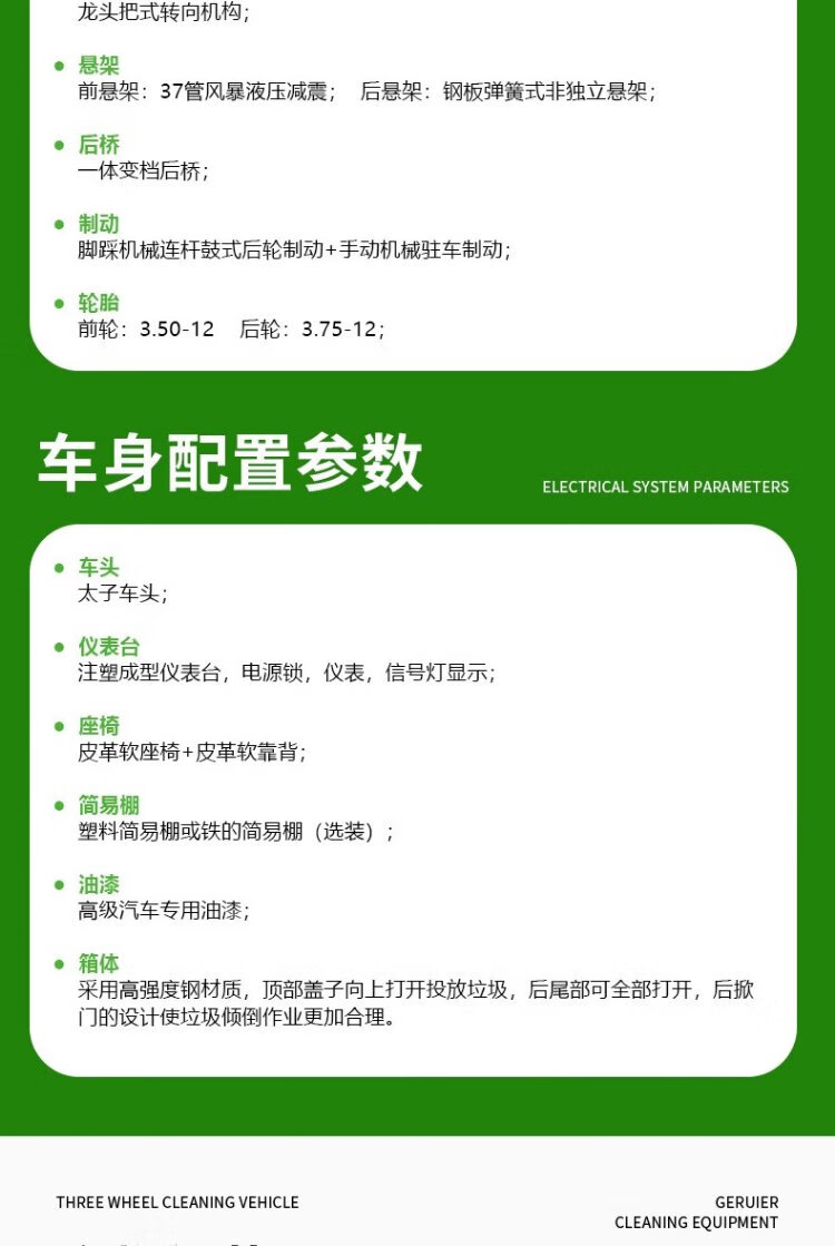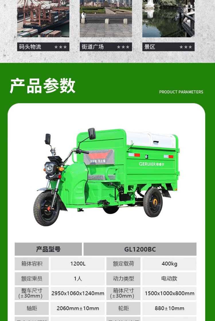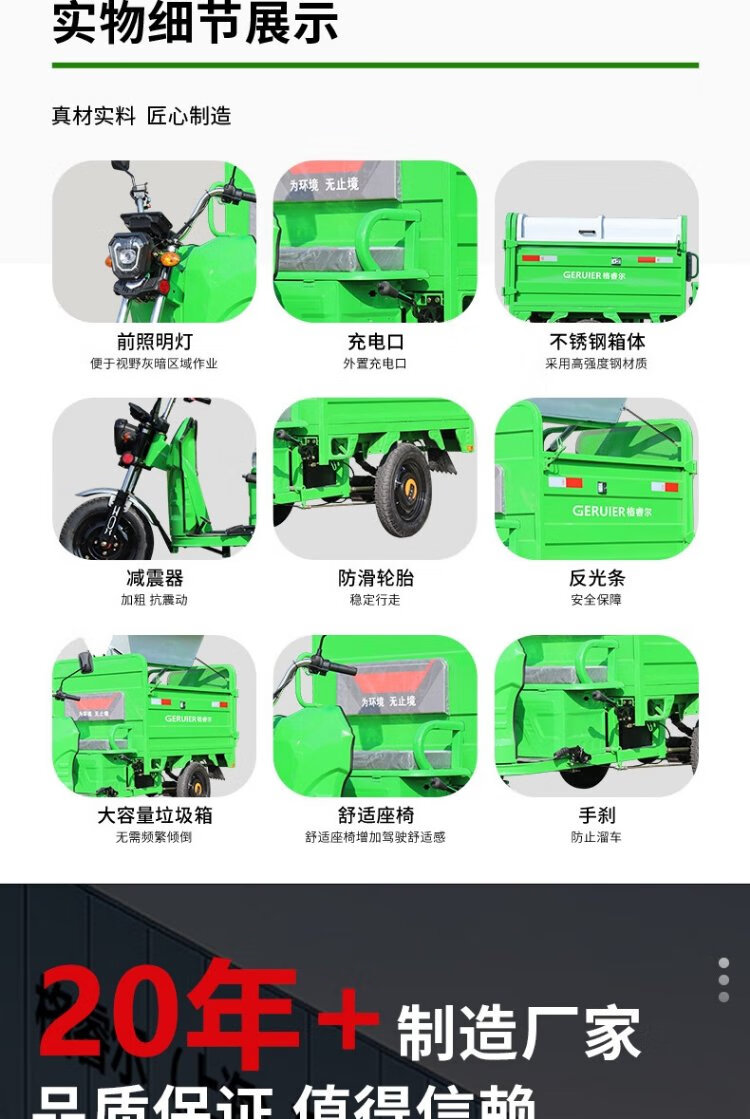 GERUIER electric garbage truck collection truck sanitation truck cleaning tricycle property road worker cleaning transfer 1200L sanitation truck GL1200BC