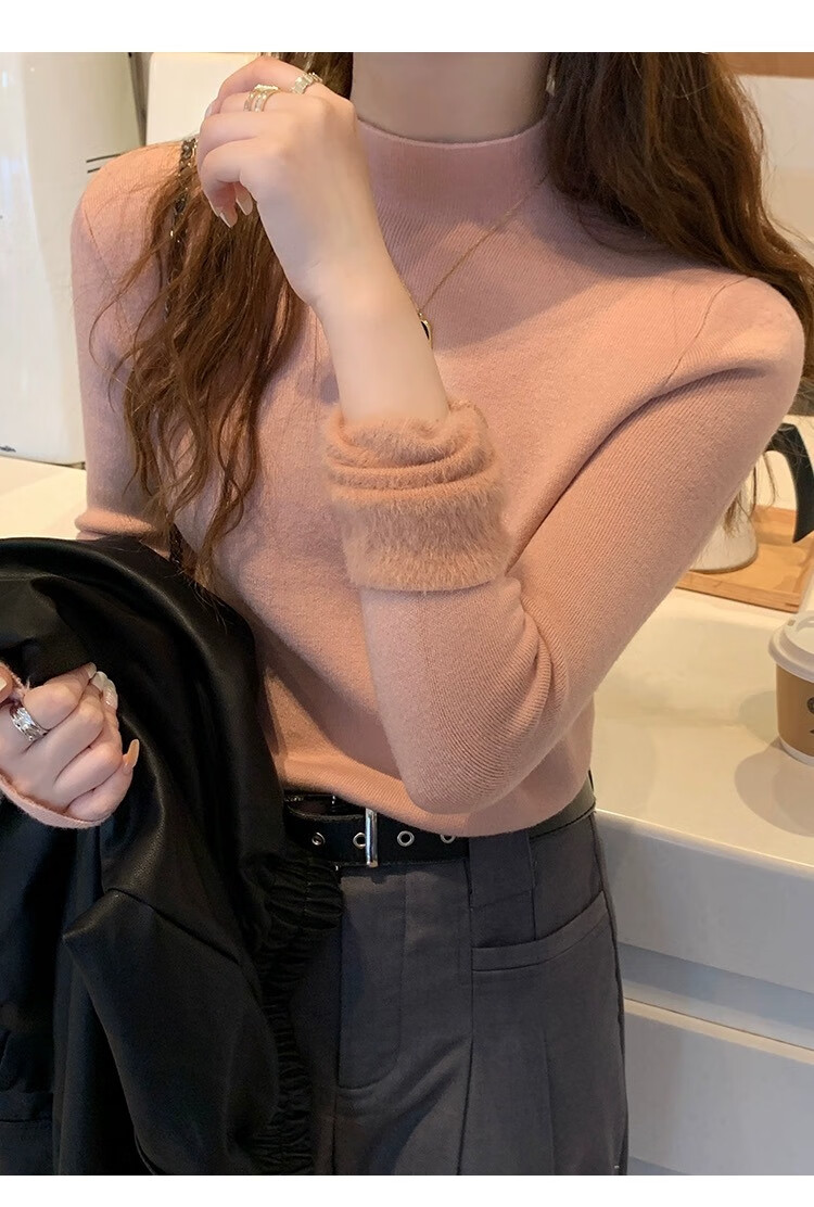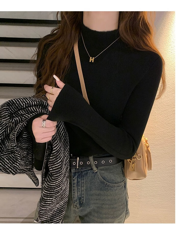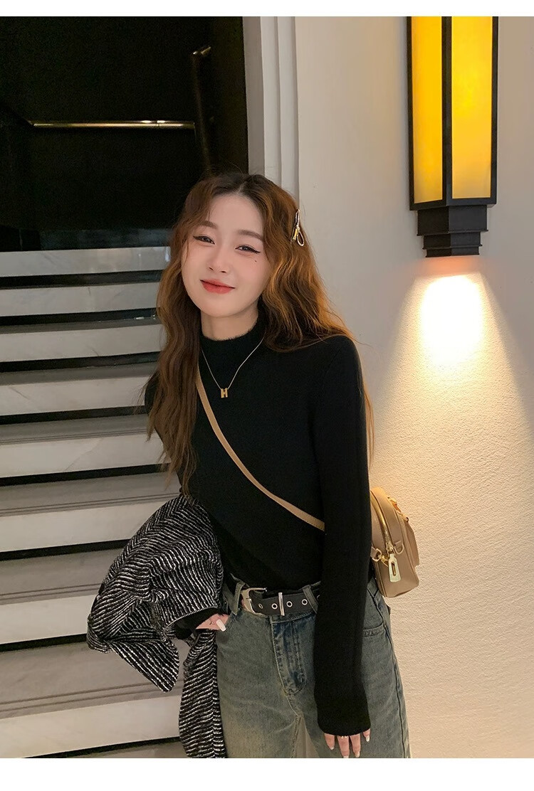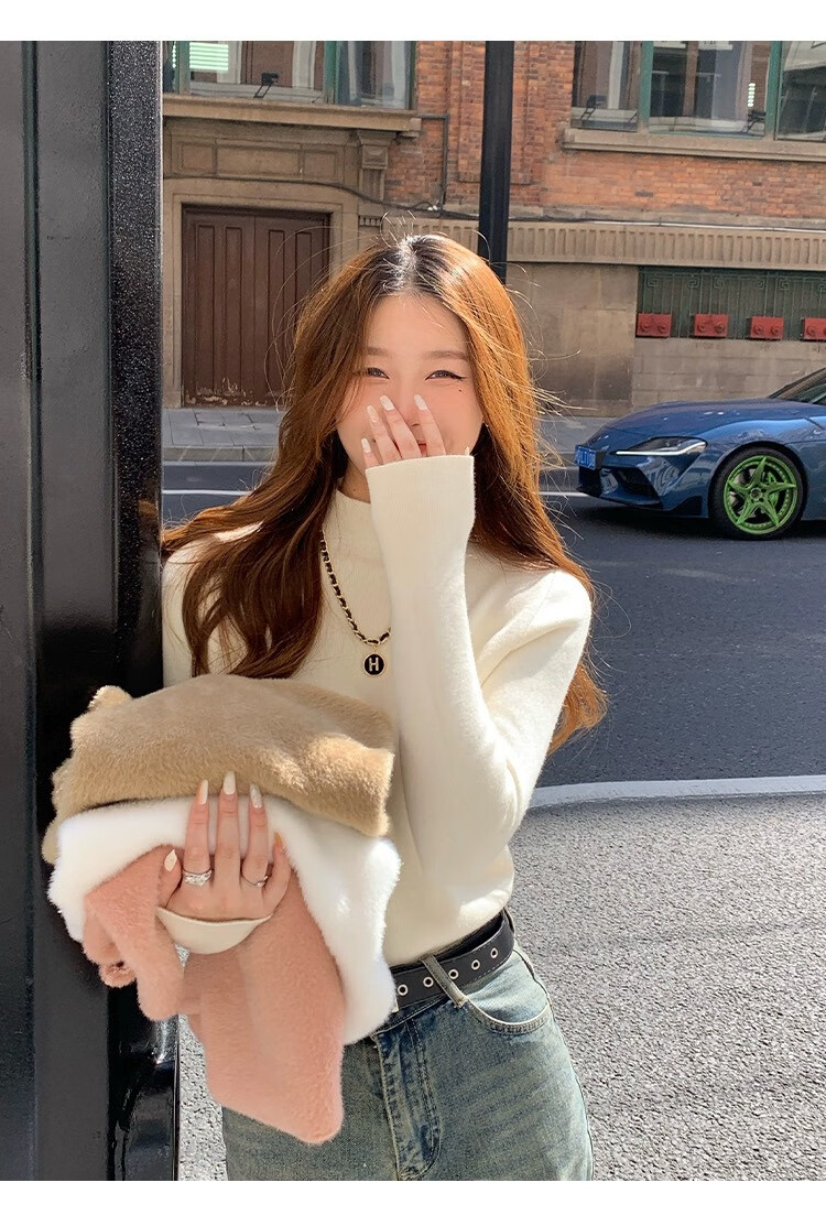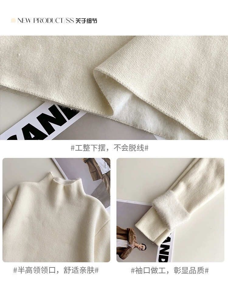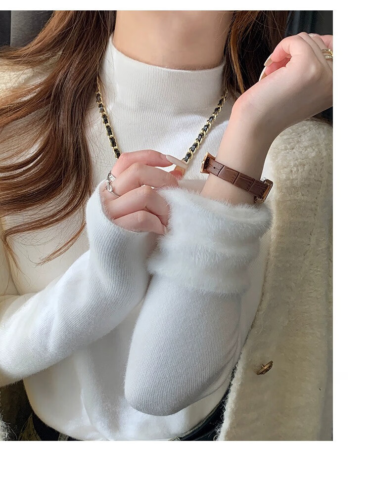 Yu Zhaolin (YUZHAOLIN) velvet bottoming shirt half turtleneck sweater for women autumn and winter new thickened warm inner white sweater top