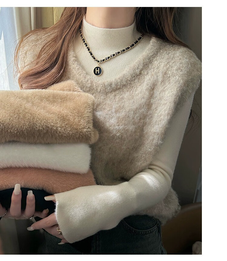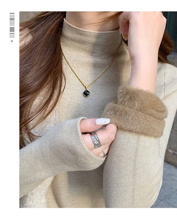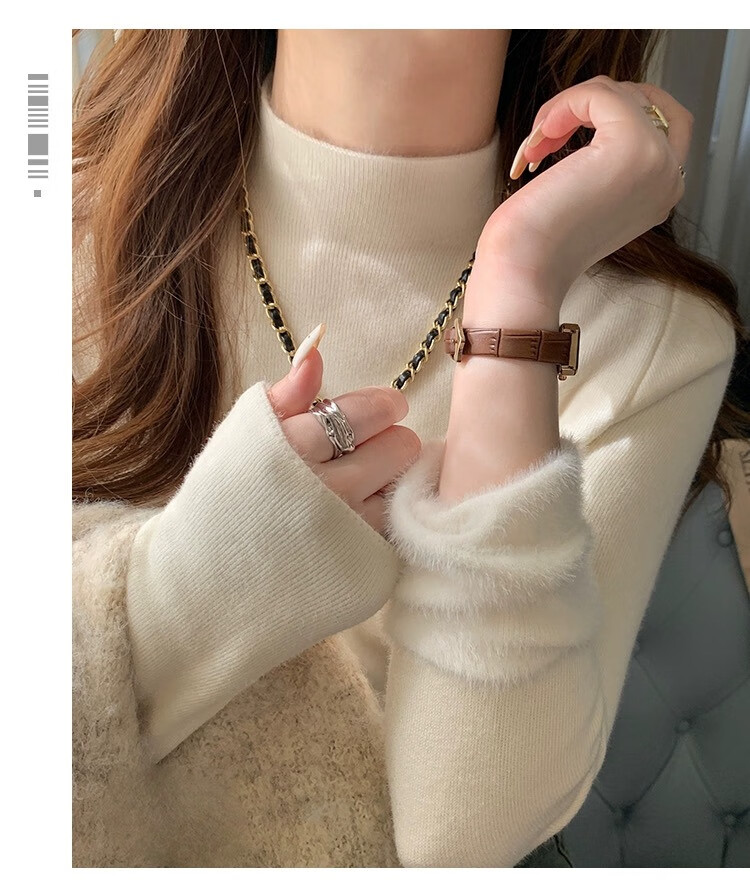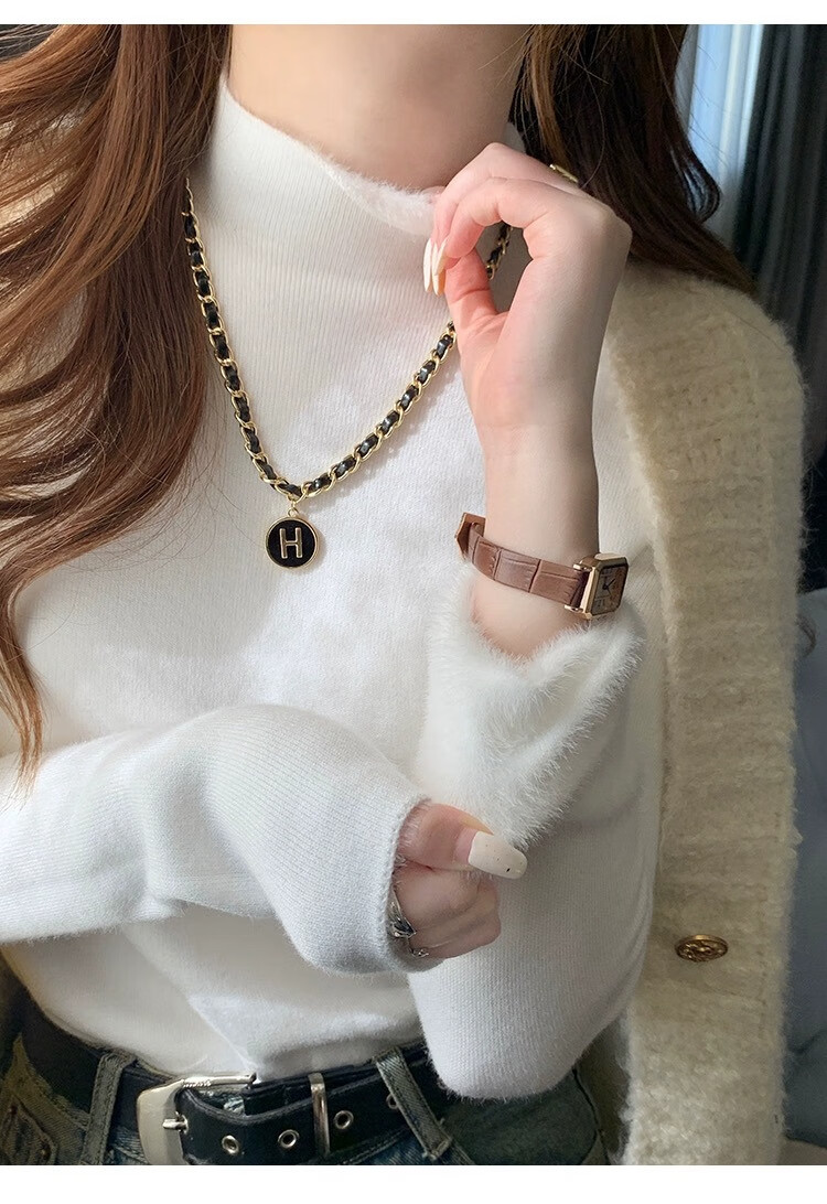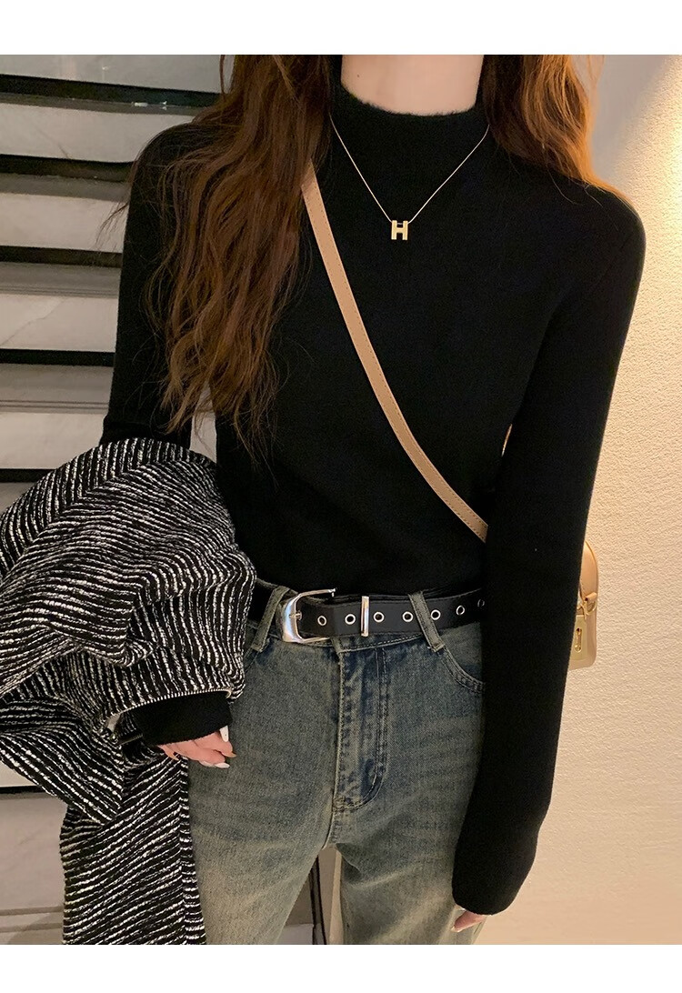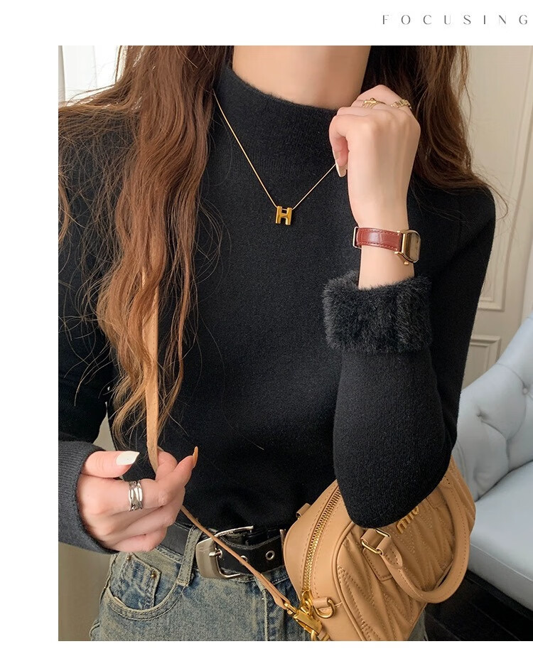 Yu Zhaolin (YUZHAOLIN) velvet bottoming shirt half turtleneck sweater for women autumn and winter new thickened warm inner white sweater top