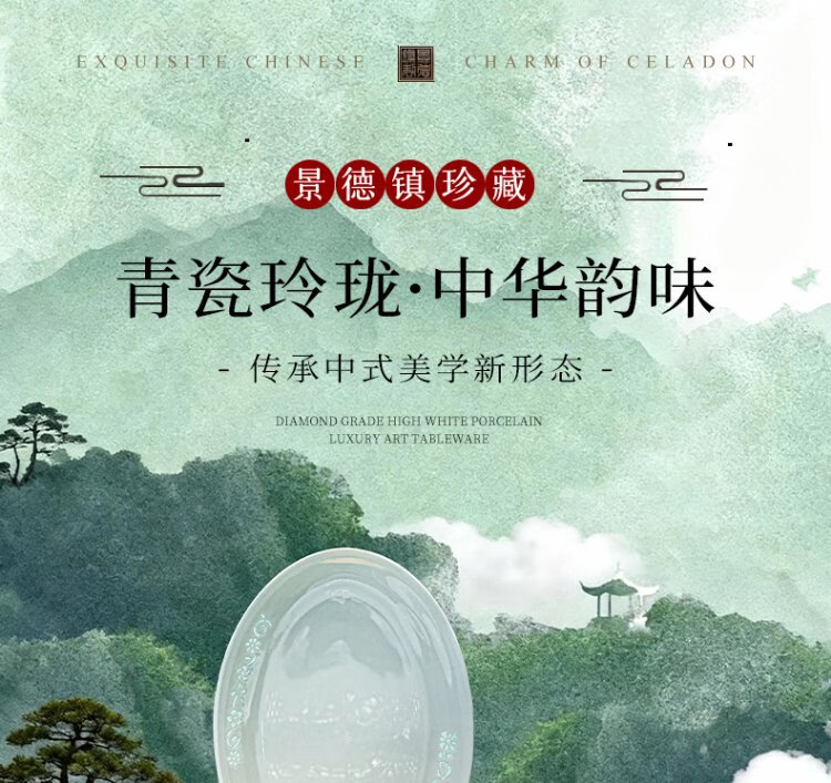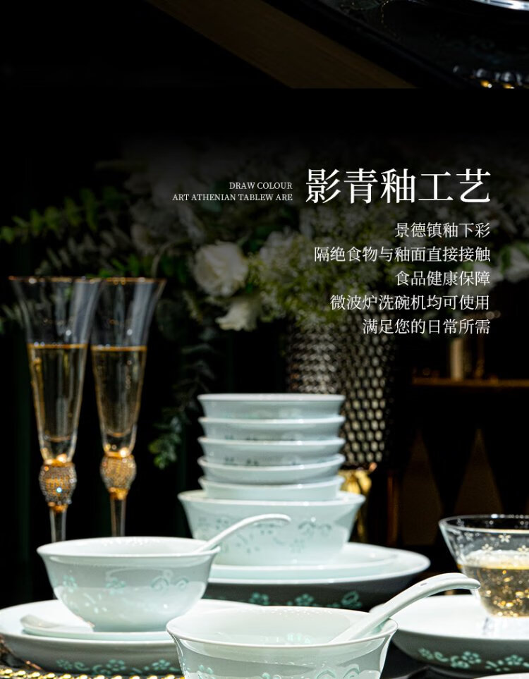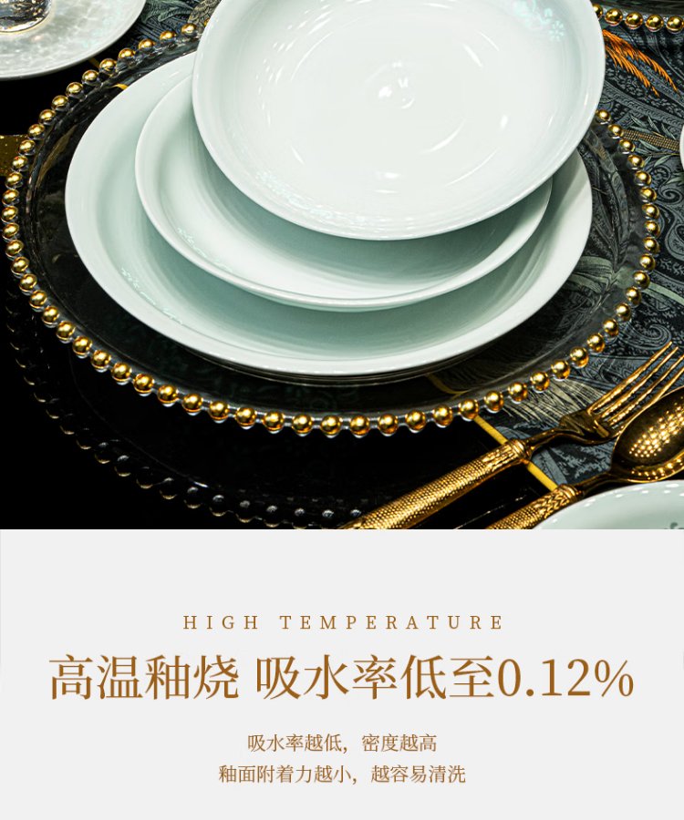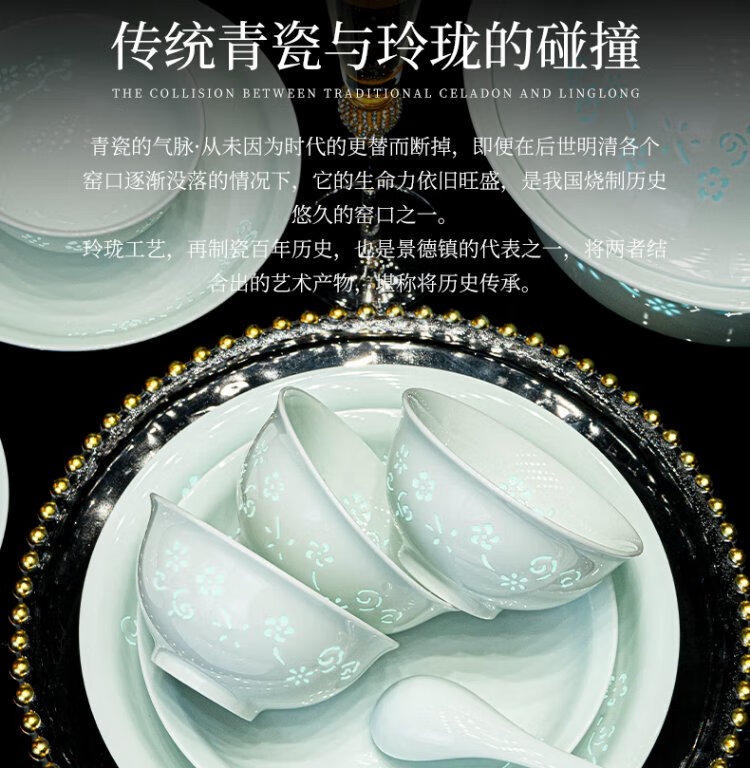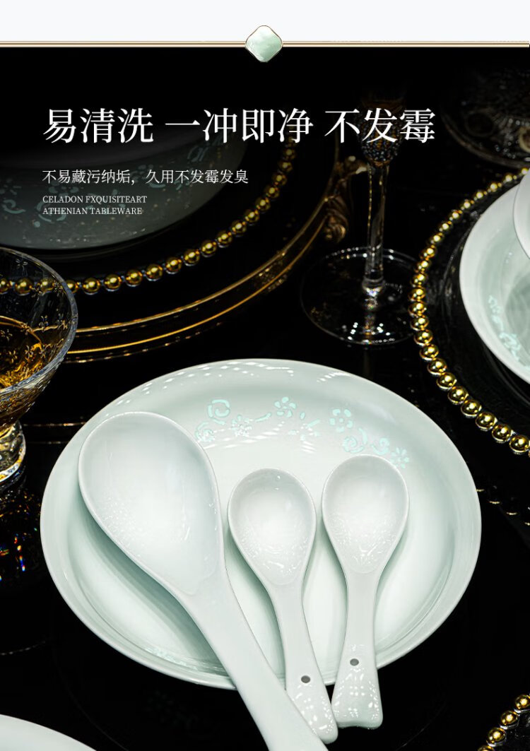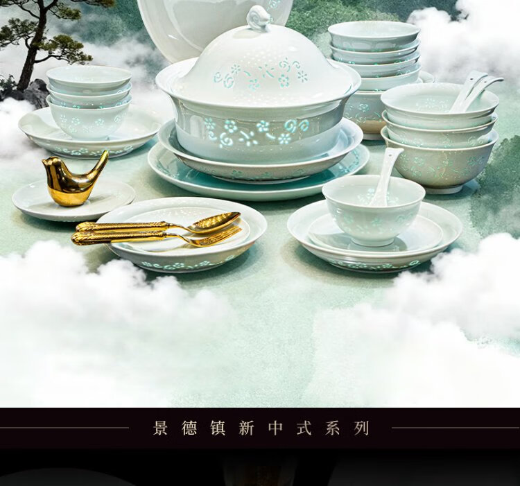 Lowe underglaze color high-end celadon exquisite tableware set Jingdezhen high white clay ceramic Chinese bowl and plate set for home use