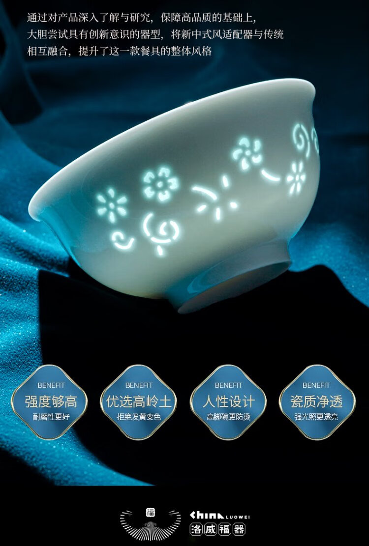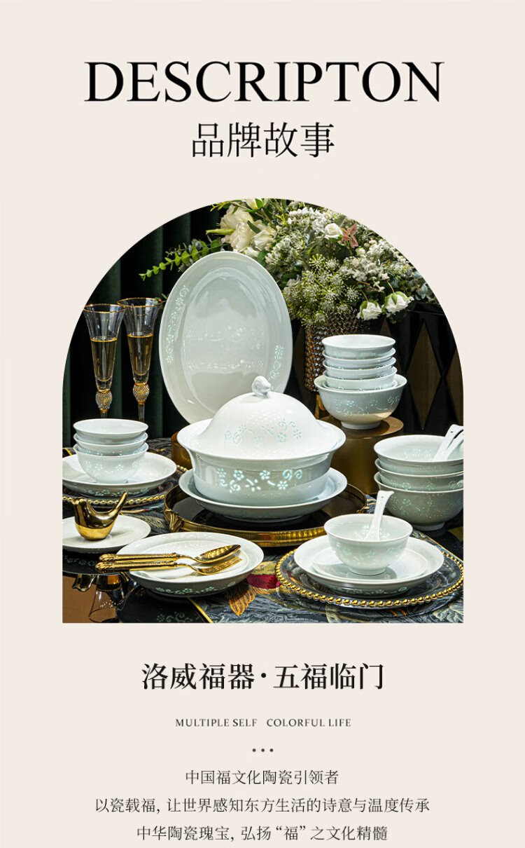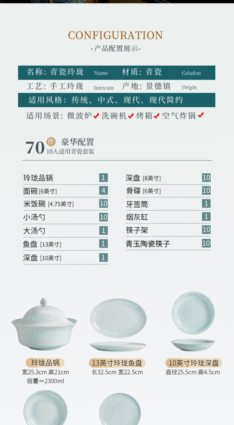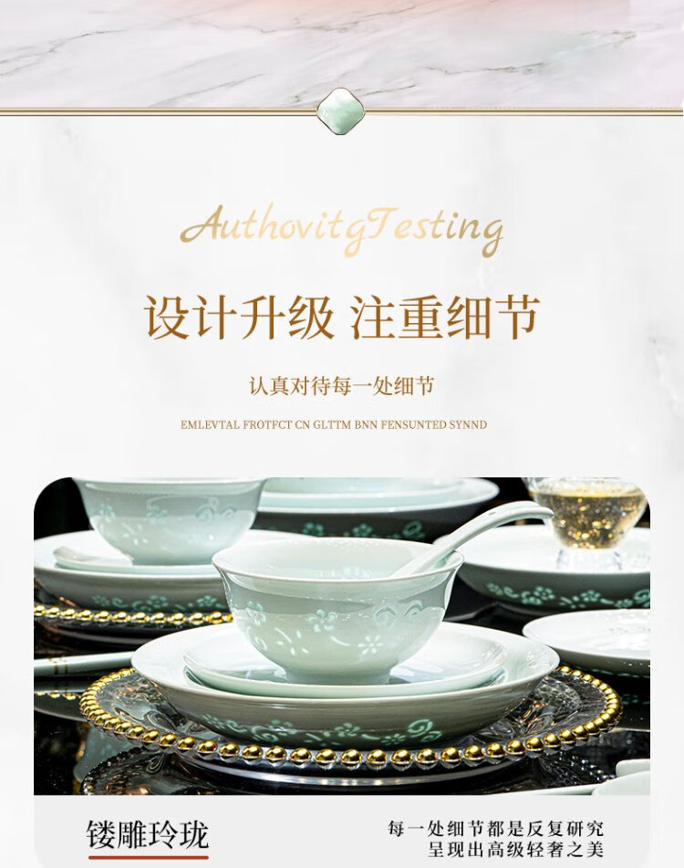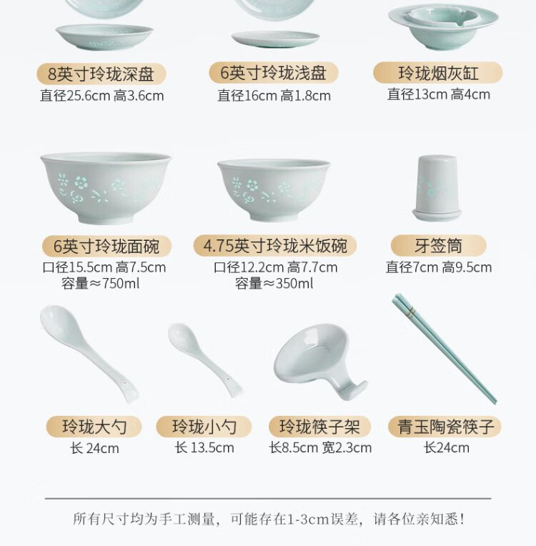 Lowe underglaze color high-end celadon exquisite tableware set Jingdezhen high white clay ceramic Chinese bowl and plate set for home use