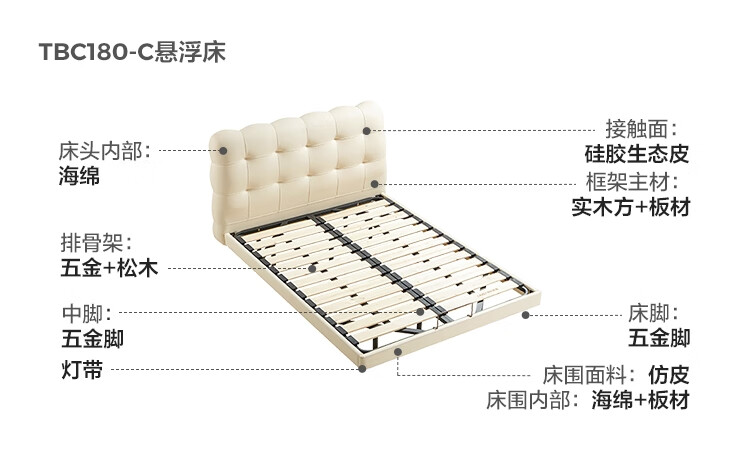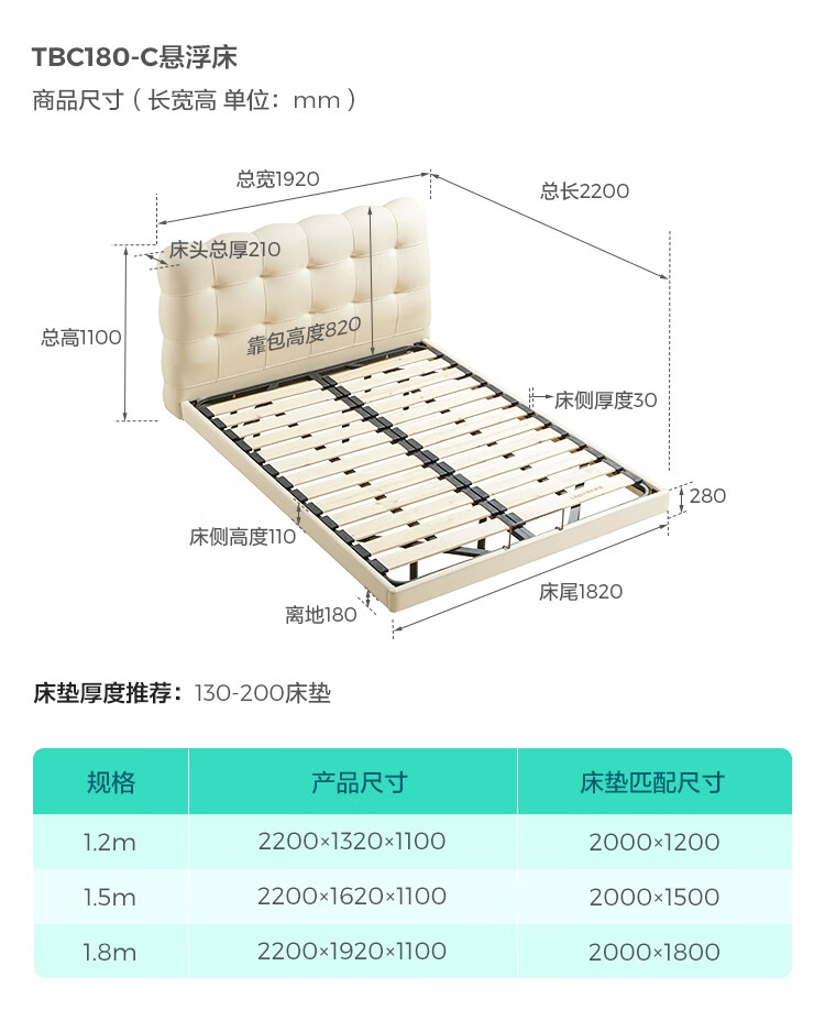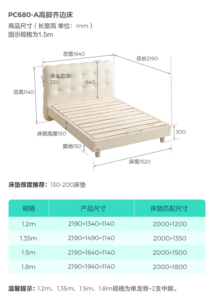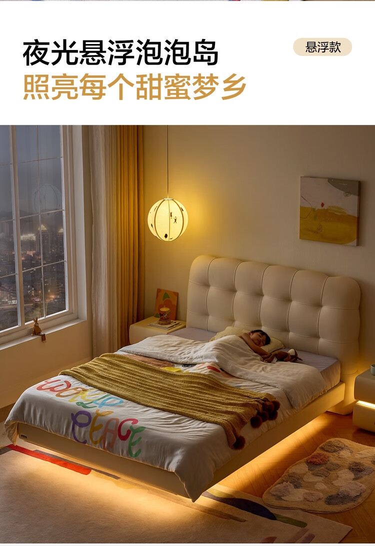 Lin's Home Cream Style Princess Bed Suspended Bed Girls Furniture 1.5*2.0 Meter Single Bed Bedroom Boy PC680