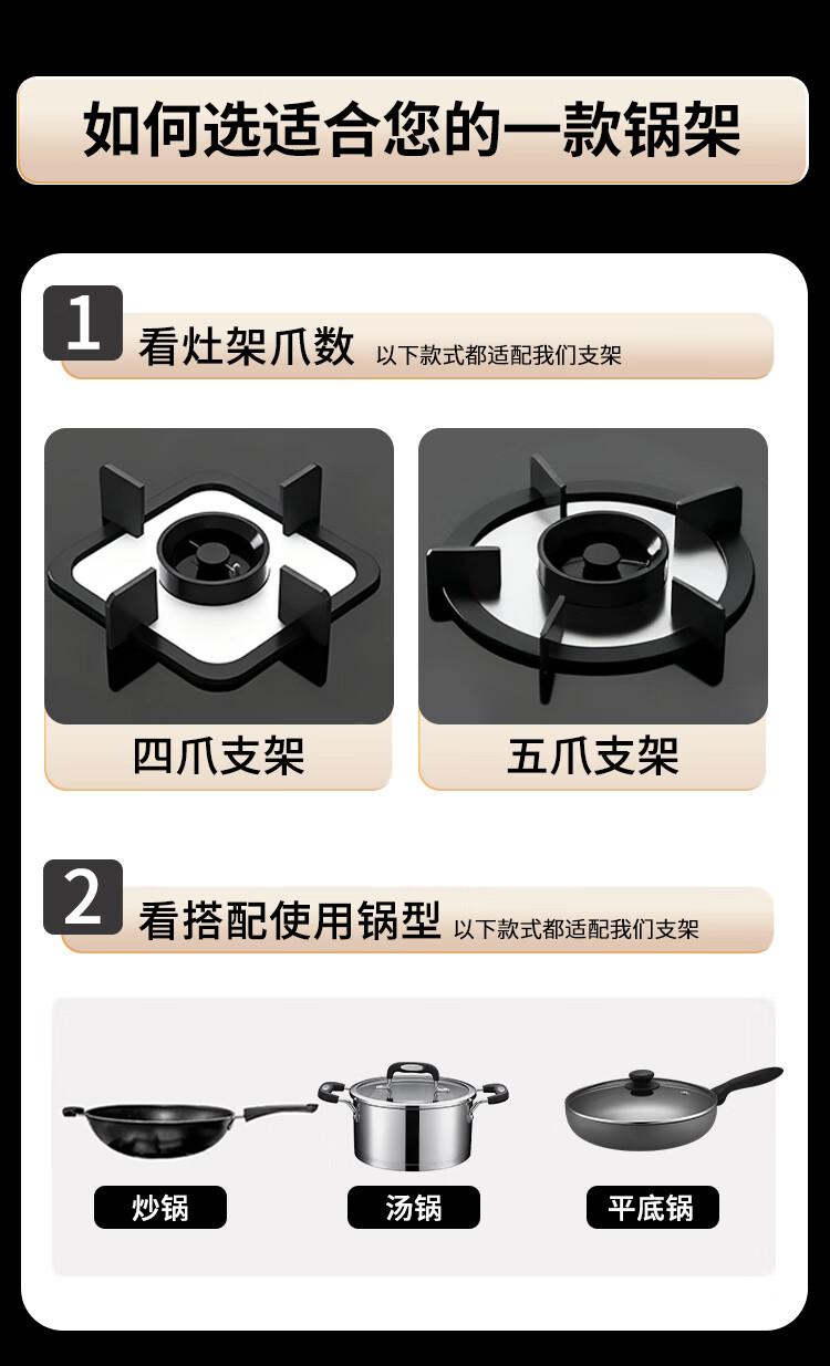 Jinying gas stove bracket thickened cast iron wok rack anti-slip bracket thickened gas stove anti-slip bracket stove bracket pot rack four-legged four-five claw universal