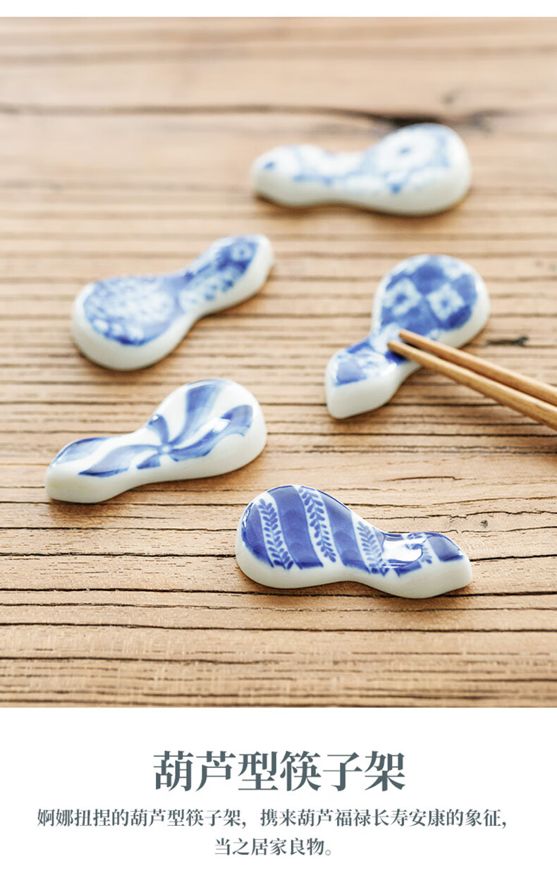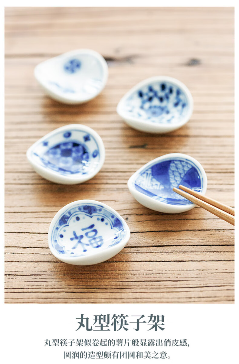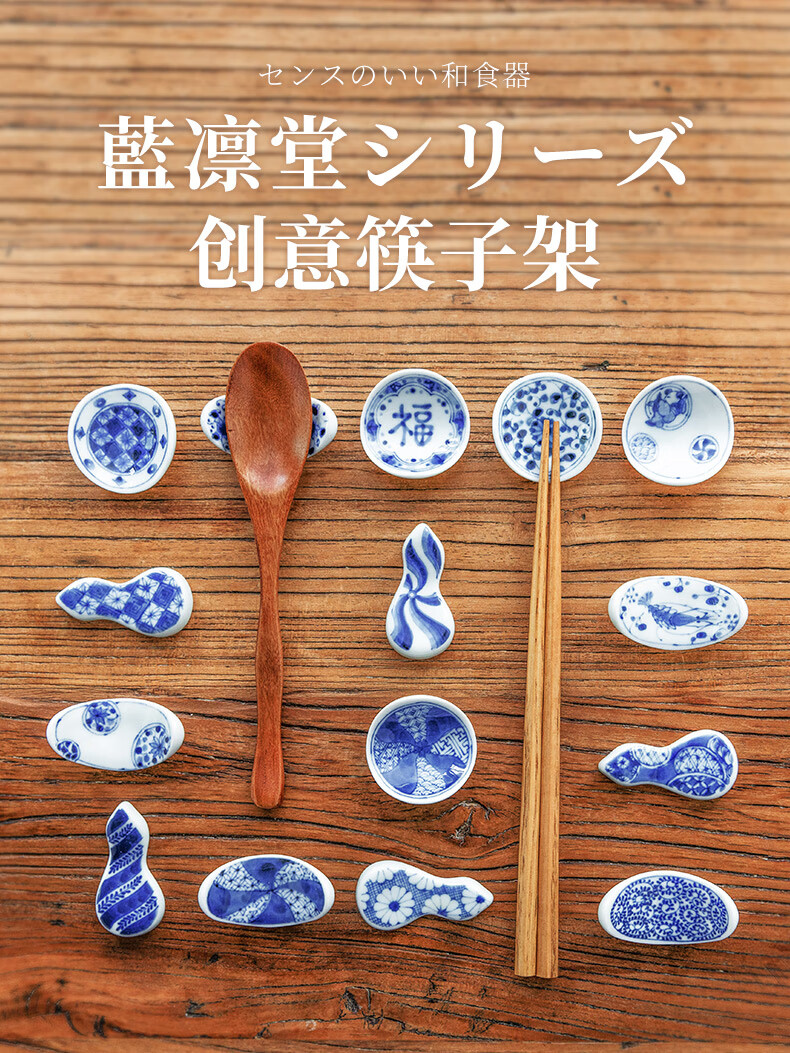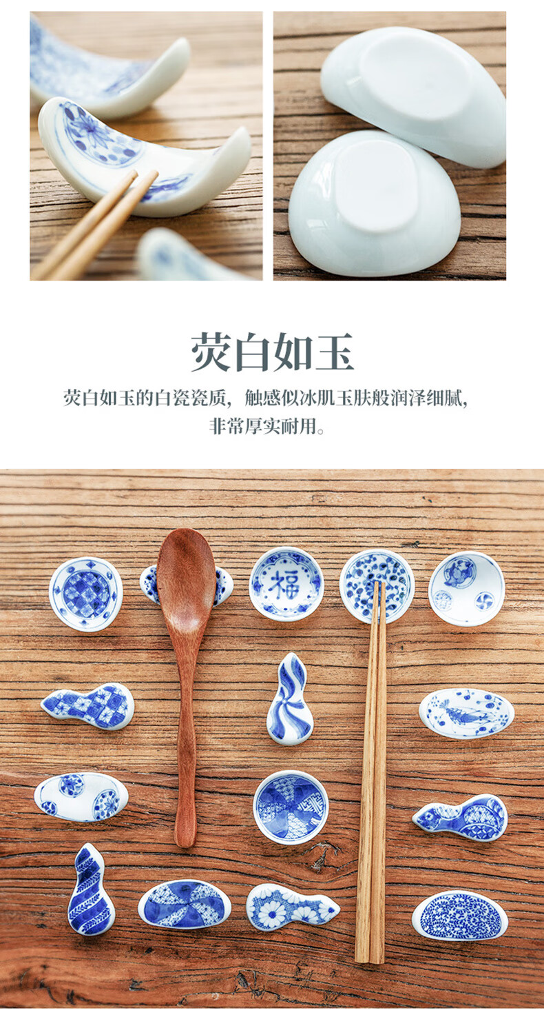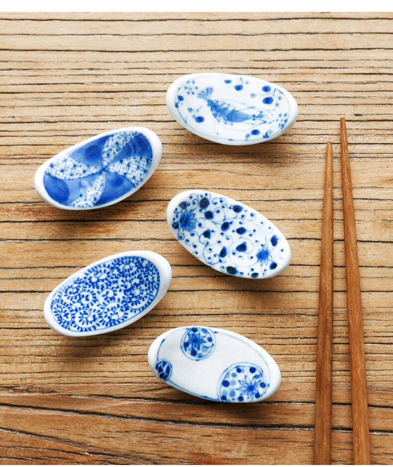 Chiyoyuan imported from Japan Blue Rintang ceramic chopstick holder chopstick holder Japanese-style household chopstick holder chopstick pillow single chopstick holder cutlery holder A1 pill-shaped Nobuku text 1