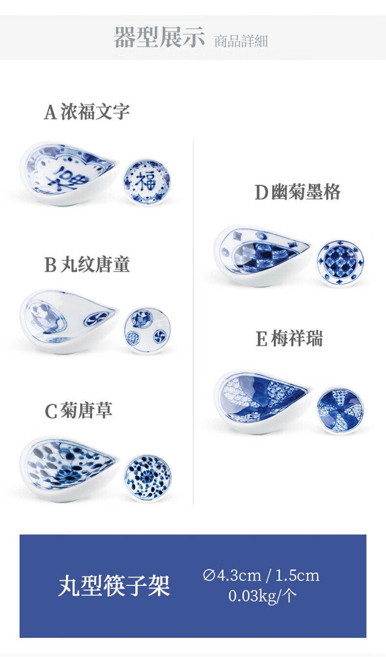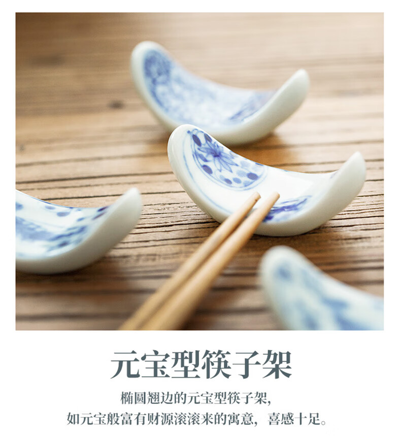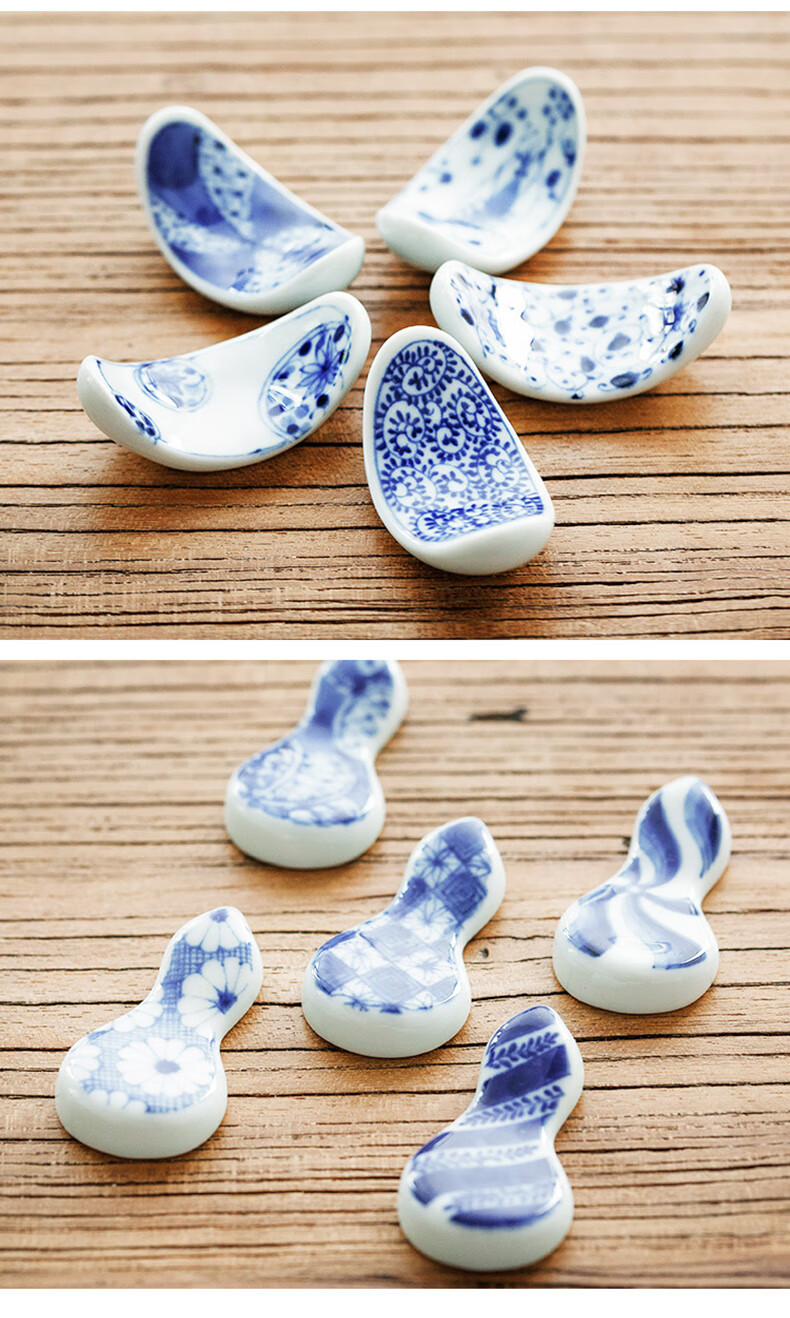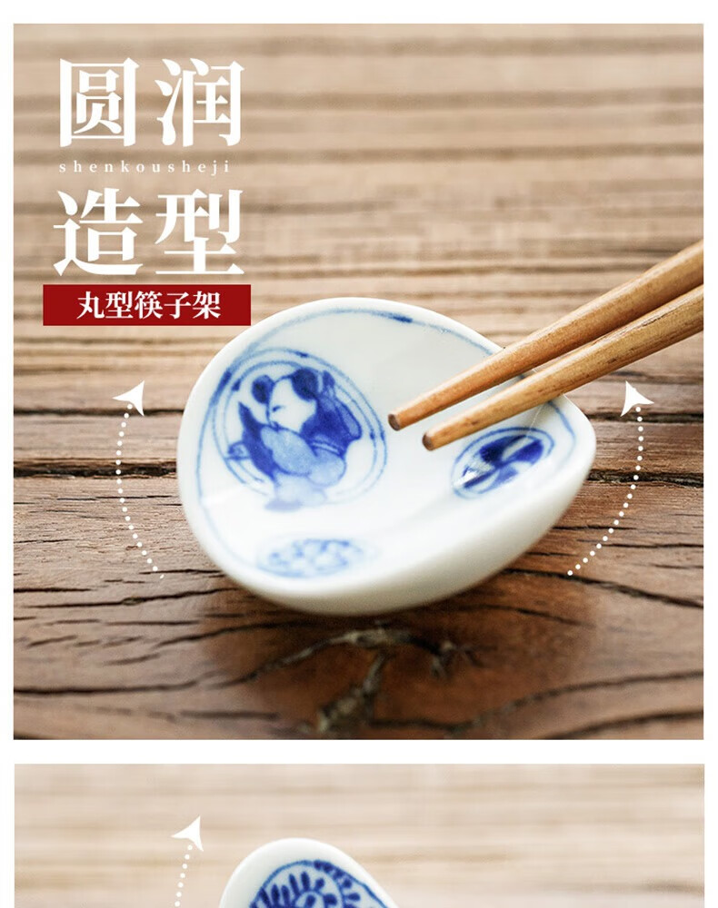Chiyoyuan imported from Japan Blue Rintang ceramic chopstick holder chopstick holder Japanese-style household chopstick holder chopstick pillow single chopstick holder cutlery holder A1 pill-shaped Nobuku text 1