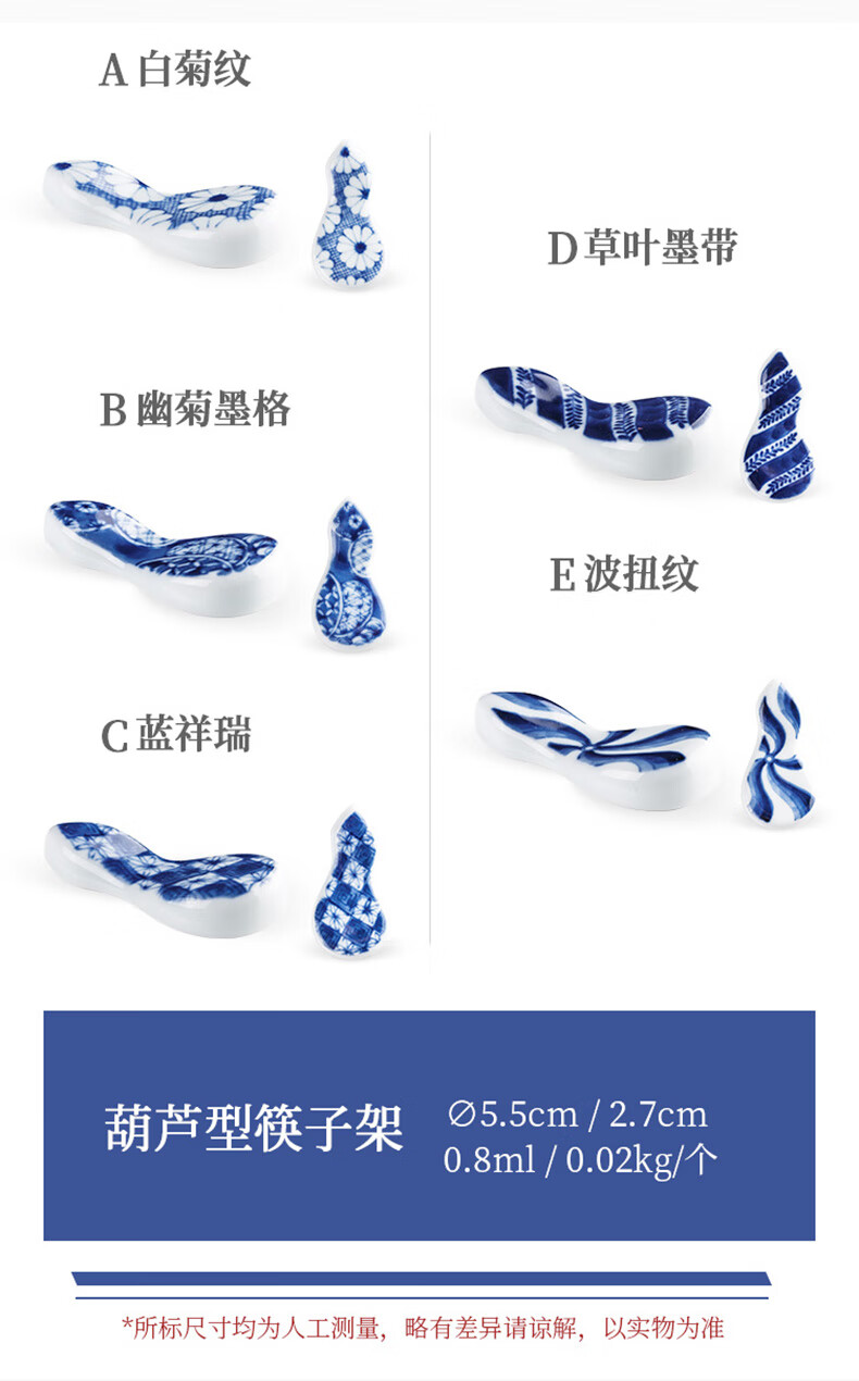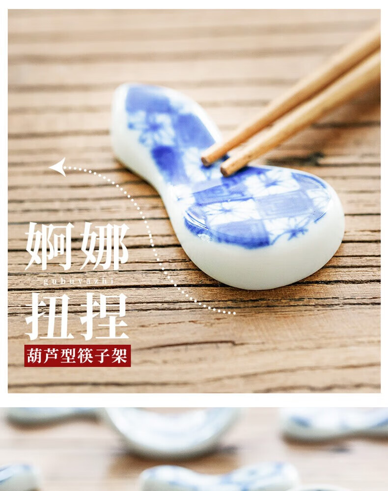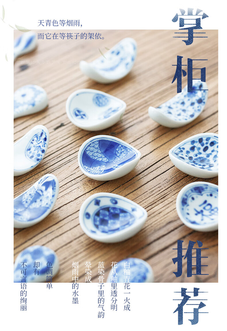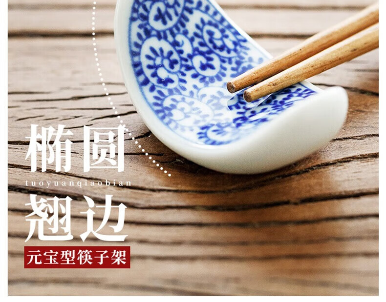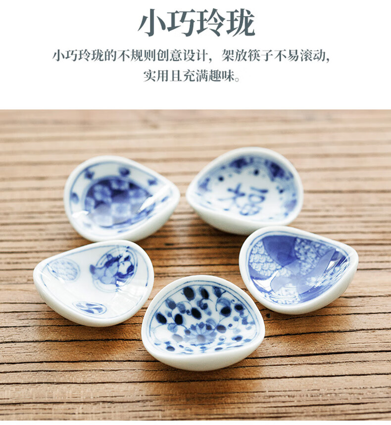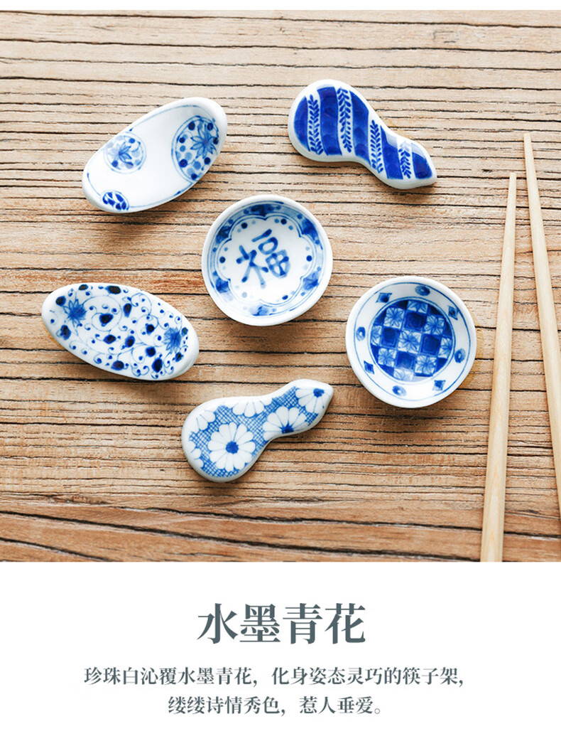 Chiyoyuan imported from Japan Blue Rintang ceramic chopstick holder chopstick holder Japanese-style household chopstick holder chopstick pillow single chopstick holder cutlery holder A1 pill-shaped Nobuku text 1