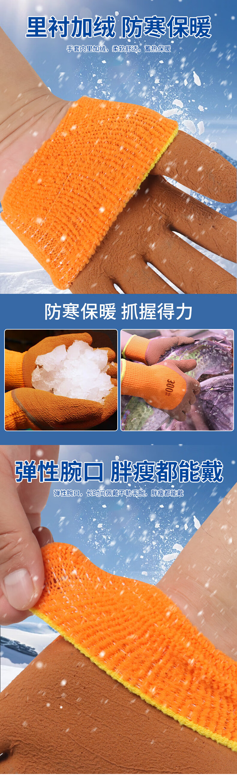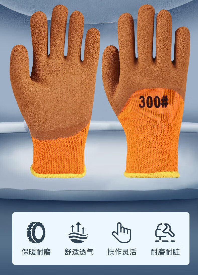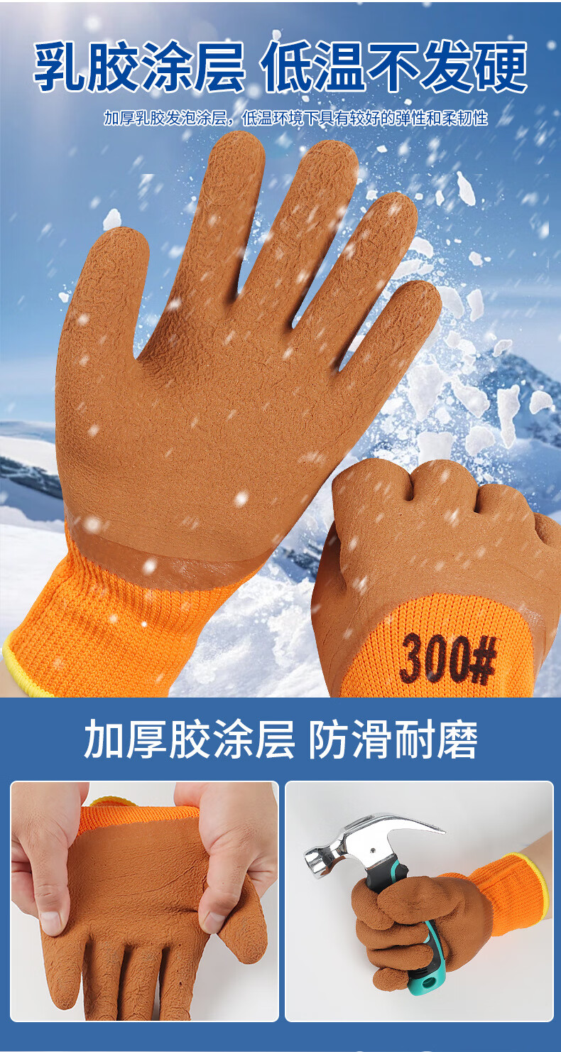 Baige labor protection gloves dipped in rubber, plus velvet and thickened wear-resistant work rubber men's construction site work cold-proof and warm terry rubber wear-resistant construction site cold storage work gloves 10 pairs