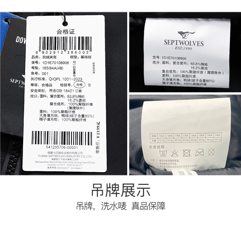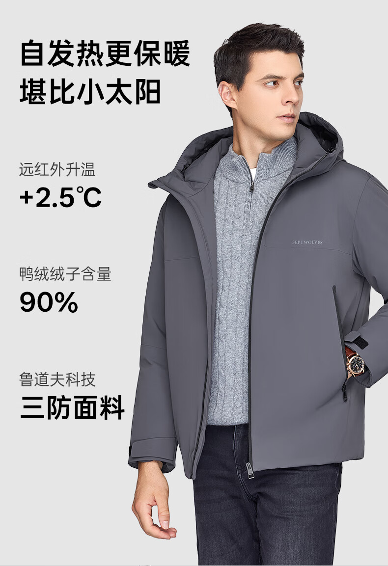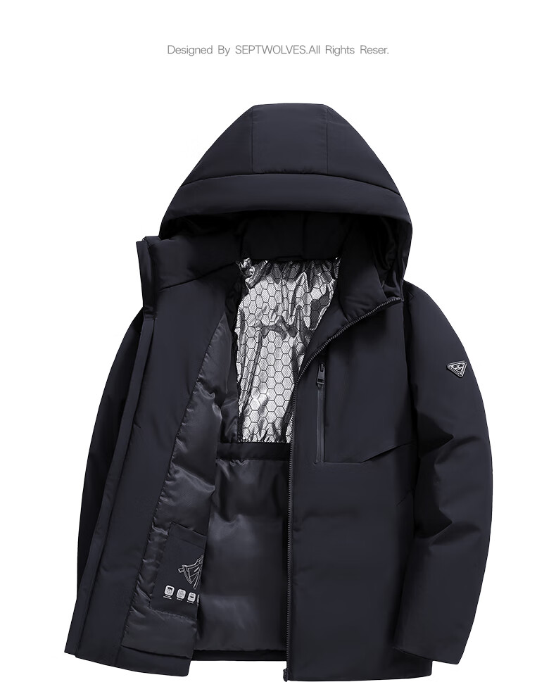 Septwolves three-proof down jacket men's jacket hooded light outdoor temperament commuting three-proof warm jacket men's clothing
