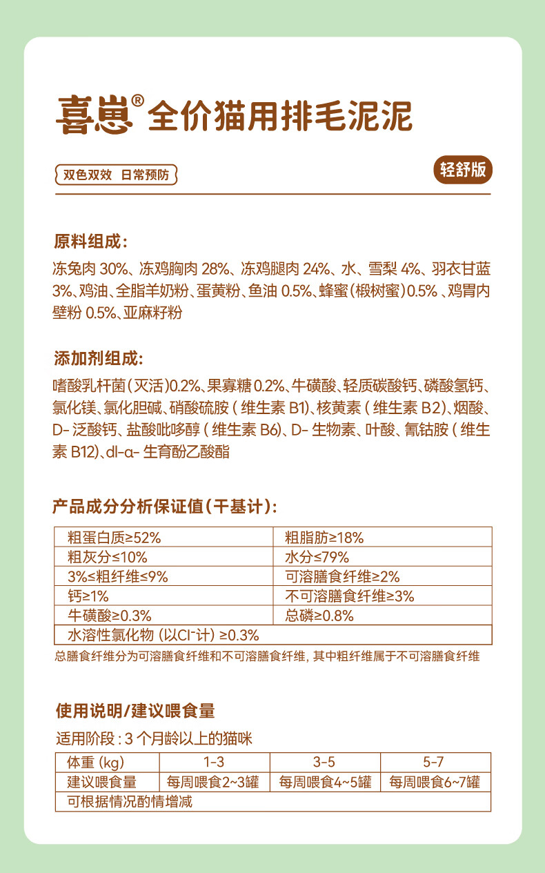 Xizai's new product Qingshu 6 cans of hair-removing mud mud cans are staple food functions, wet food for cats, gentle hair removal, and care for the intestines and stomach