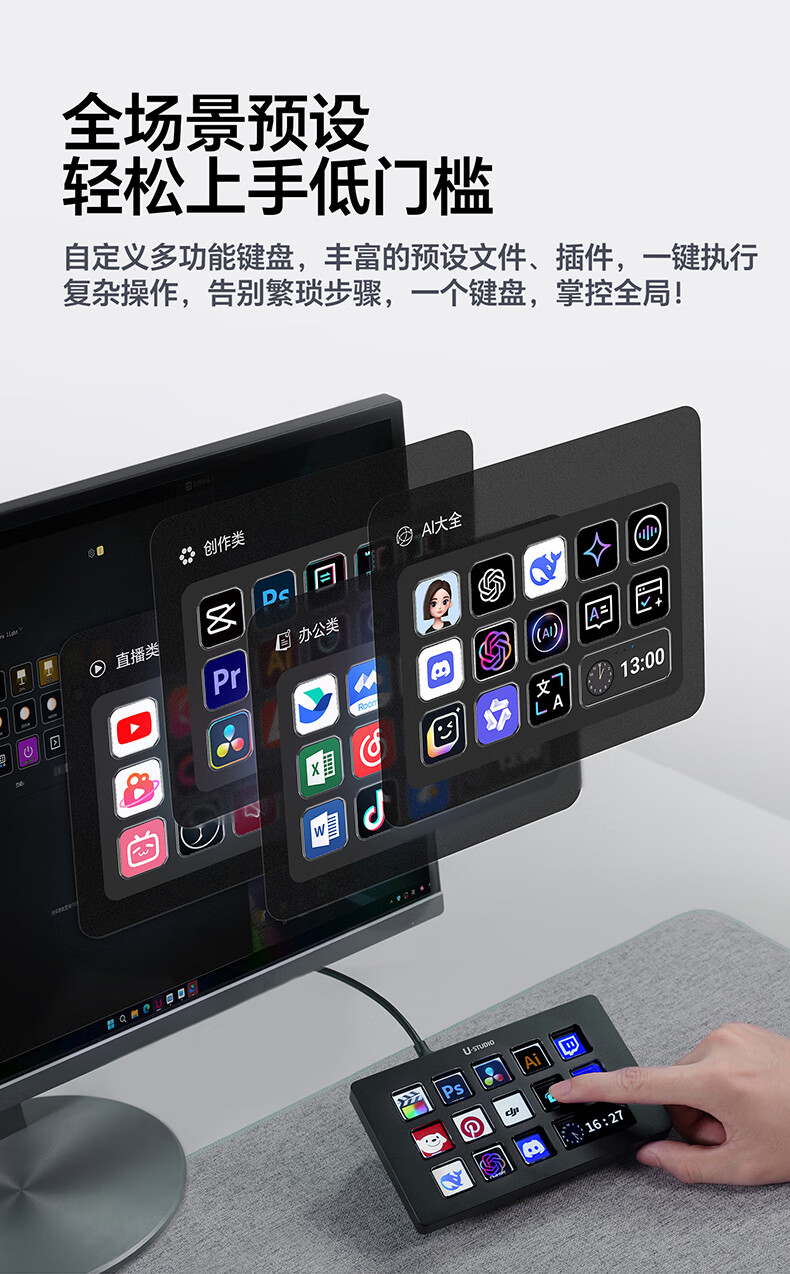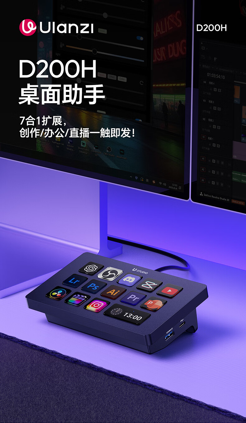 Ulanzi excellent basket 2025 new D200H Stream Deck console LCD visual live broadcast console shortcut macro keyboard live broadcast guide switching macro button with base
