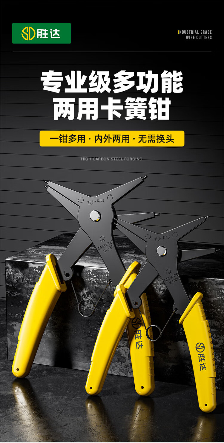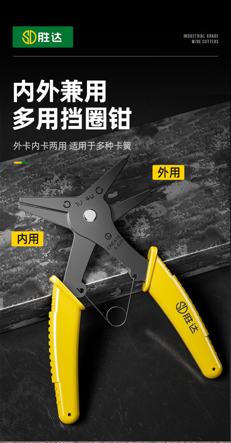Shengda dual-purpose circlip pliers multifunctional two-in-one internal and external circlip pliers spring retaining ring removal tool + screwdriver