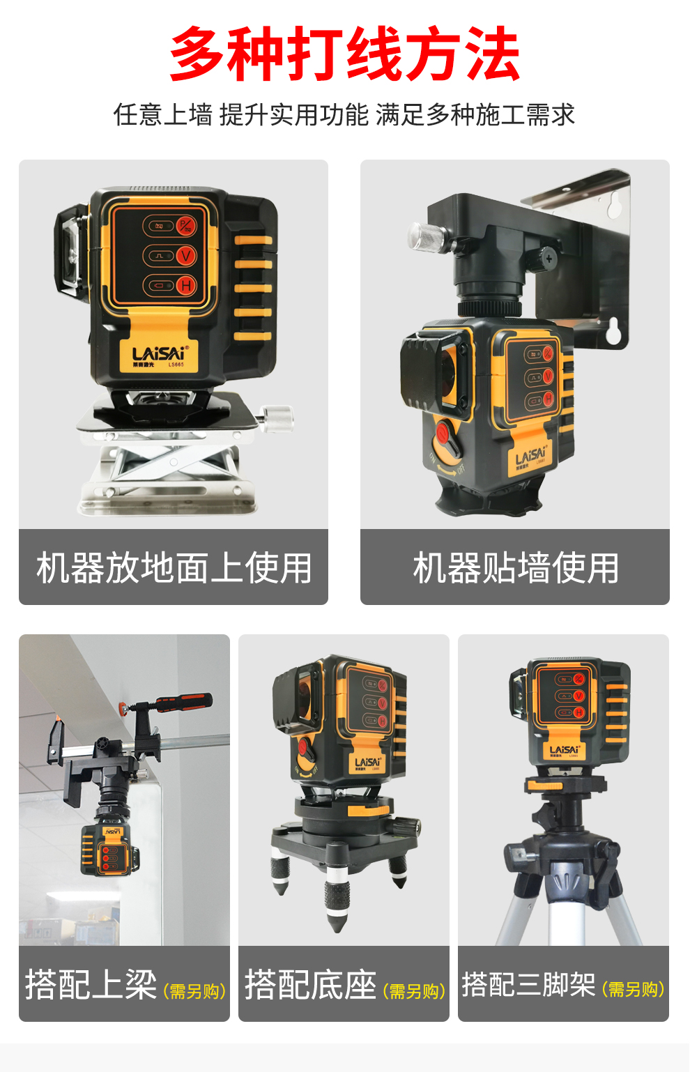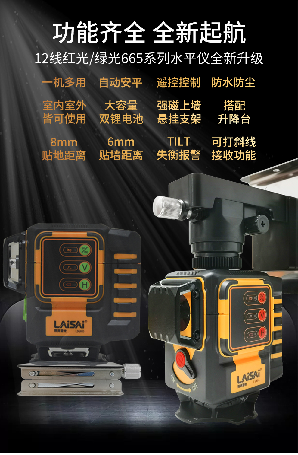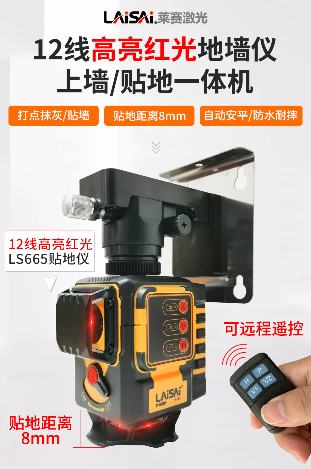 Laser Laser Laser level red light 12-line LS665S wall-mounted all-in-one machine high-precision infrared marking meter Red light 12-line LS665S standard + double lithium battery