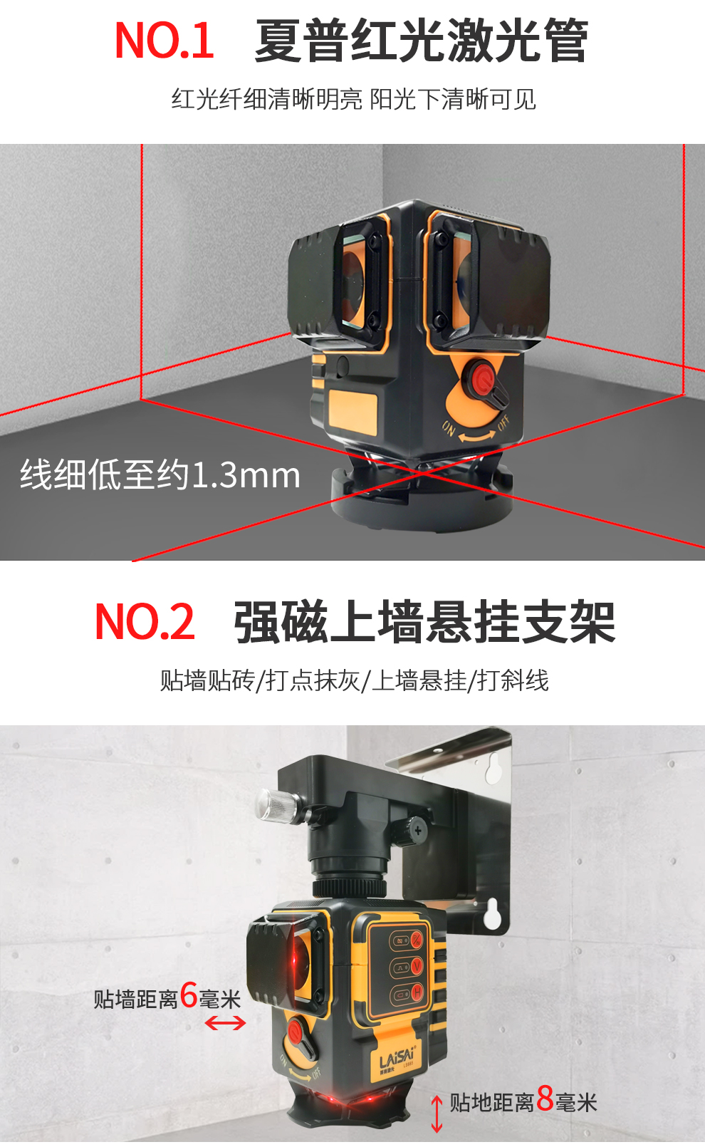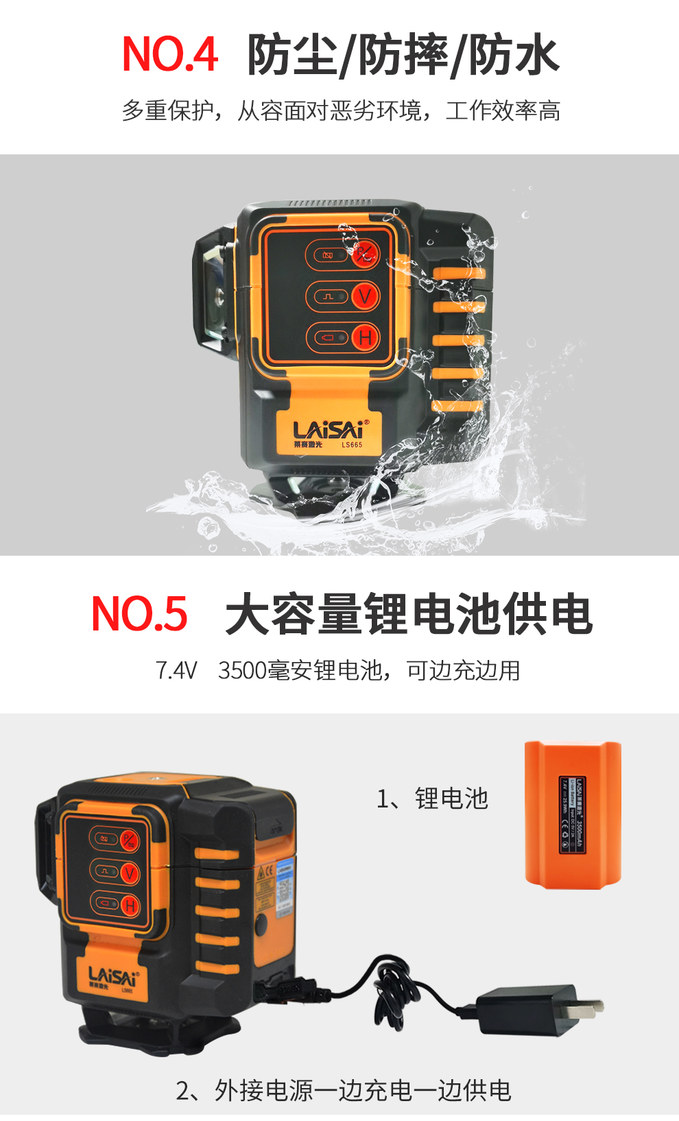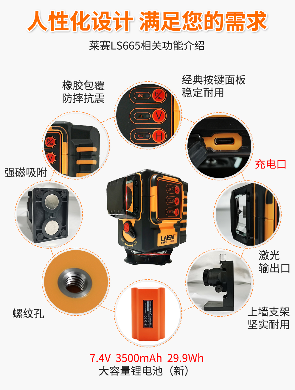 Laser Laser Laser level red light 12-line LS665S wall-mounted all-in-one machine high-precision infrared marking meter Red light 12-line LS665S standard + double lithium battery