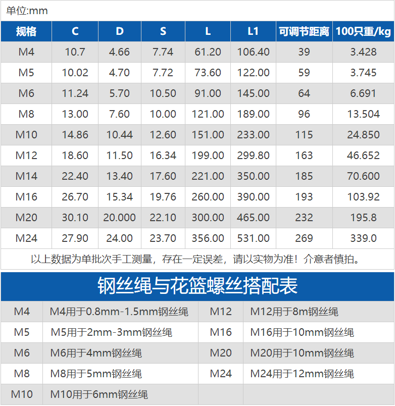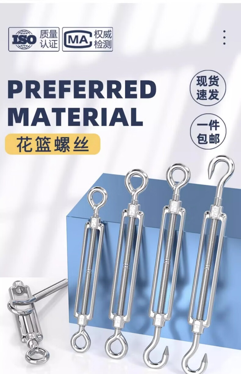 Fengji 304/316 stainless steel flower basket screw tightener tightening wire wire rope tensioner rope tightener bolt screw M8 304 material OC type