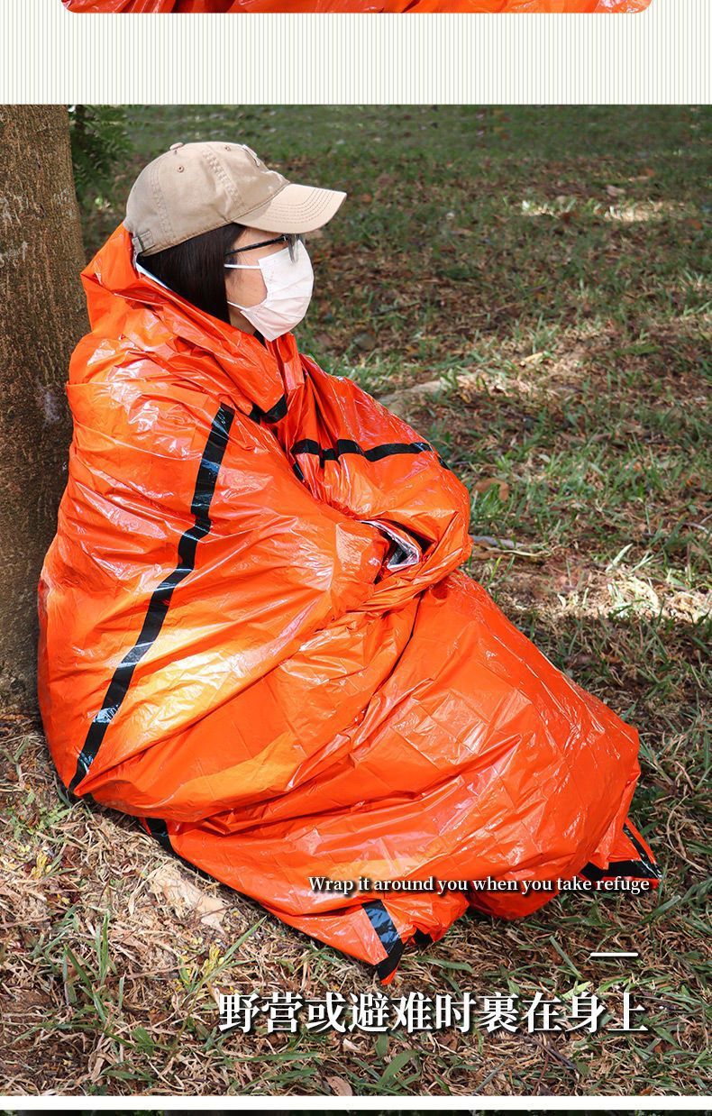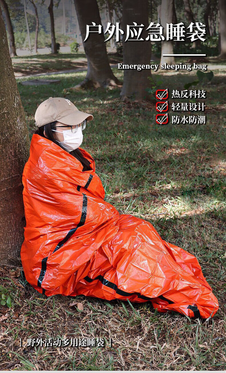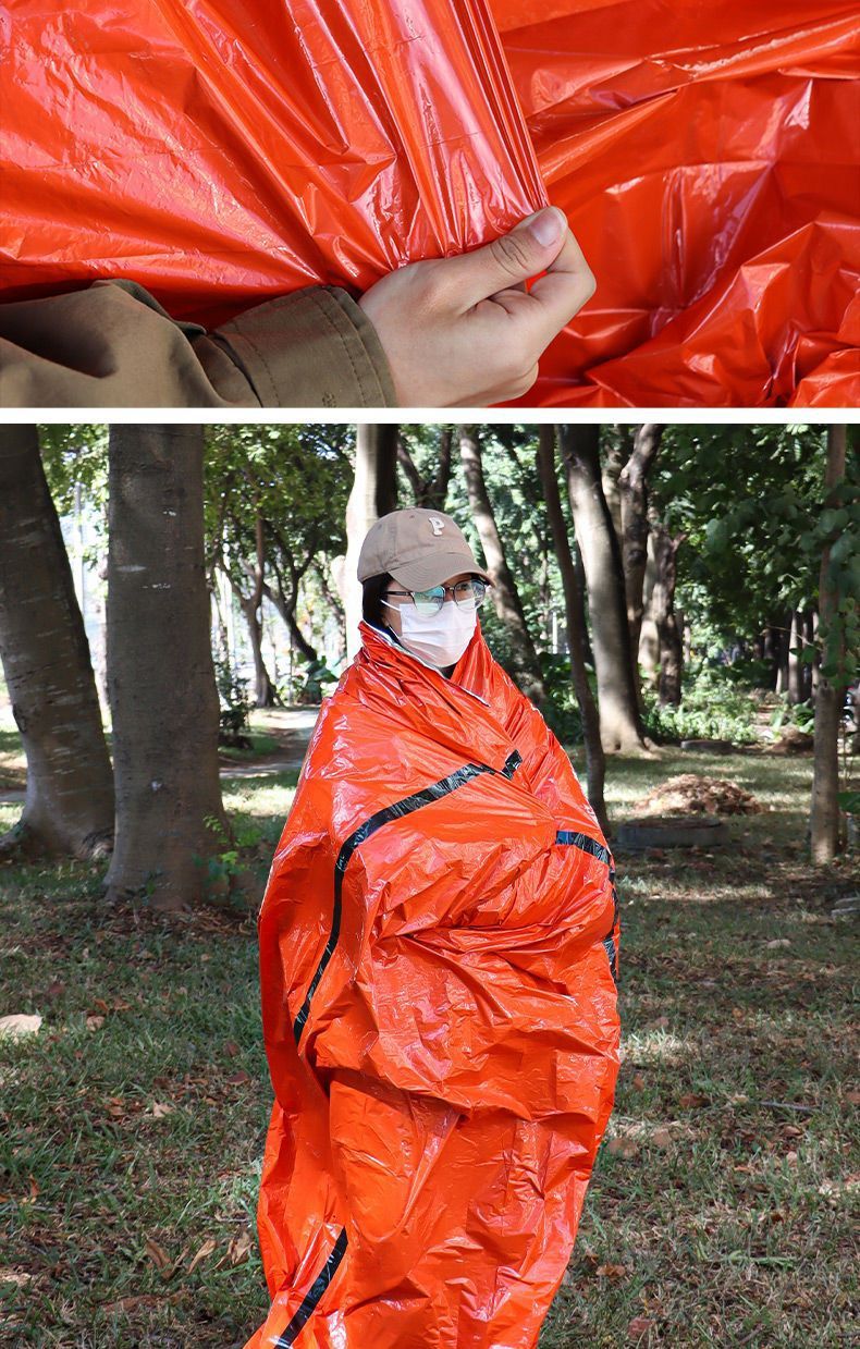 Minggu Emergency Insulated Sleeping Bag Outdoor Insulated Life Blanket Thick Emergency Blanket Reserve Materials Cold-proof Sleeping Bag Orange Large