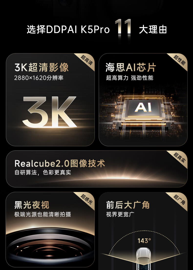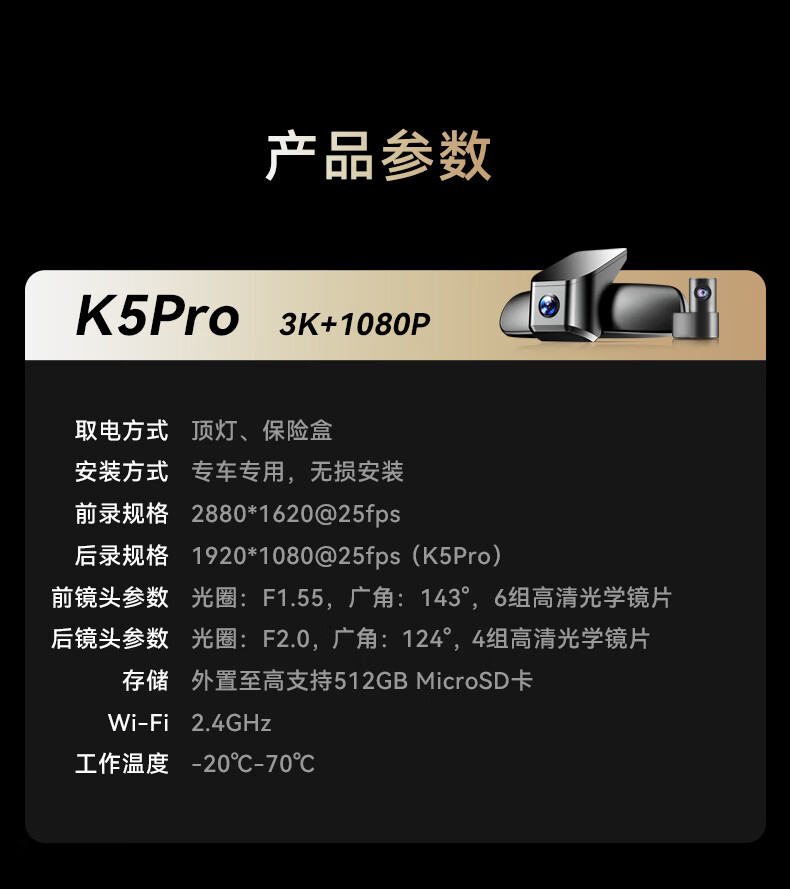Dandaipai K5Pro driving recorder 3K ultra-clear dedicated Toyota Camry Seineville Asia Dragon Front Landa 128G card