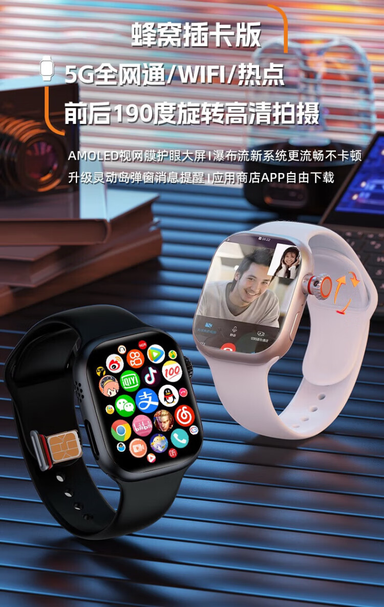 School smart phone watch, video calling, face recognition, NFC insertable card, smart island, 5G full network, junior version for boys and girls, middle school students and high school students