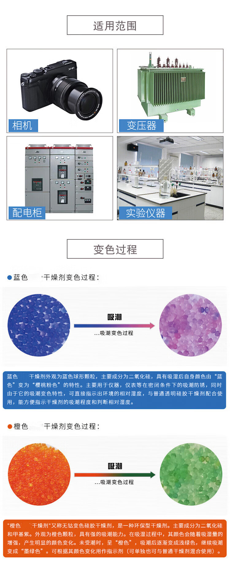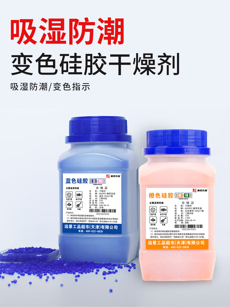 Hoskop Desiccant Industrial Desiccant Dehumidification and Moisture-proof Blue Color-Changing Silica Gel Particles Moisture-proof Beads Machinery Equipment Camera Electronic Products Dehumidification Box Reusable 20 bottles/box