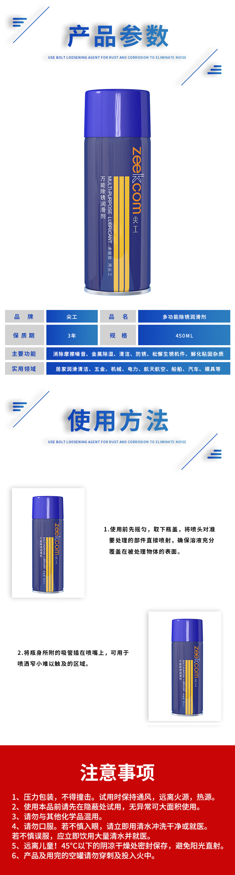 Sharp bolt loosening agent, universal rust removal lubricant, metal screw bolt loosening agent, car and home dual-purpose rust loosening agent, rust cleaning agent