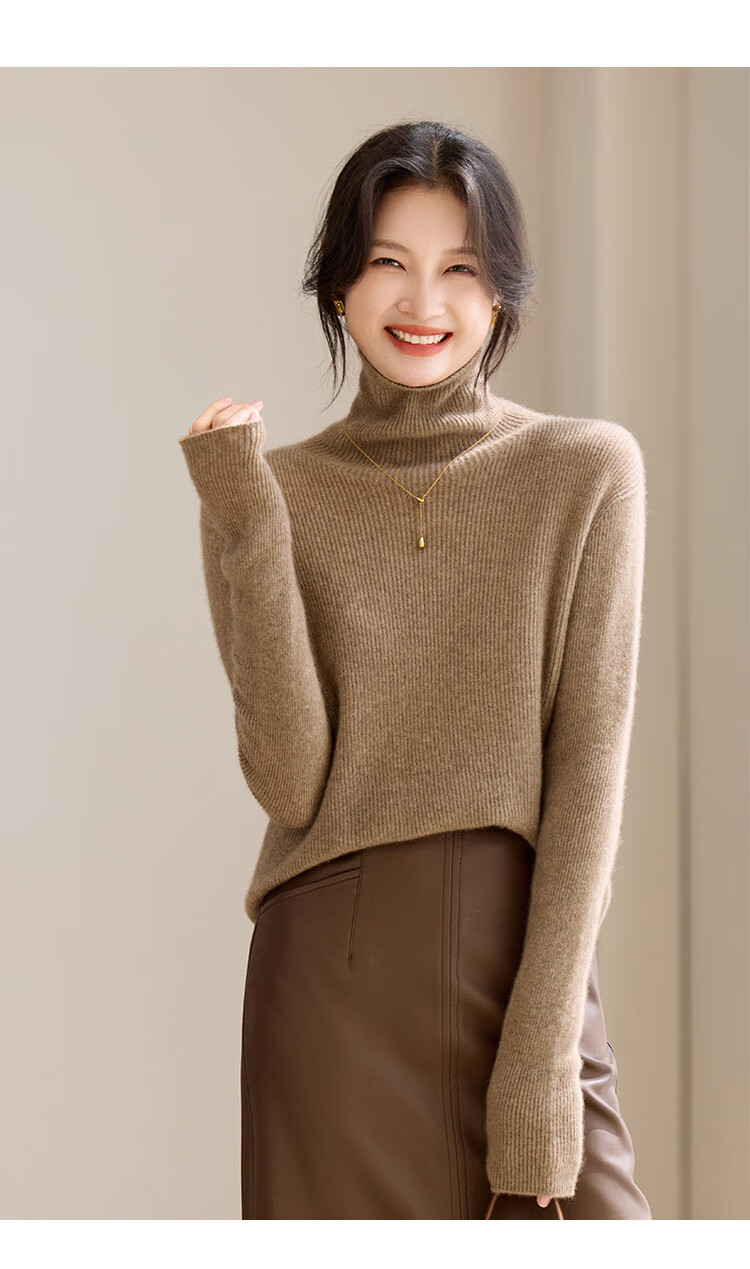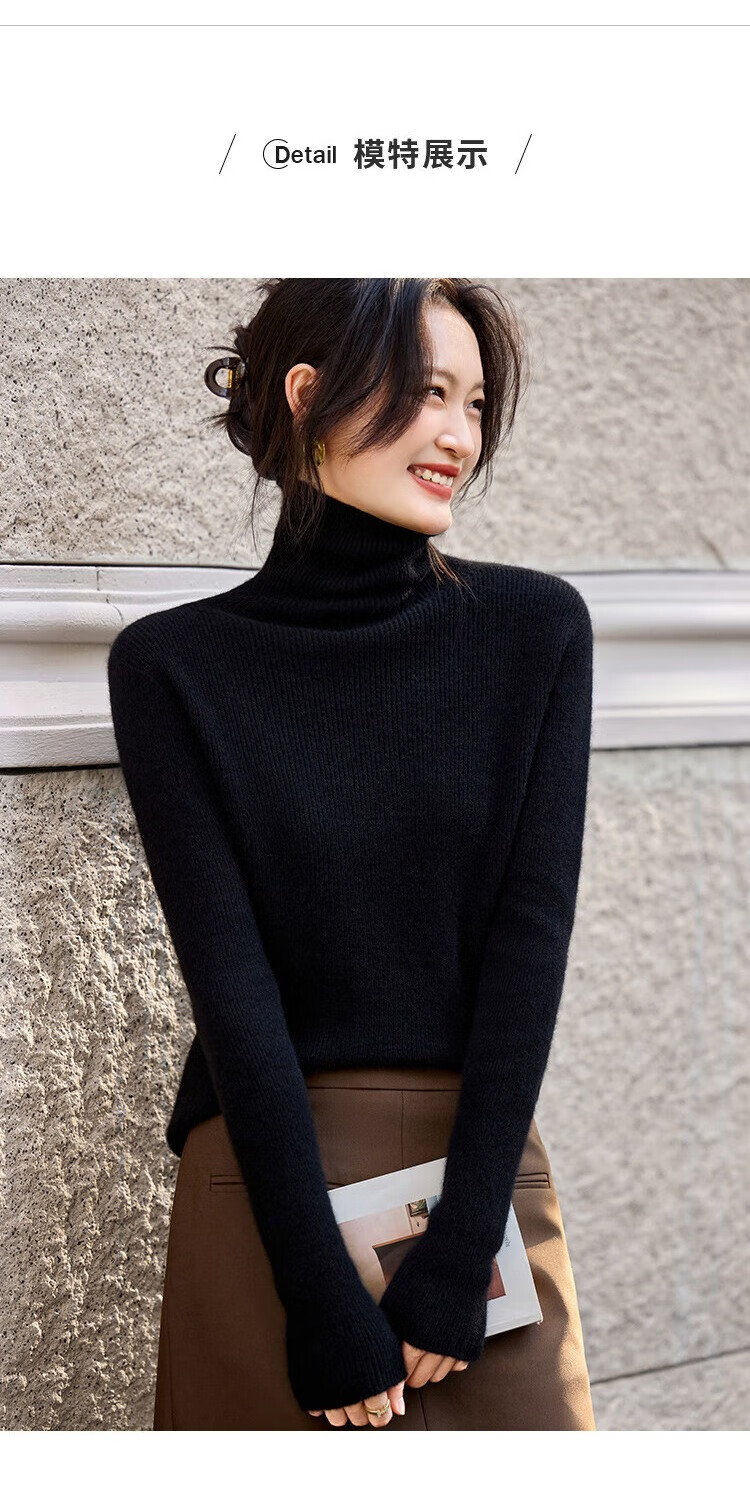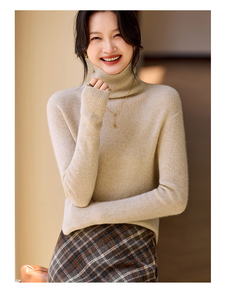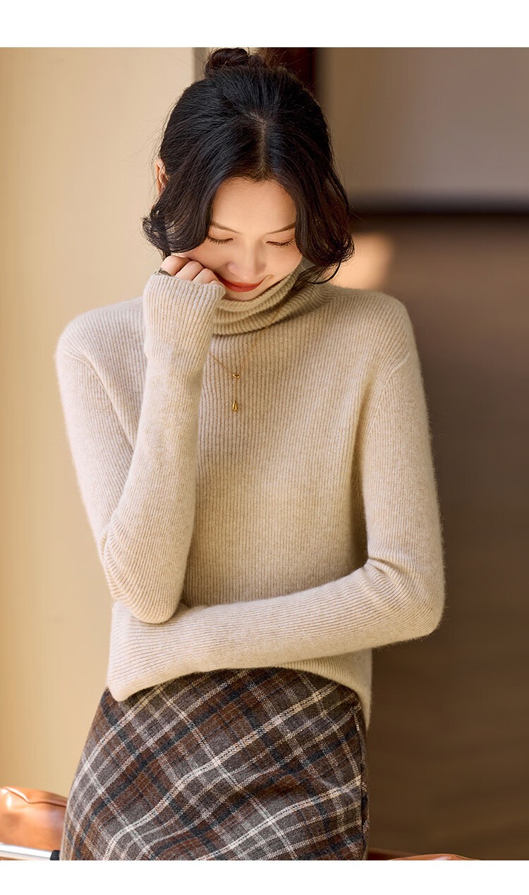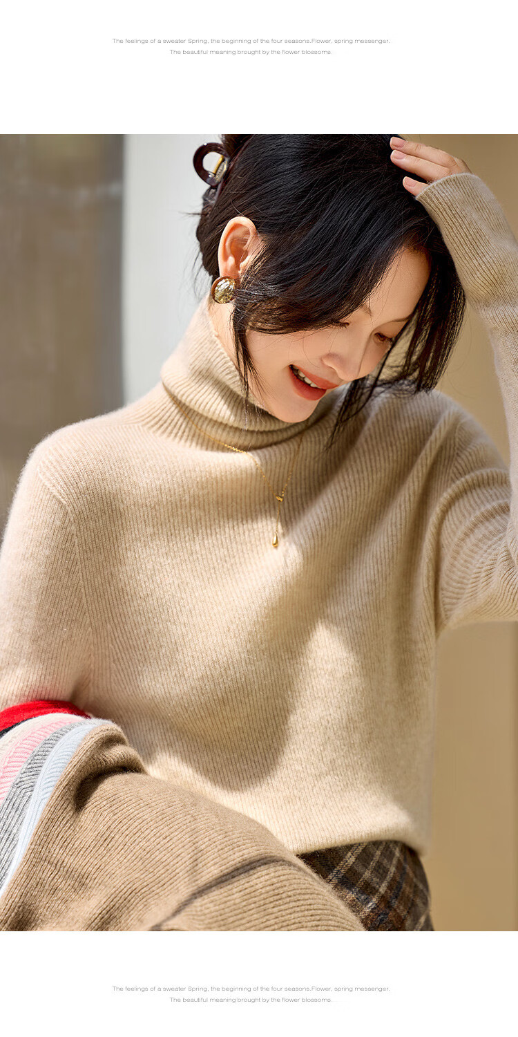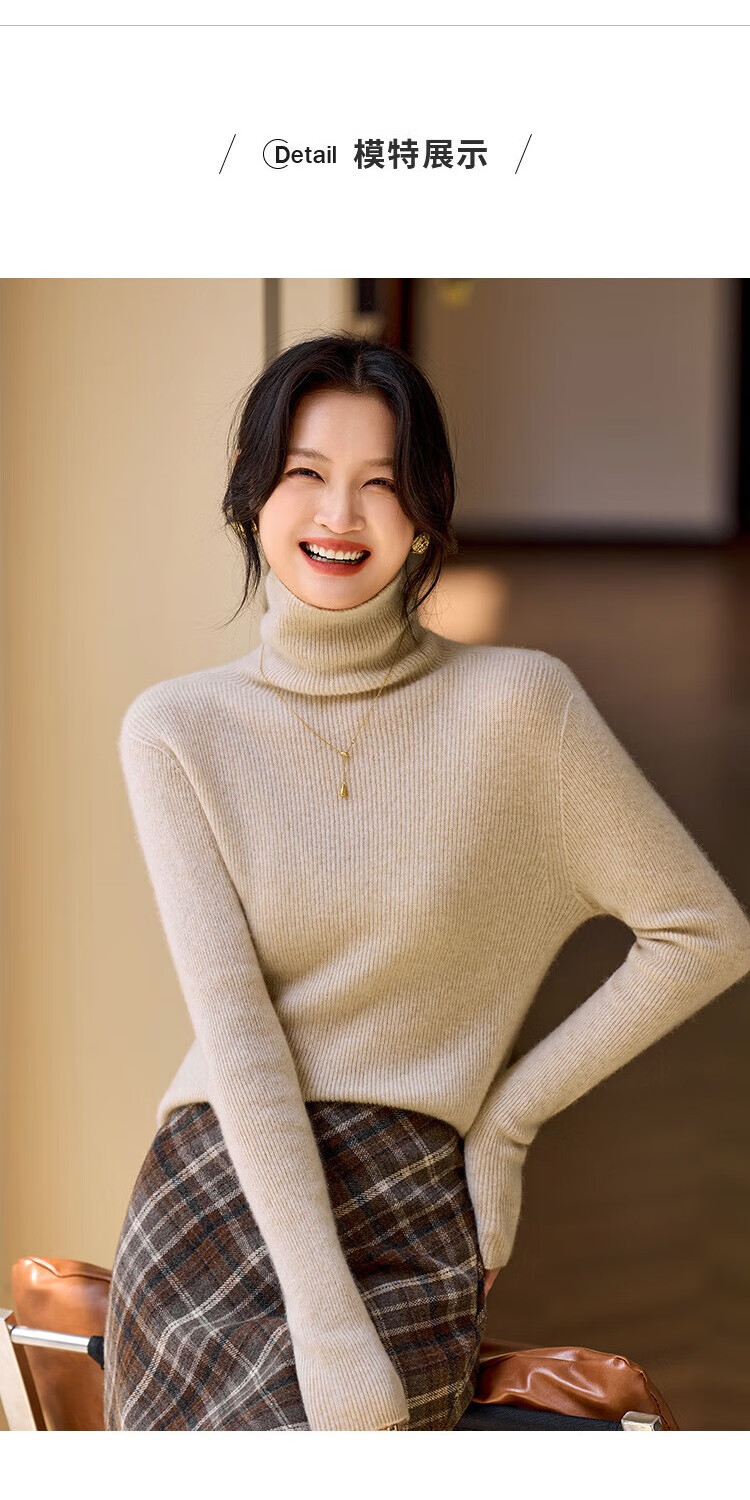 Shexi (Srcr) turtleneck cashmere sweater for women 100% cashmere inner sweater autumn and winter high-end light luxury age-reducing knitted base