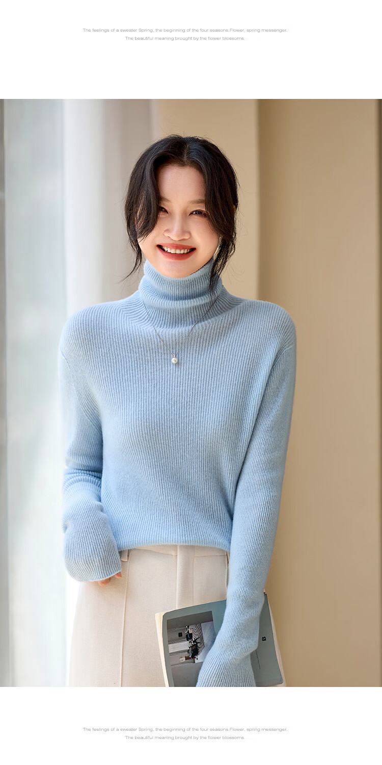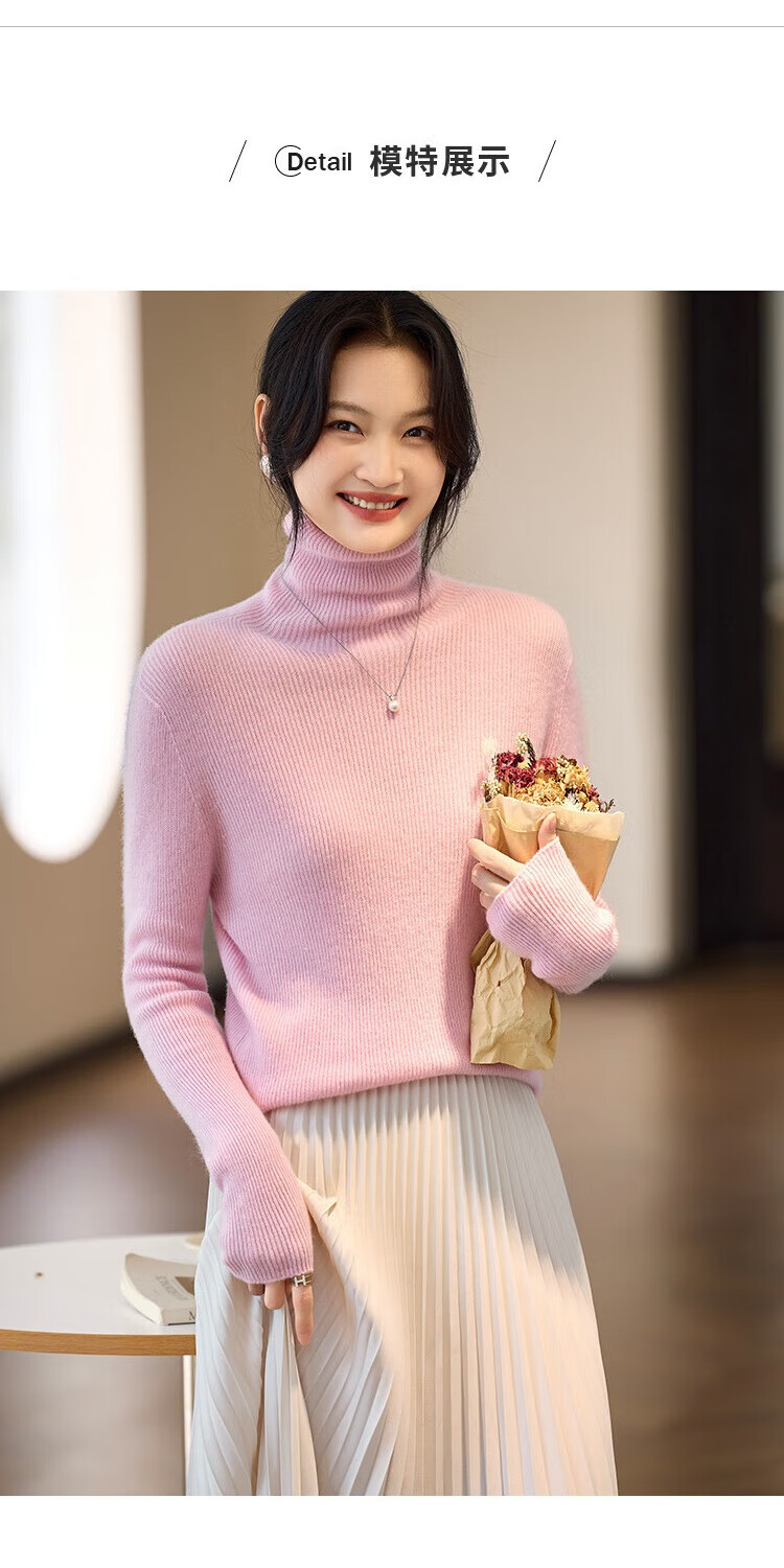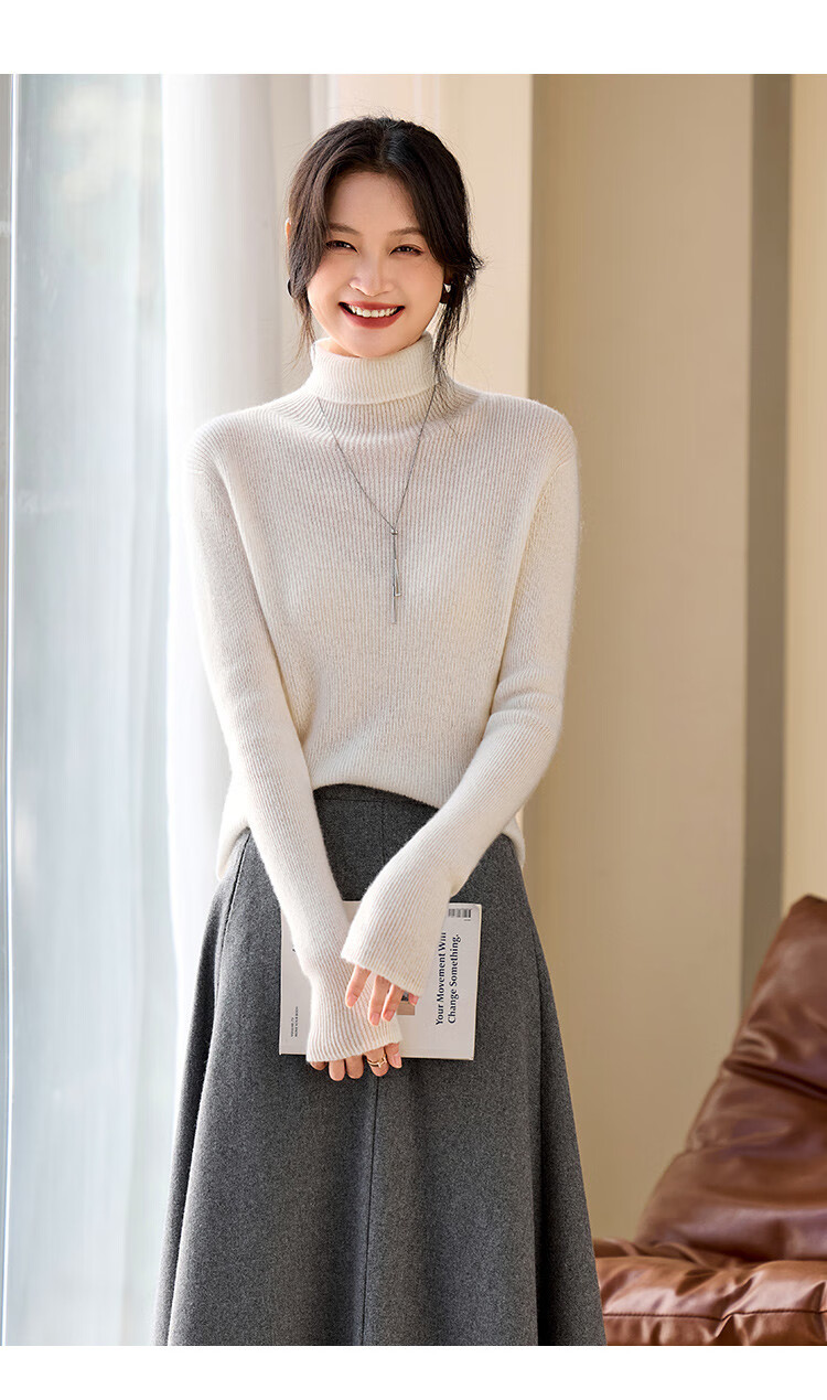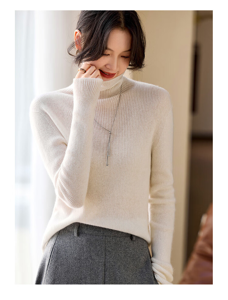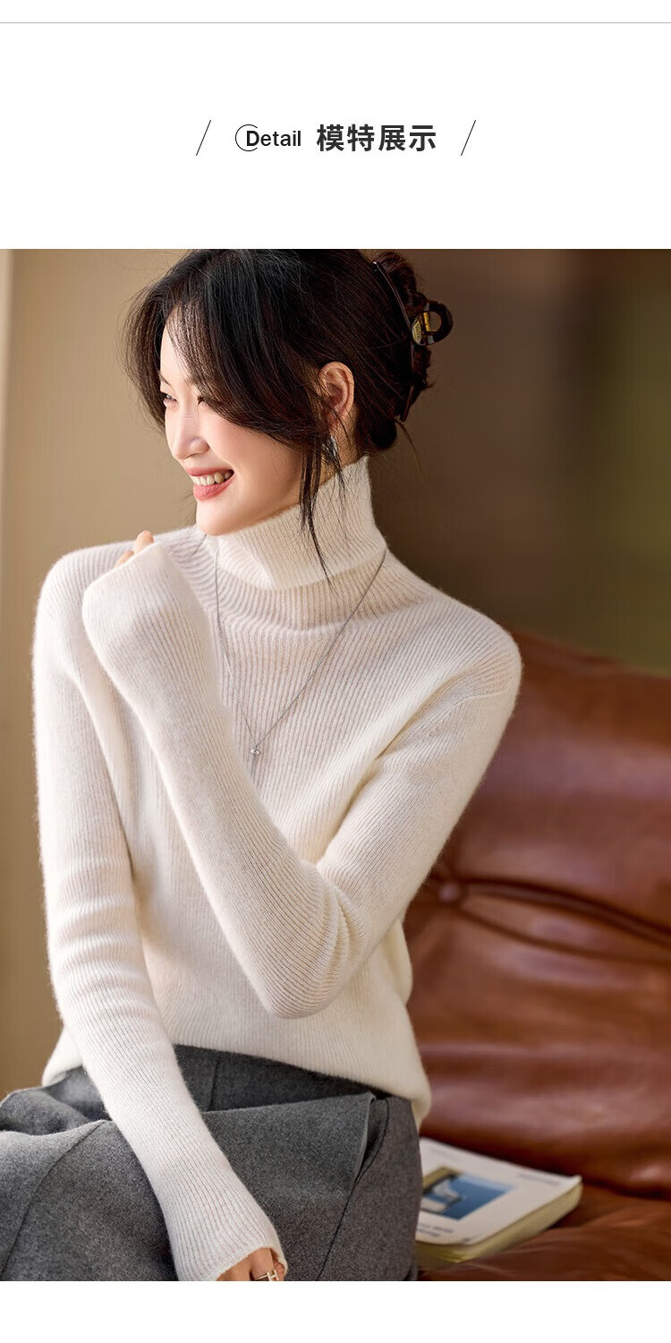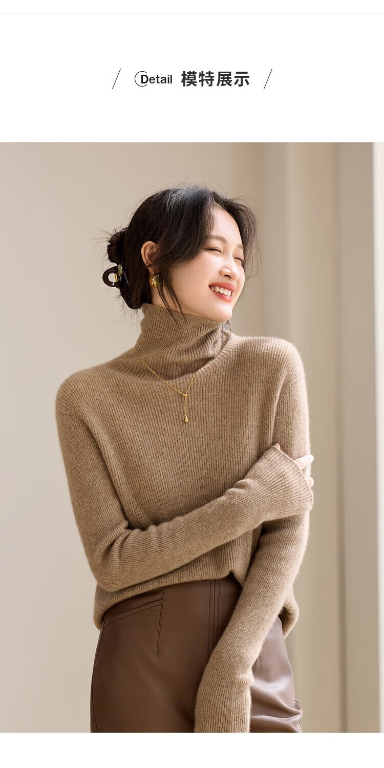 Shexi (Srcr) turtleneck cashmere sweater for women 100% cashmere inner sweater autumn and winter high-end light luxury age-reducing knitted base