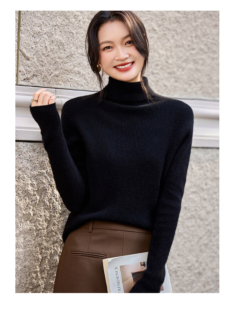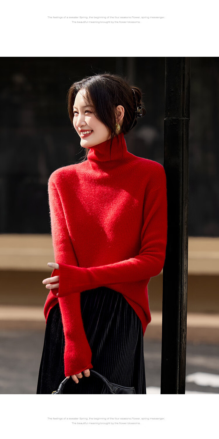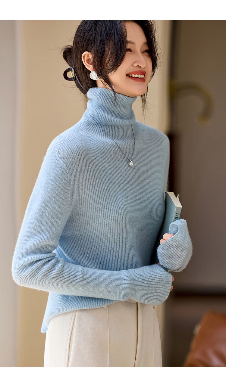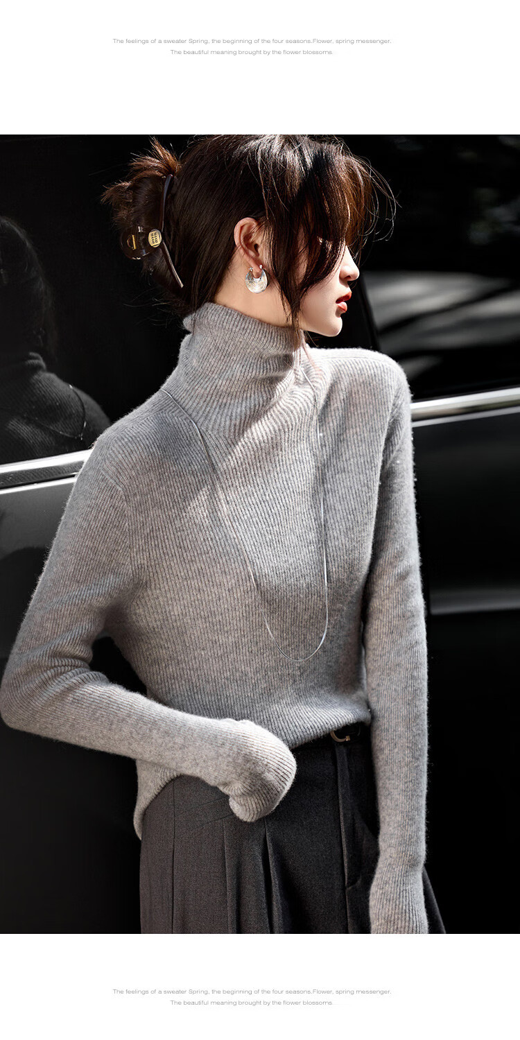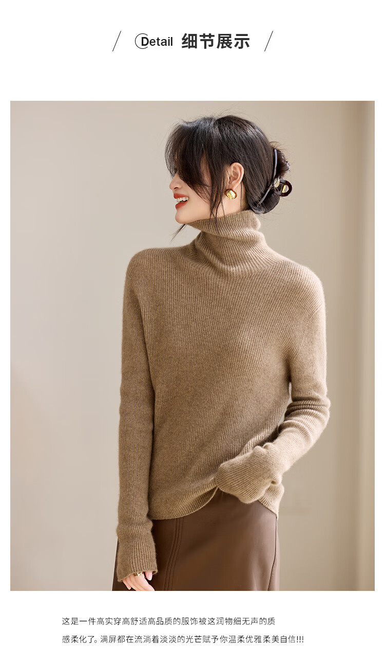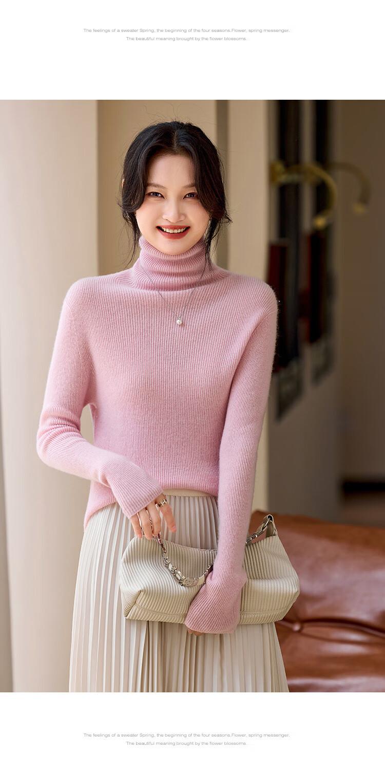 Shexi (Srcr) turtleneck cashmere sweater for women 100% cashmere inner sweater autumn and winter high-end light luxury age-reducing knitted base