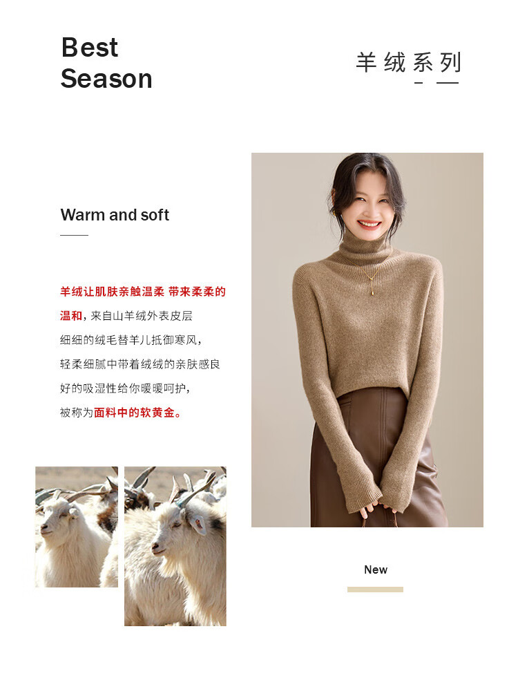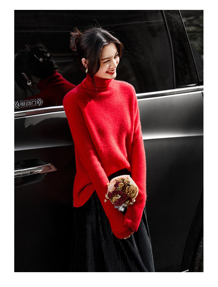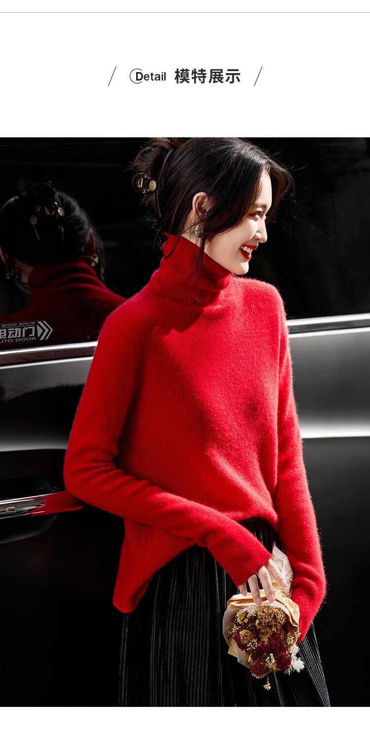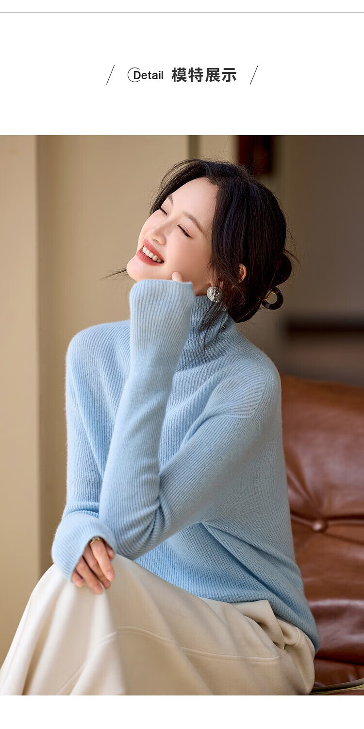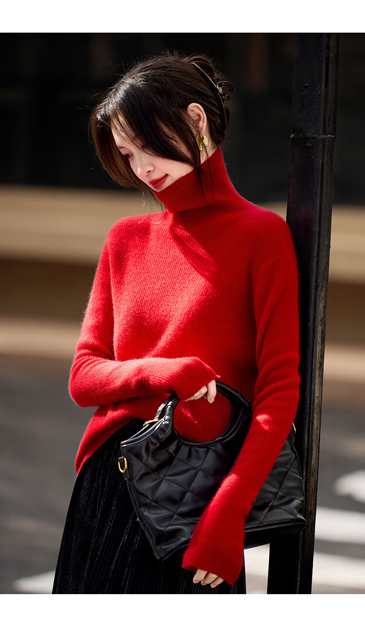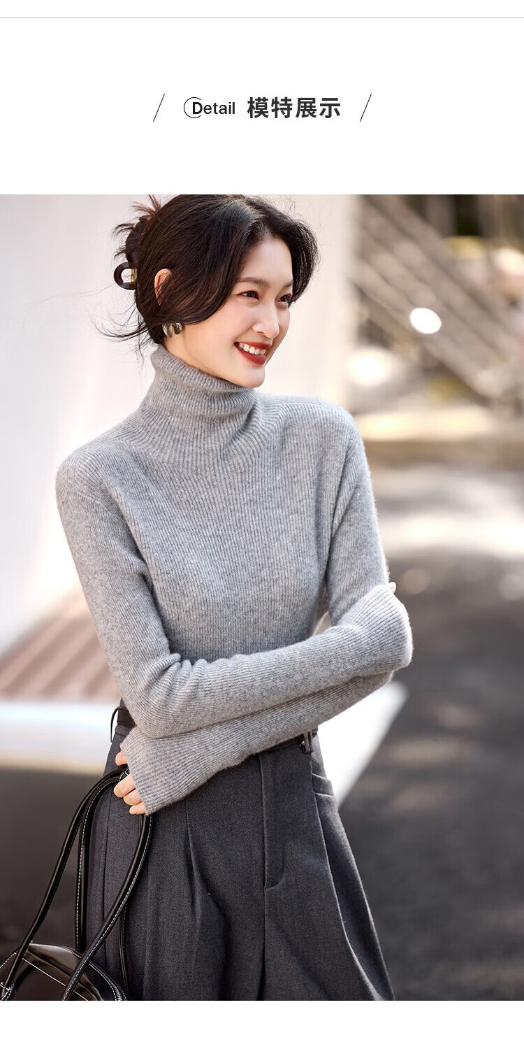 Shexi (Srcr) turtleneck cashmere sweater for women 100% cashmere inner sweater autumn and winter high-end light luxury age-reducing knitted base