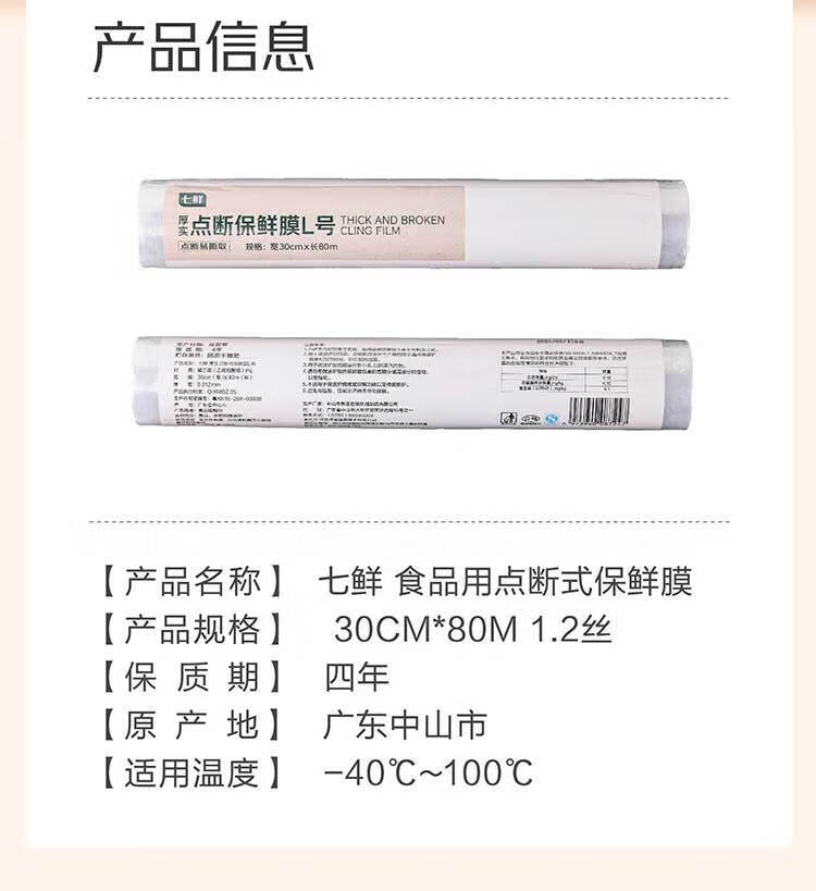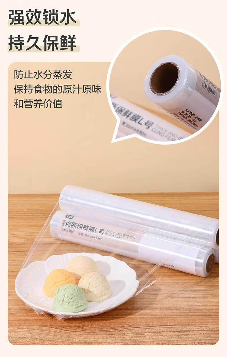 Qixian food point break type plastic wrap 30CM*80M food household plastic wrap cover