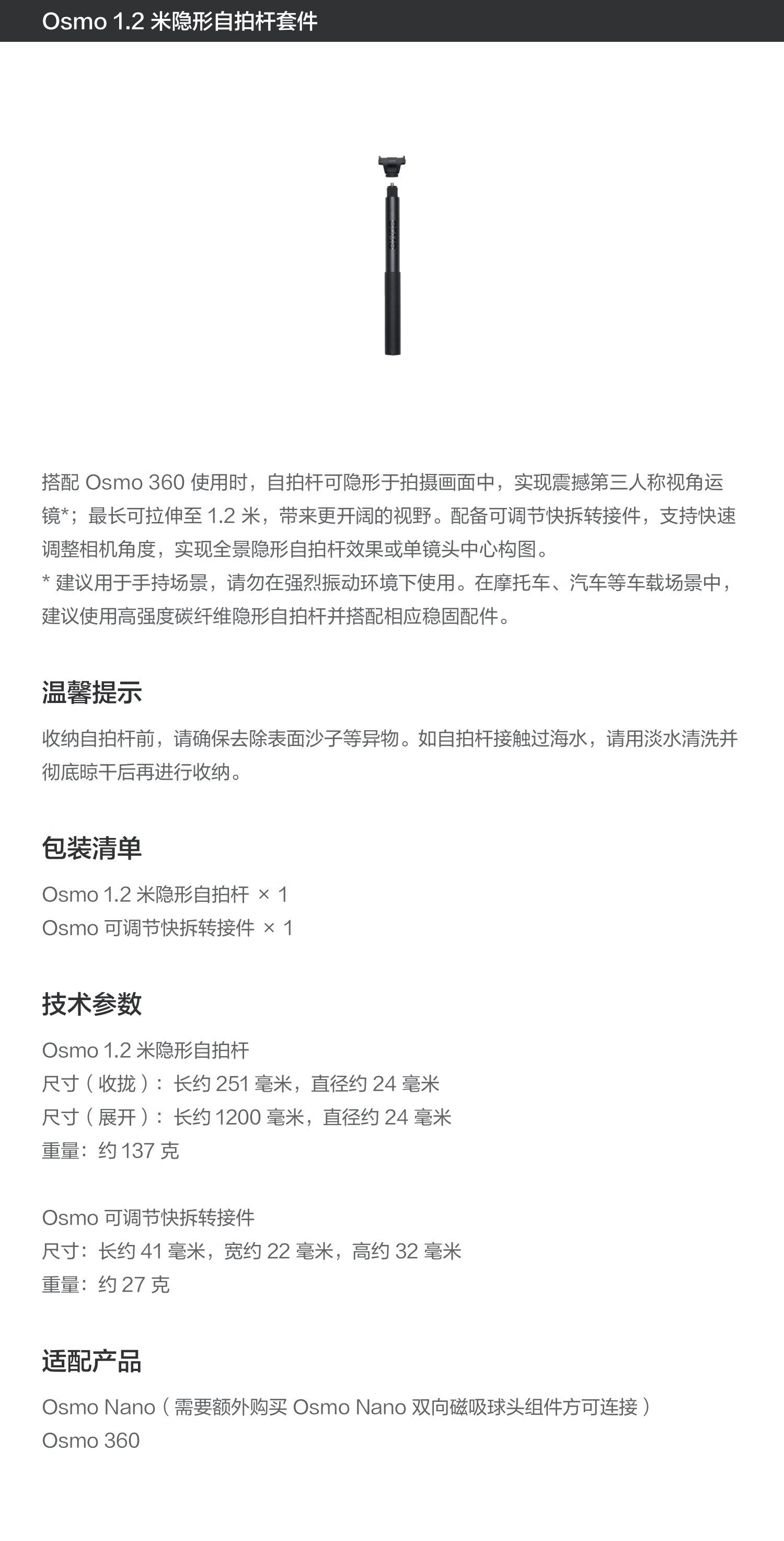 DJI Osmo 1.2m invisible selfie stick kit Osmo Nano/Osmo 360 accessories