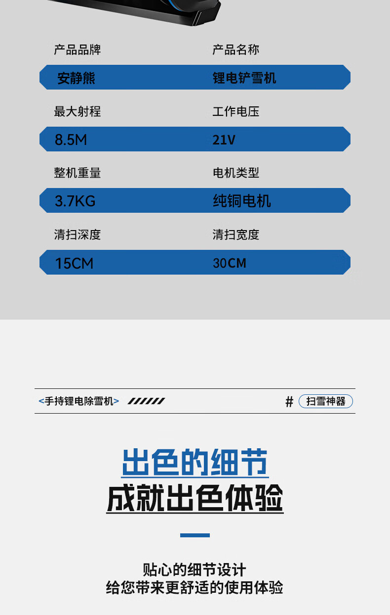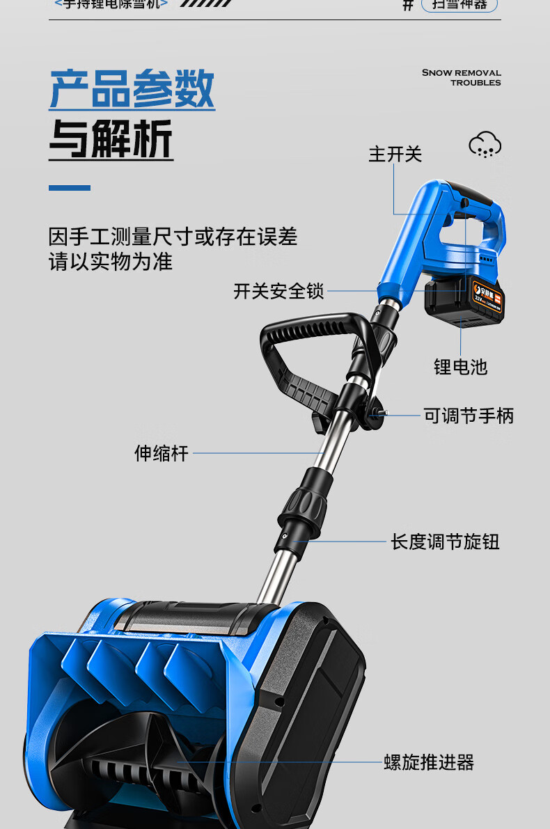Quiet Bear electric lithium battery hand-push snow blower small school road snow clearing artifact snow thrower road greenhouse snow blower