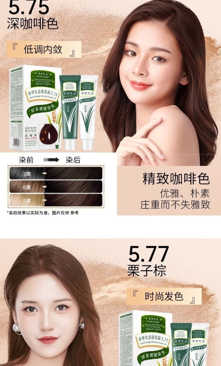 Zhanghua ecological hair dye cream 5.75 dark coffee 142ml non-allergenic dye cream does not contain paraphenylenediamine on clearance