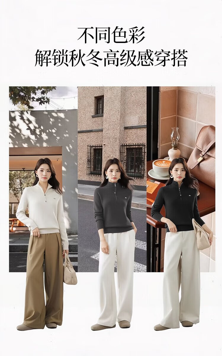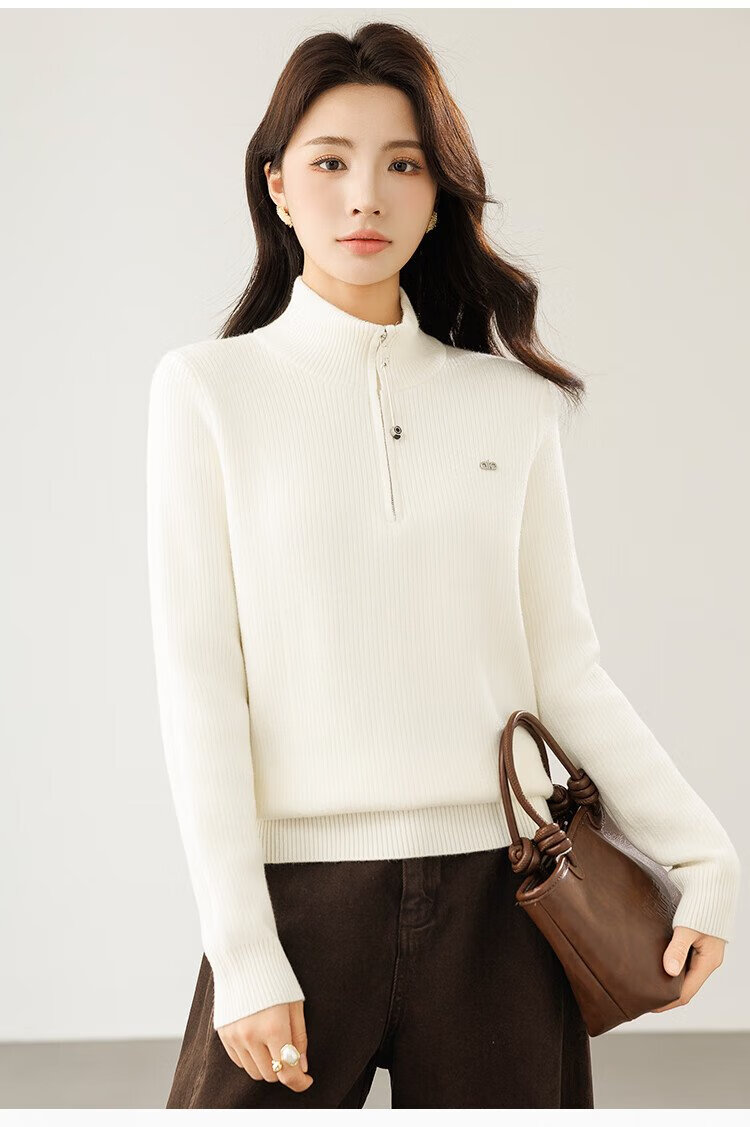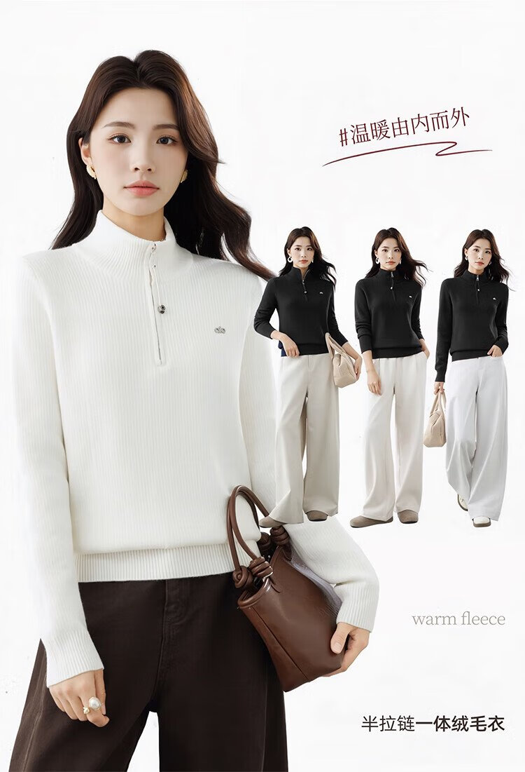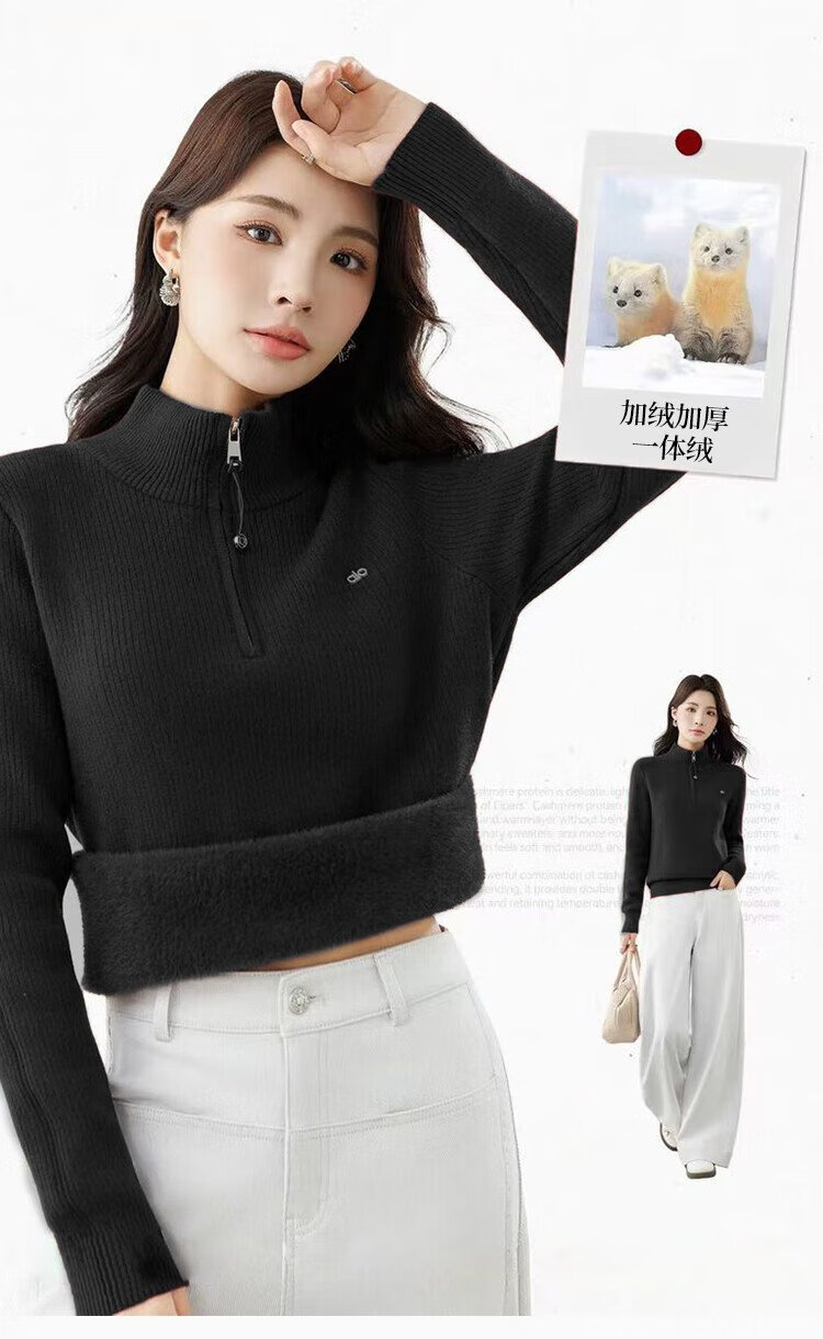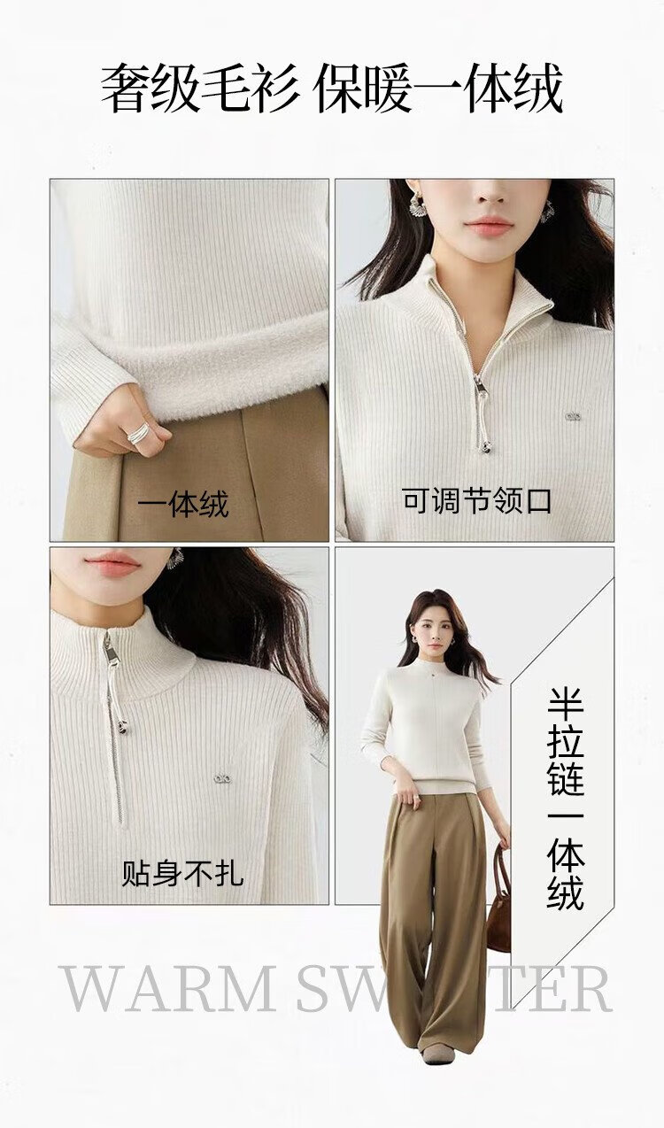 Ordifen women's bottoming shirt, women's mid-collar sweater, women's autumn and winter slim-fit half-zip one-piece velvet sweater, warm and can be worn outside