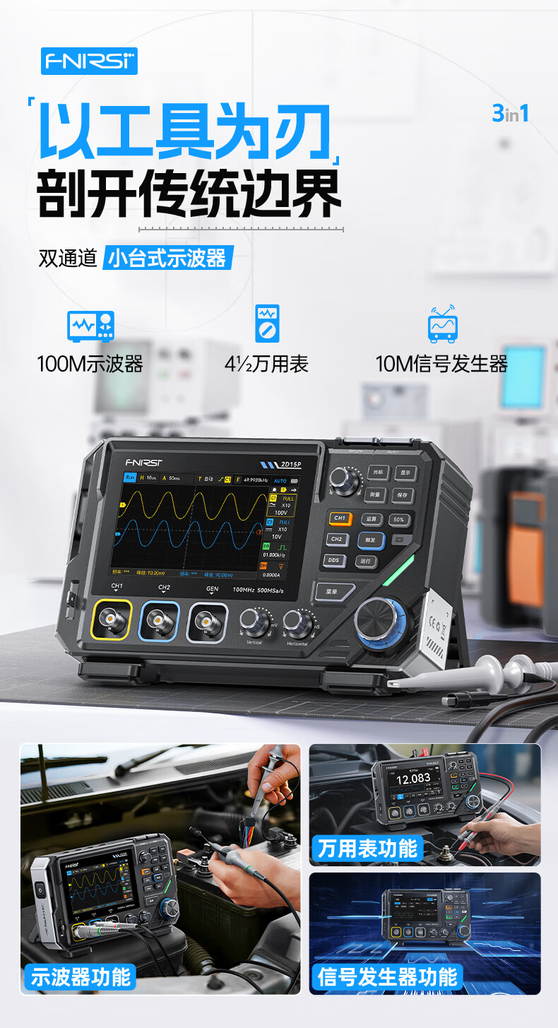 FNIRSI Phoenix Oscilloscope Portable Dual Channel Digital 100M Bandwidth Oscilloscope Multimeter Signal Generator