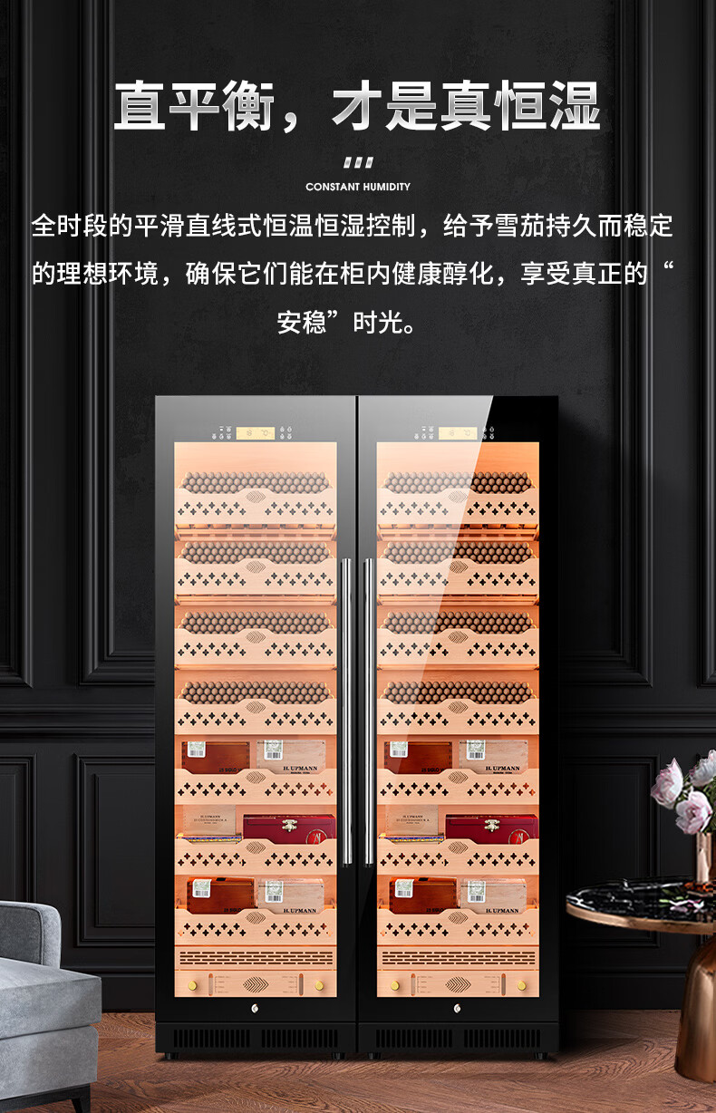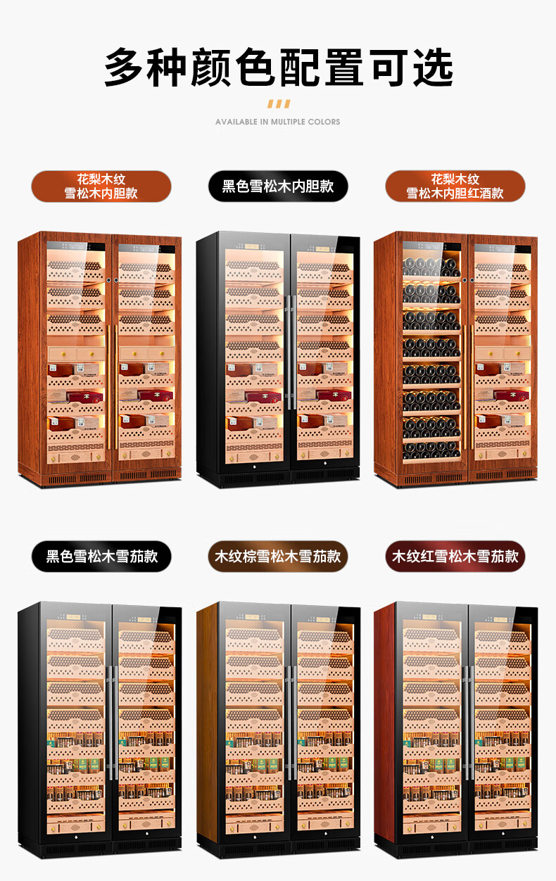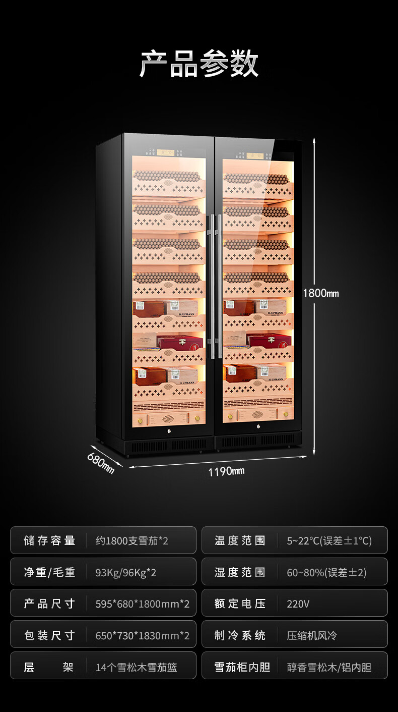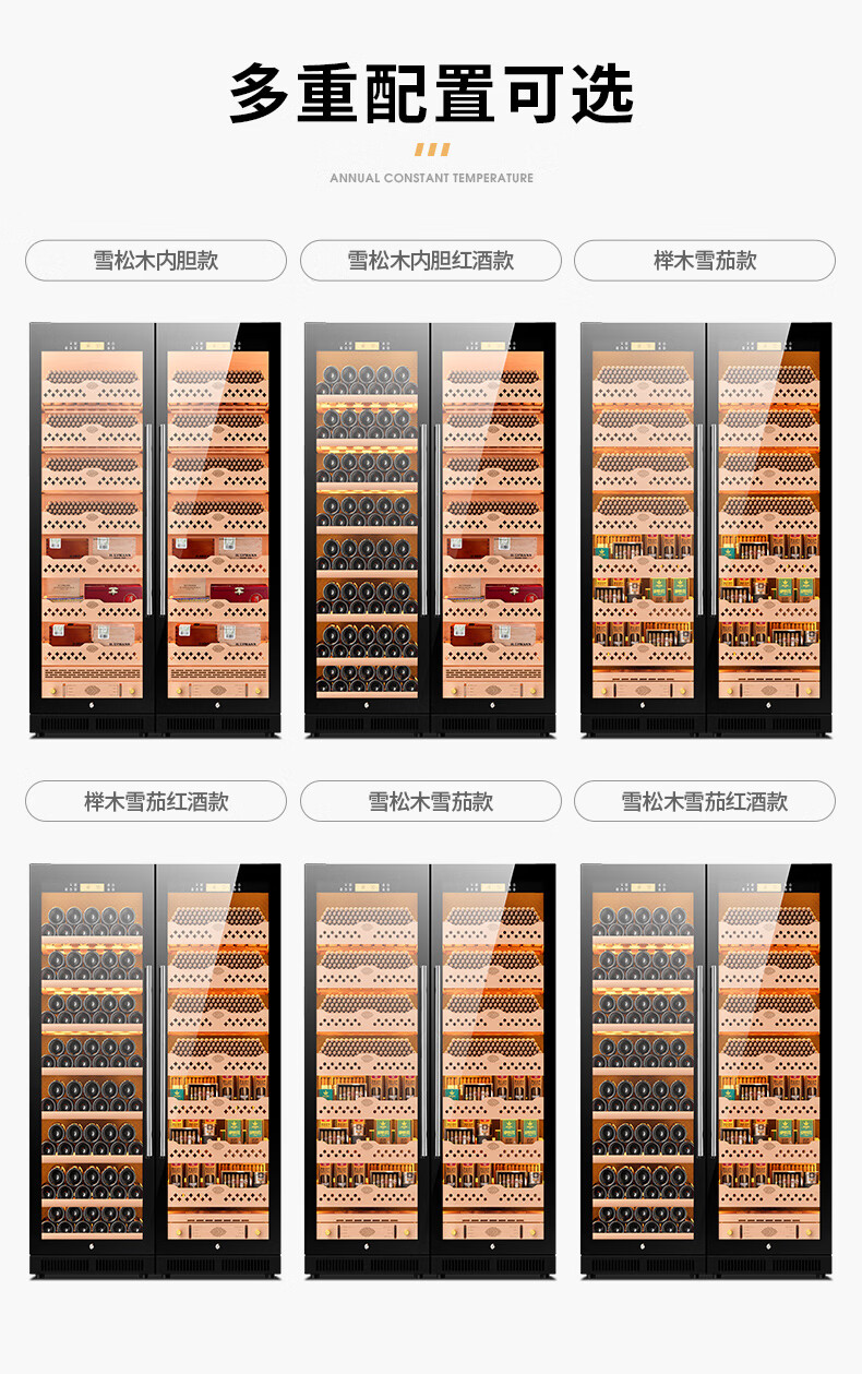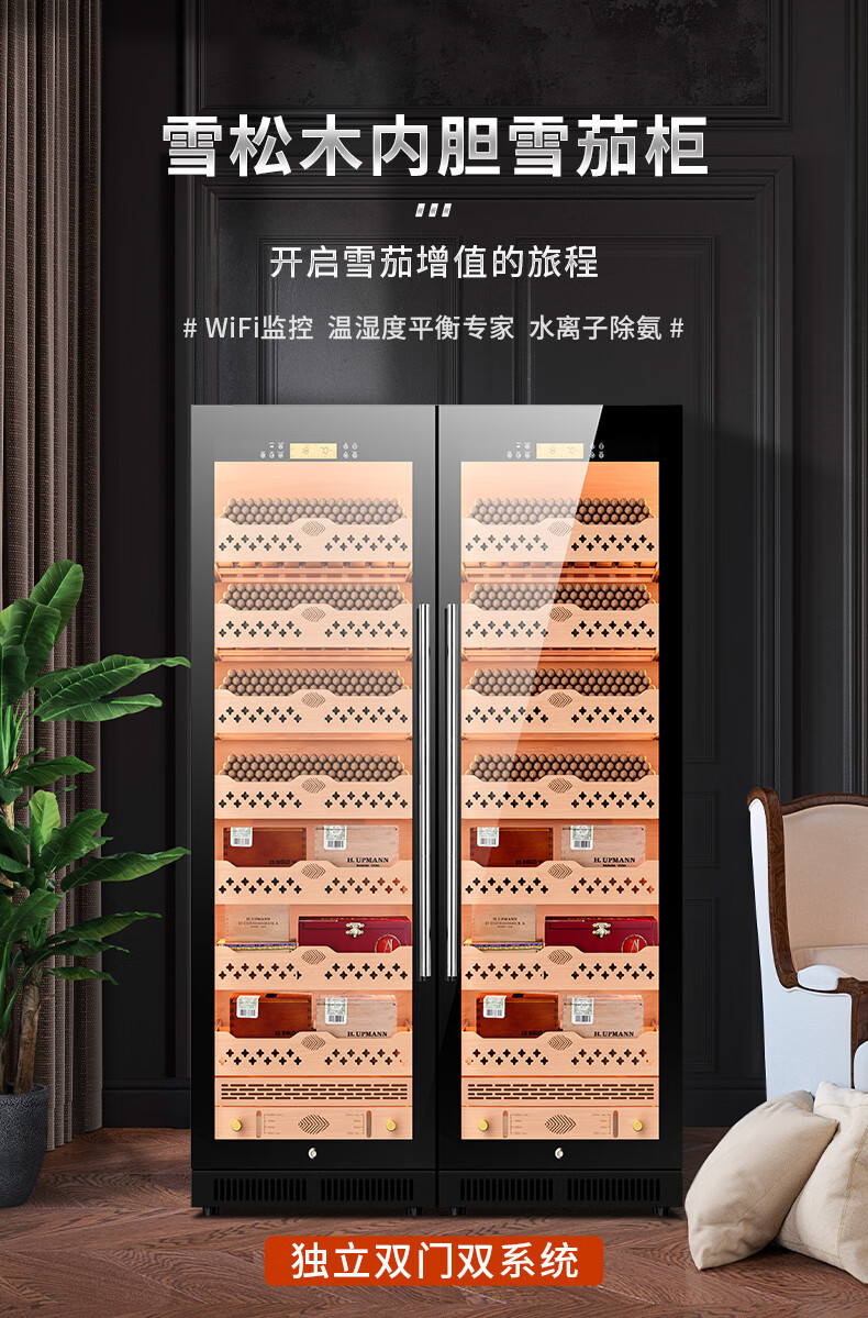 CIGARLOONG CL-188C1 smart cigar cabinet with constant temperature and humidity, cedar wood liner, ammonia removal and alcohol conditioning compressor, air-cooled, frost-free, large capacity, dual temperature, dual system cigar and wine cabinet, double cabinet, wood grain brown beech wood cigar and wine model, WiFi + purified ammonia + constant temperature and humidity