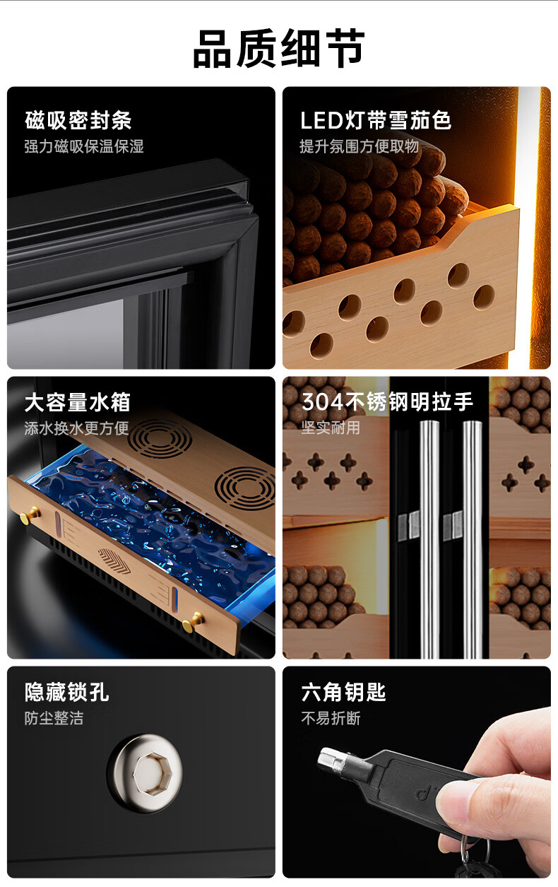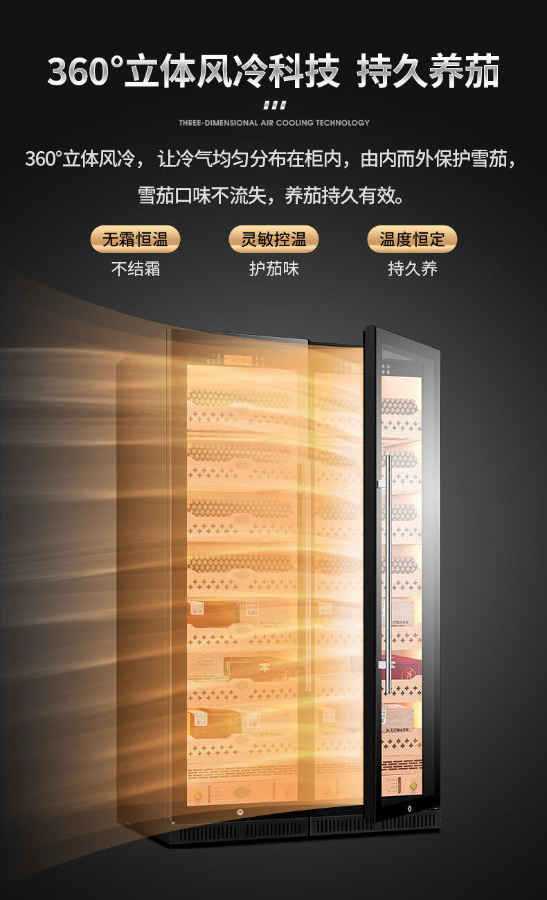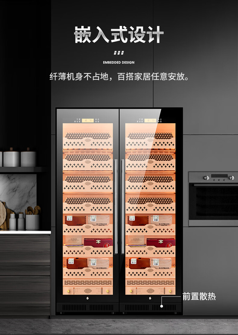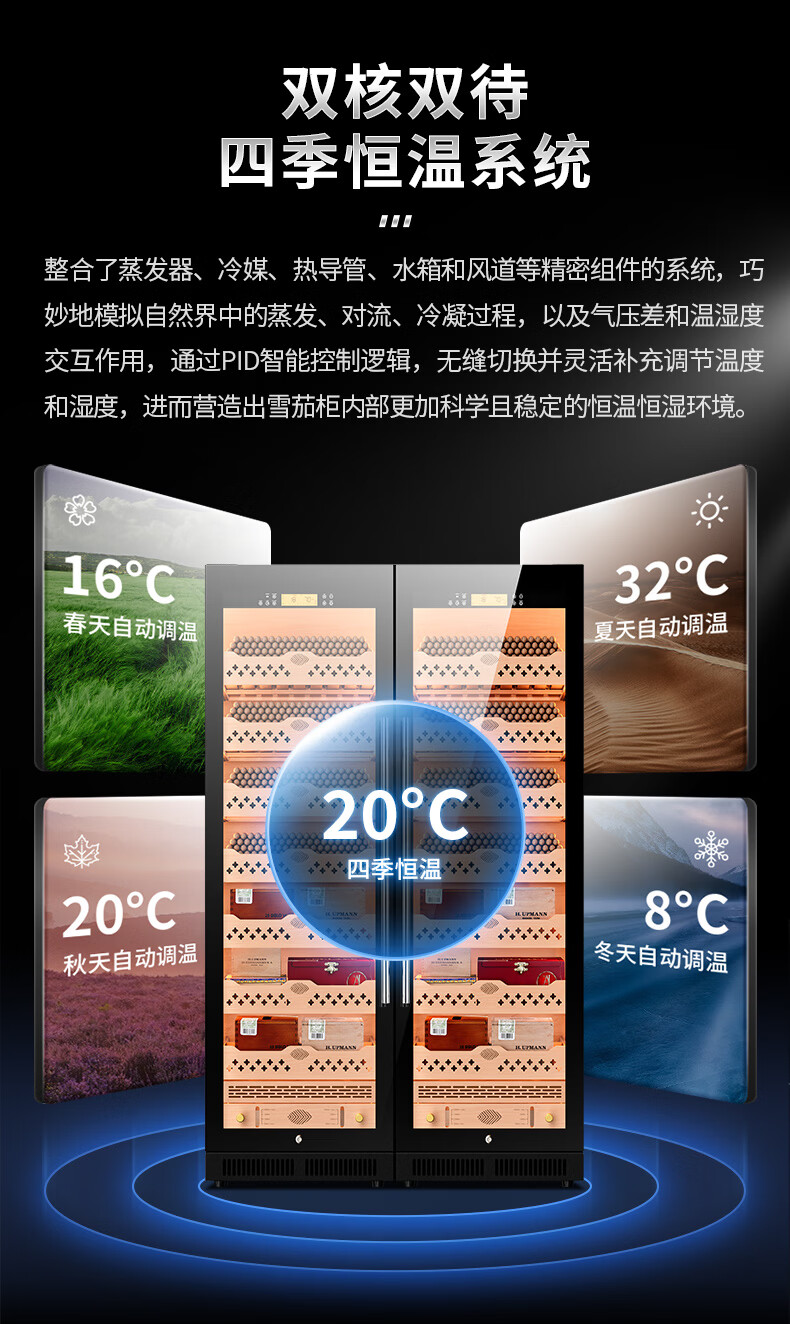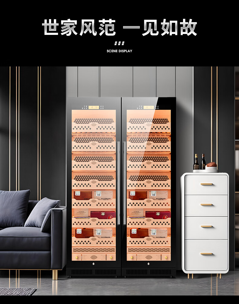 CIGARLOONG CL-188C1 smart cigar cabinet with constant temperature and humidity, cedar wood liner, ammonia removal and alcohol conditioning compressor, air-cooled, frost-free, large capacity, dual temperature, dual system cigar and wine cabinet, double cabinet, wood grain brown beech wood cigar and wine model, WiFi + purified ammonia + constant temperature and humidity