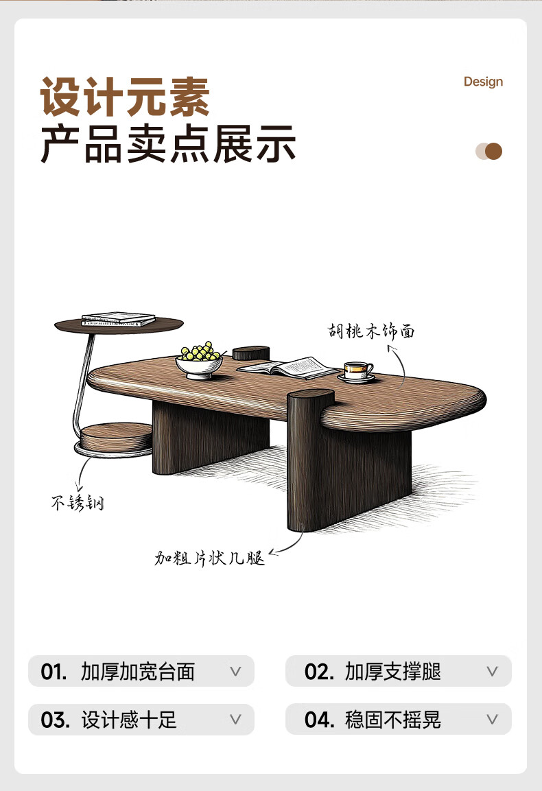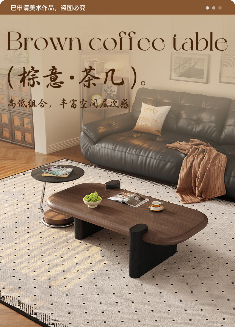 Pashaman brown tea table medieval light luxury high-end living room home oval coffee table combination small apartment 1.2 meters 6448Y
