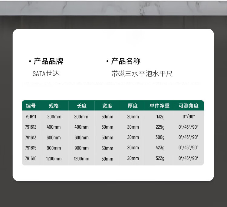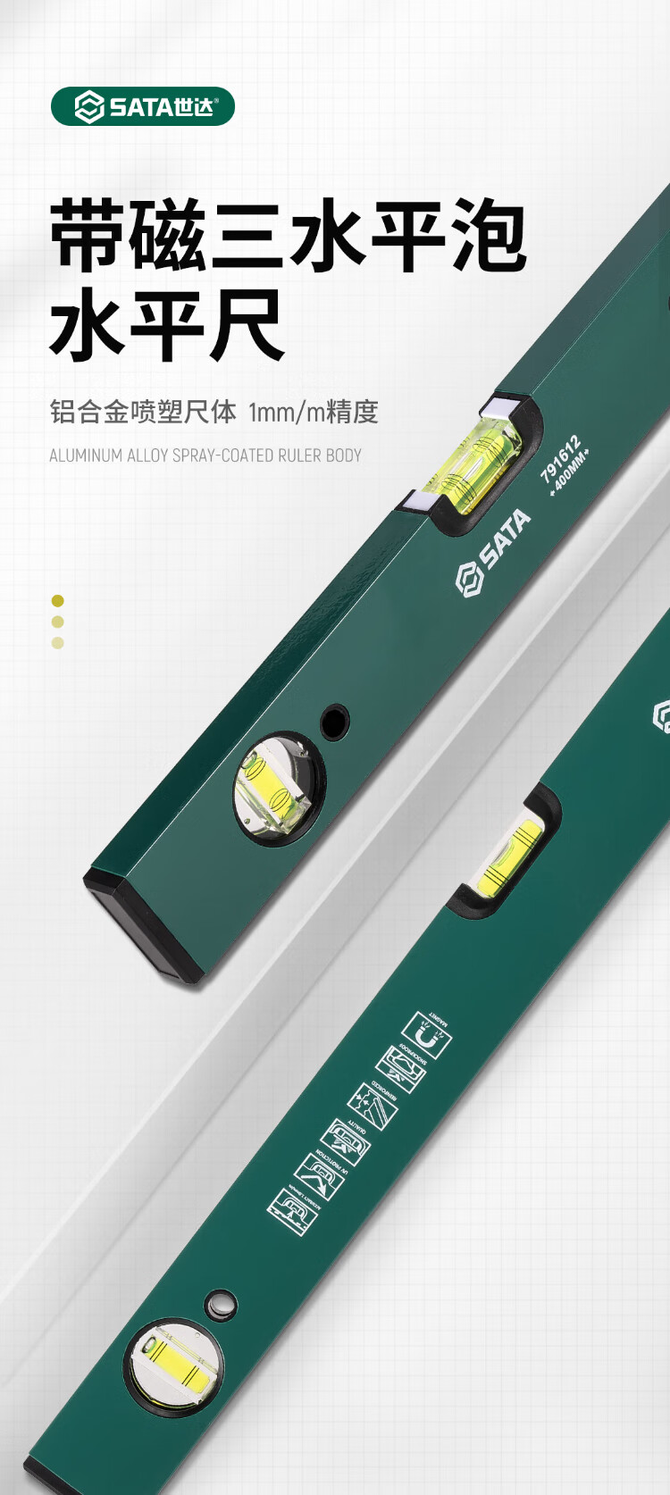 Shida magnetic three-level bubble level 200MM high-precision ruler horizontal ruler level 791611